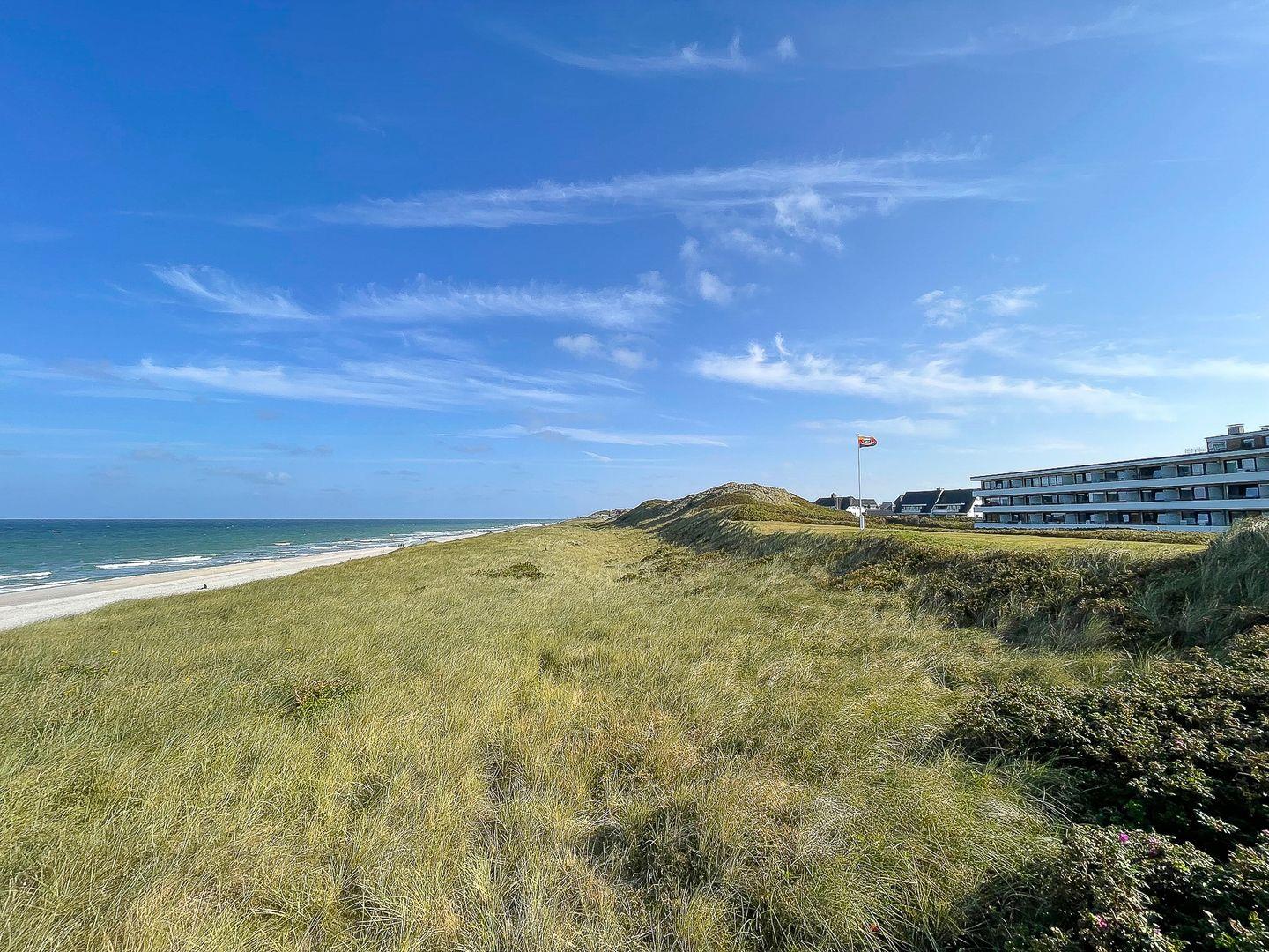 Appartement Ocean Suite liegt genau dort, wo man sich mit "Syltsehnsucht" hinträumt: direkt am Wenningstedter Strand. Von hier aus sind es tatsächlich nur 50 Meter bis zum Strandübergang und auch der "Dorfkern" ist in wenigen Gehminuten erreichbar.