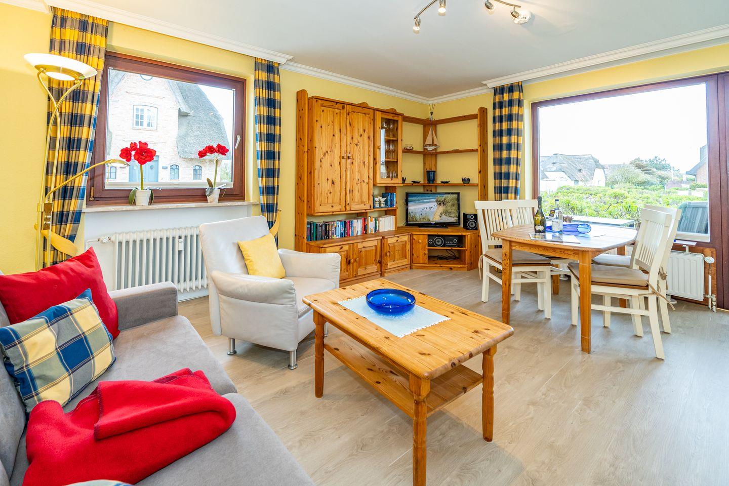Die gemütlich eingerichtete Ferienwohnung befindet sich in ruhiger Lage unweit vom Meer. Die angebotsreiche Wenningstedter Promenade und der Kursaal sind in wenigen Minuten zu erreichen. Die Ferienwohnung empfängt Sie mit einem freundlich, in warmen Farben gestaltetem Wohn- und Esszimmer welches mit einer gemütlichen Schlafcouch (für 2 Personen), einem Flachbild TV sowie einem Esstisch ausgestattet ist. Von hier haben Sie auch Zugang zu der wunderschönen Südterrasse mit großem Gartenbereich.