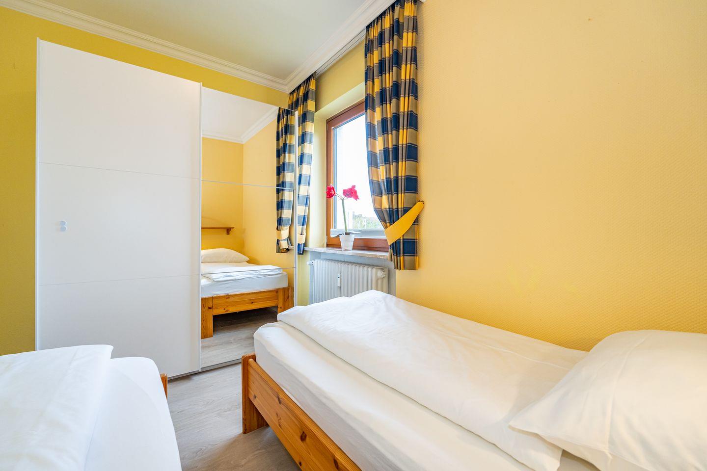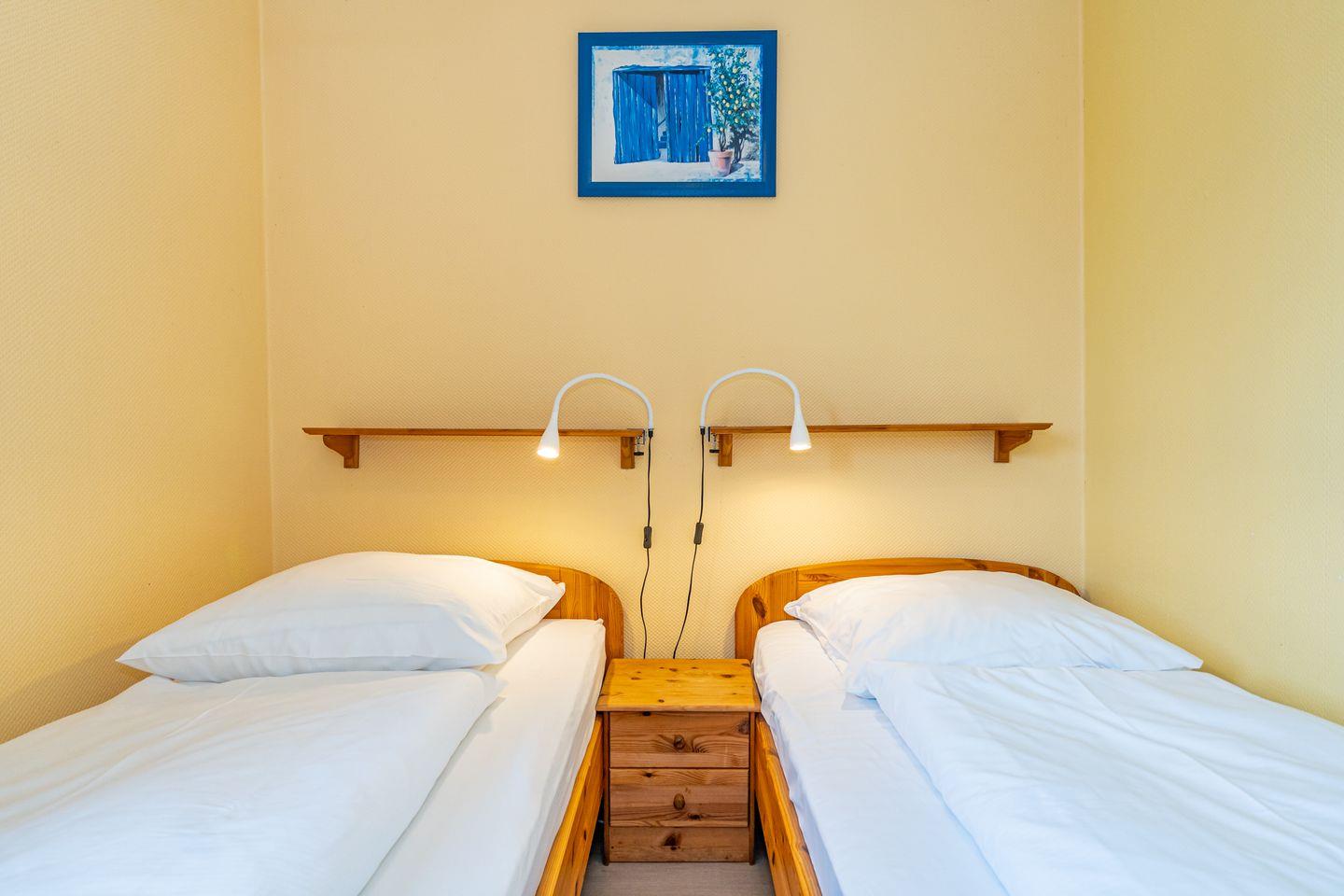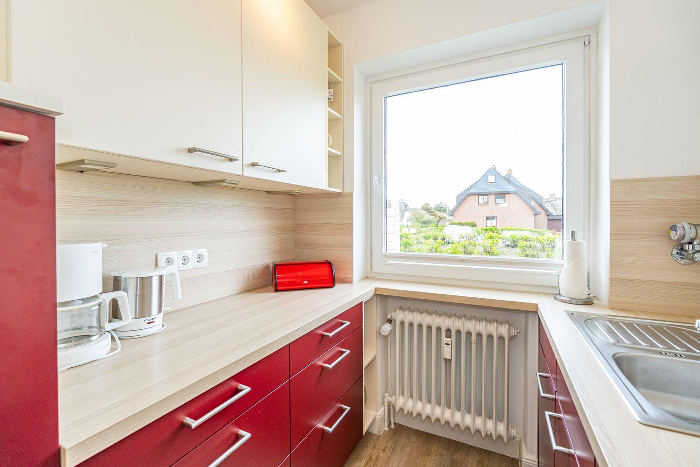 Im eigenen Strandkorb können Sie bei einem Glas Wein den atemberaubenden Sonnenuntergang genießen. Syltfeeling pur! Die moderne separate Küche lädt zum ausgiebigen Kochen ein. Die Ausstattung lässt keine Wünsche offen: Sie finden hier eine Nespressomaschine, Backofen, Herd mit Cerankochfeld, Mikrowelle, Geschirrspülmaschine, Kühlschrank mit Gefrierfach, Toaster, Wasserkocher und Filterkaffeemaschine sind hier selbstverständlich. Im Tageslichtbadezimmer welches über WC, Waschtisch und Badewanne mit Dusche verfügt, kann man bei einem entspannenden Schaumbad den Tag ausklingen lassen. Im Schlafzimmer befinden sich zwei gemütliche Einzelbetten sowie ein geräumiger Kleiderschrank.