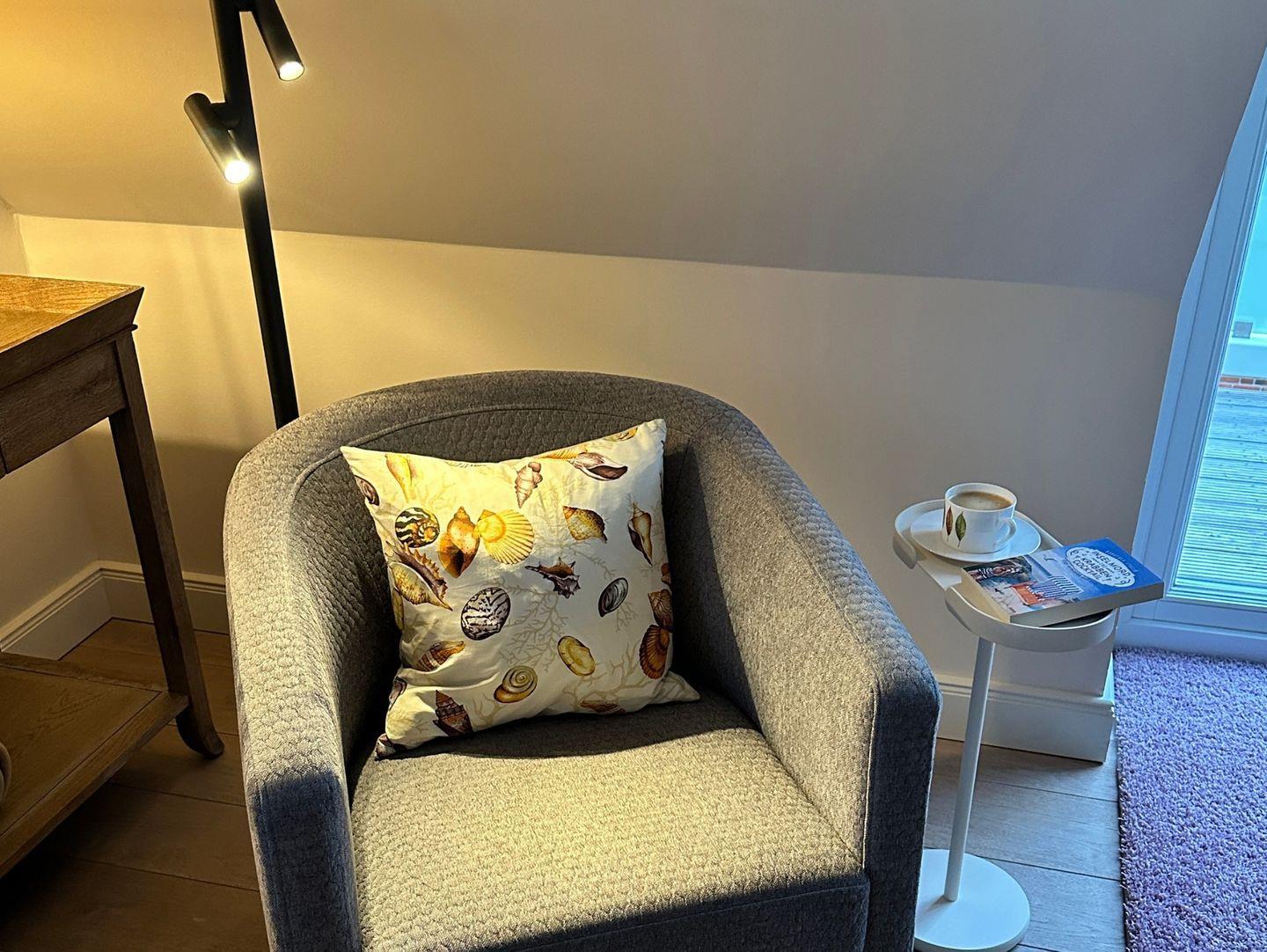 Erleben Sie Ihren Urlaub umgeben von edlem Design, viel Liebe zum Detail und exklusivem Ambiente in der stilvollen 2-Zimmer-Wohnung „Muschelkoje“. Die Wohnung liegt nur wenige Meter vom Strand und Dorfteich entfernt, nah zu Einkaufsmöglichkeiten und Restaurants. Mit 66 m² bietet sie Platz für zwei Personen und verfügt über einen möblierten Südbalkon, ein Schlafzimmer mit Doppelbett (160 x 200 cm), ein Wohn-/Esszimmer sowie eine voll ausgestattete Küche. Münz-Waschküche und Parkplatz sind am Haus vorhanden, Haustiere sind jedoch nicht gestattet.