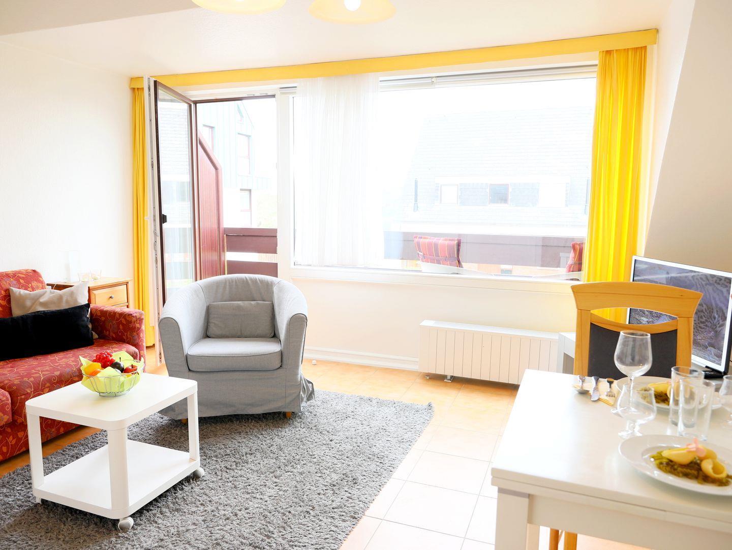 Zentral in Wenningstedt und nur wenige Schritte vom Strandübergang entfernt erwartet Sie diese gemütliche 2-Zimmer-Dachgeschosswohnung mit etwa 45 m². Das helle Wohnzimmer verfügt über eine Ausziehcouch (160 x 200 cm), einen Essbereich mit vier Stühlen und Zugang zum großzügigen Westbalkon, ideal für entspannte Abende in der Sonne. Das separate Schlafzimmer ist mit zwei Einzelbetten (90 x 200 cm) ausgestattet, perfekt für erholsamen Schlaf. Eine neu gestaltete Küche und ein modernes Duschbad mit WC sorgen für zusätzlichen Komfort. Ein kostenfreier Stellplatz ist direkt am Haus vorhanden. Haustiere sind herzlich willkommen.