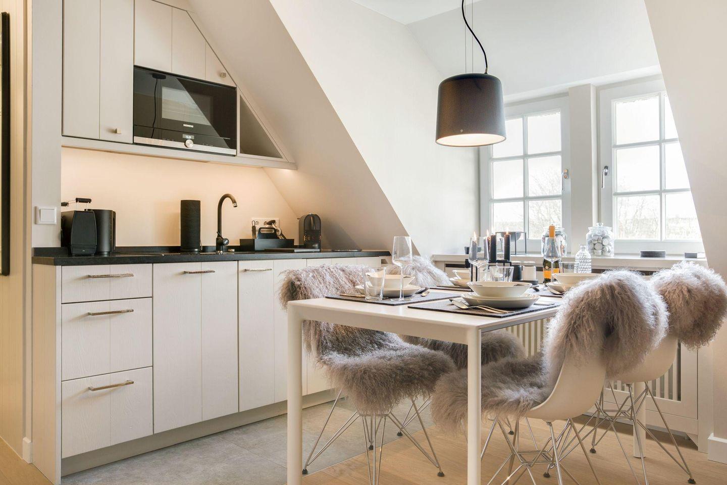 Die offene, moderne Küche ist mit Cerankochfeld und Nespresso-Kaffeemaschine ausgestattet und bietet alles, was Sie für Ihre kulinarischen Wünsche benötigen.