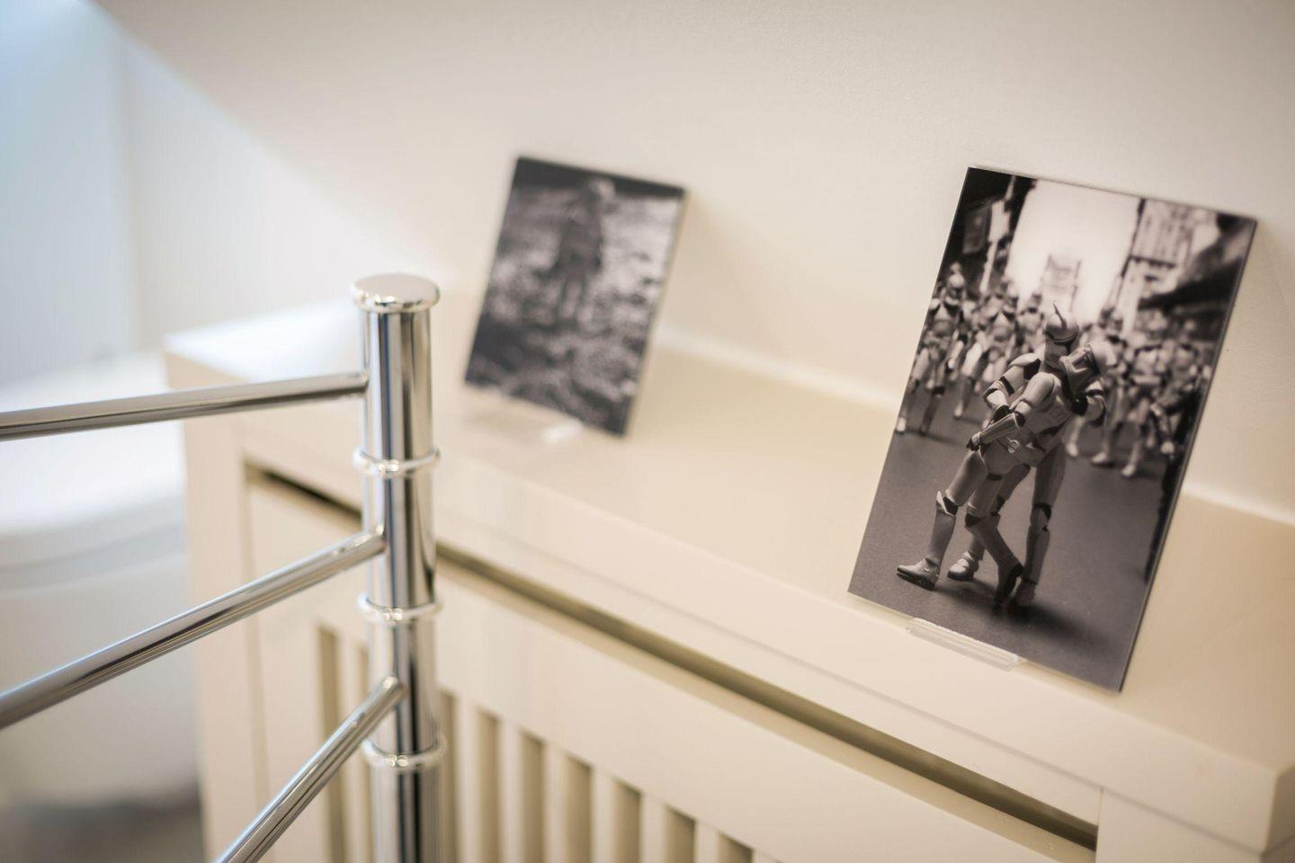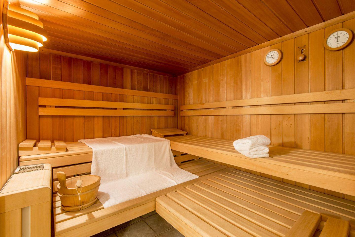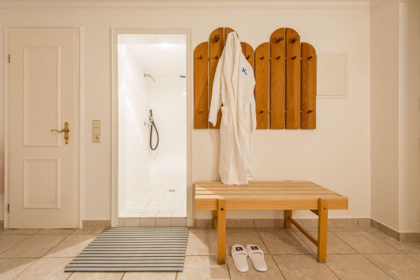 Das Badezimmer ist modern ausgestattet mit Dusche, WC, Handtuchwärmer, Föhn und Tageslicht. Im gemeinschaftlichen Wellnessbereich des Hauses stehen eine Sauna und ein Ruheraum zur Verfügung.