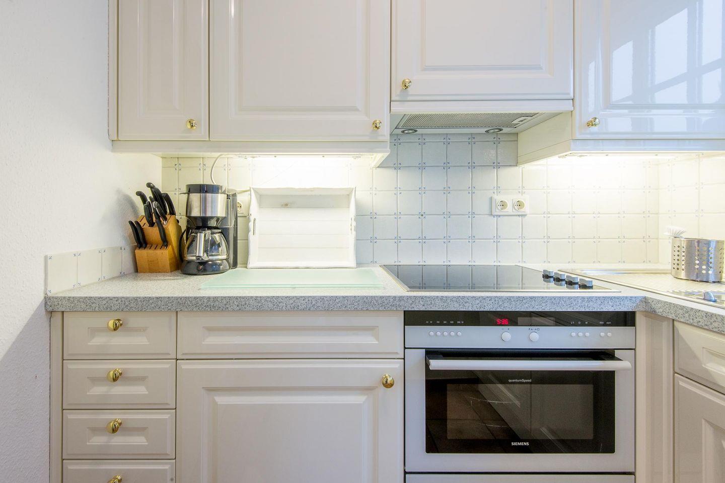 Die separate Küche ist modern und mit allem ausgestattet, was das Herz begehrt. Eine Krups Nespresso-Maschine, ein 4-flammiger Herd, ein Geschirrspüler und alle notwendigen Küchenutensilien stehen Ihnen zur Verfügung, um kulinarische Kreationen zu verwirklichen.