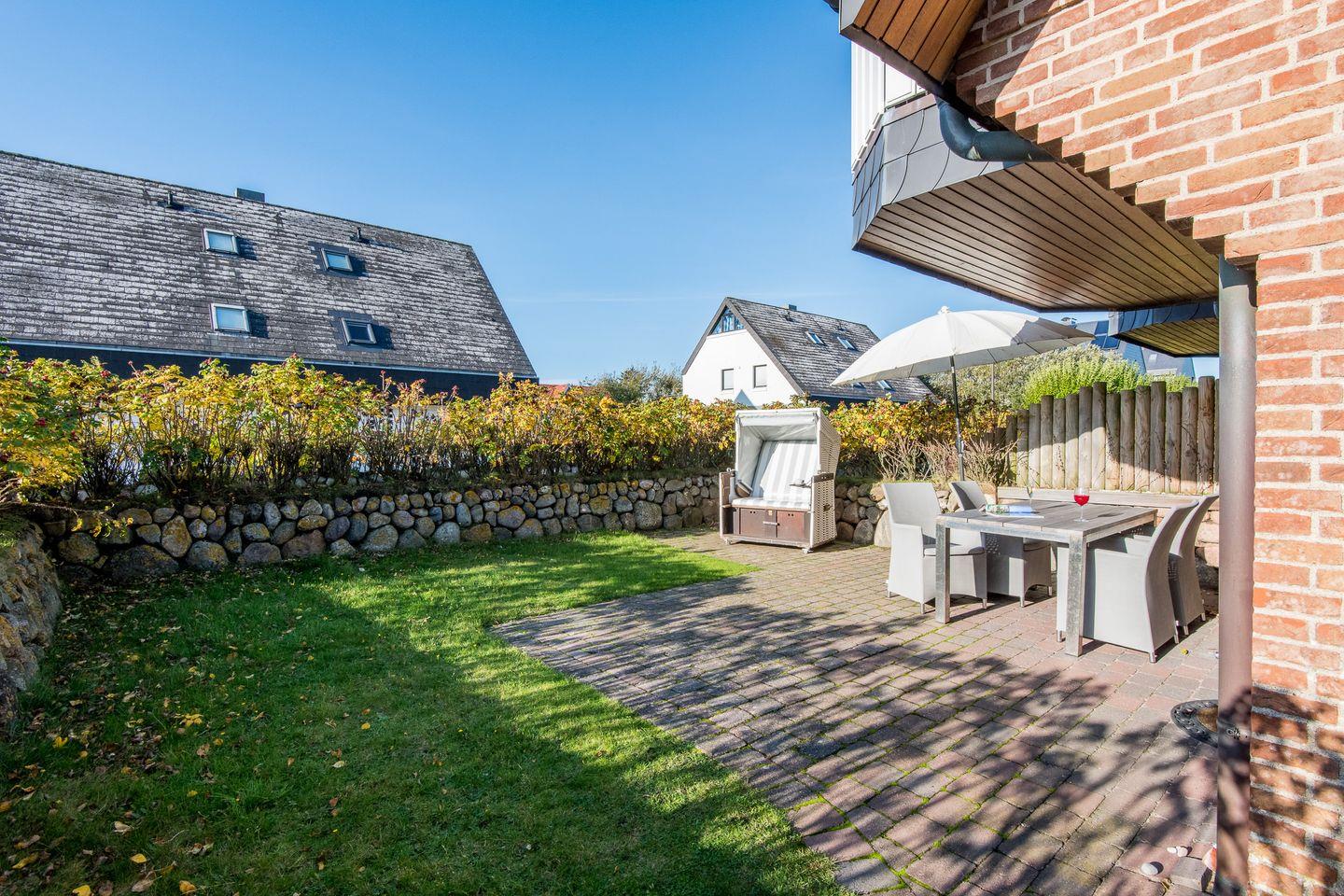Stilvolle 3-Zimmer-Ferienwohnung in Wenningstedt mit Terrasse, Garten und Strandkorb für erholsame Urlaubstage auf Sylt.