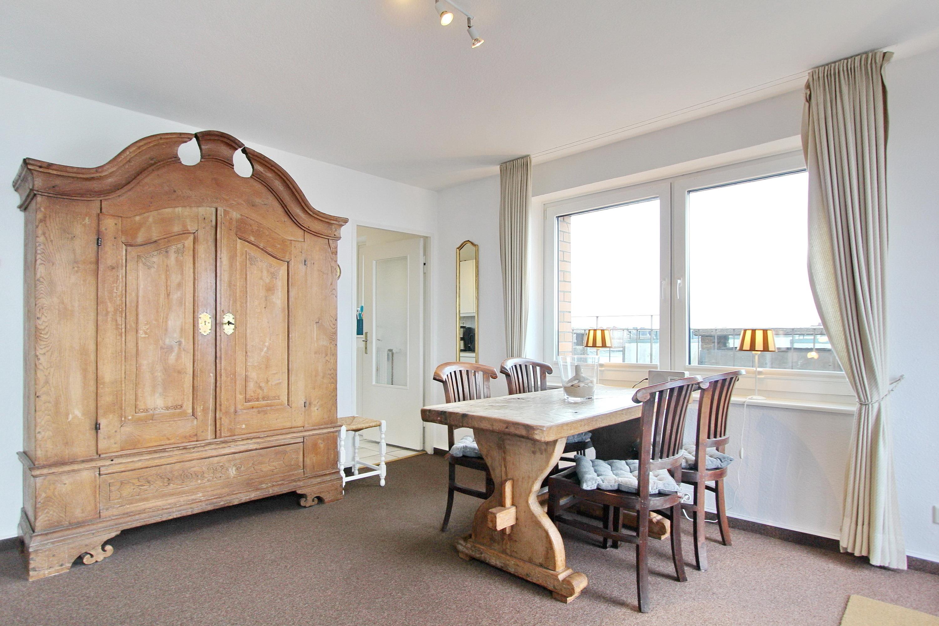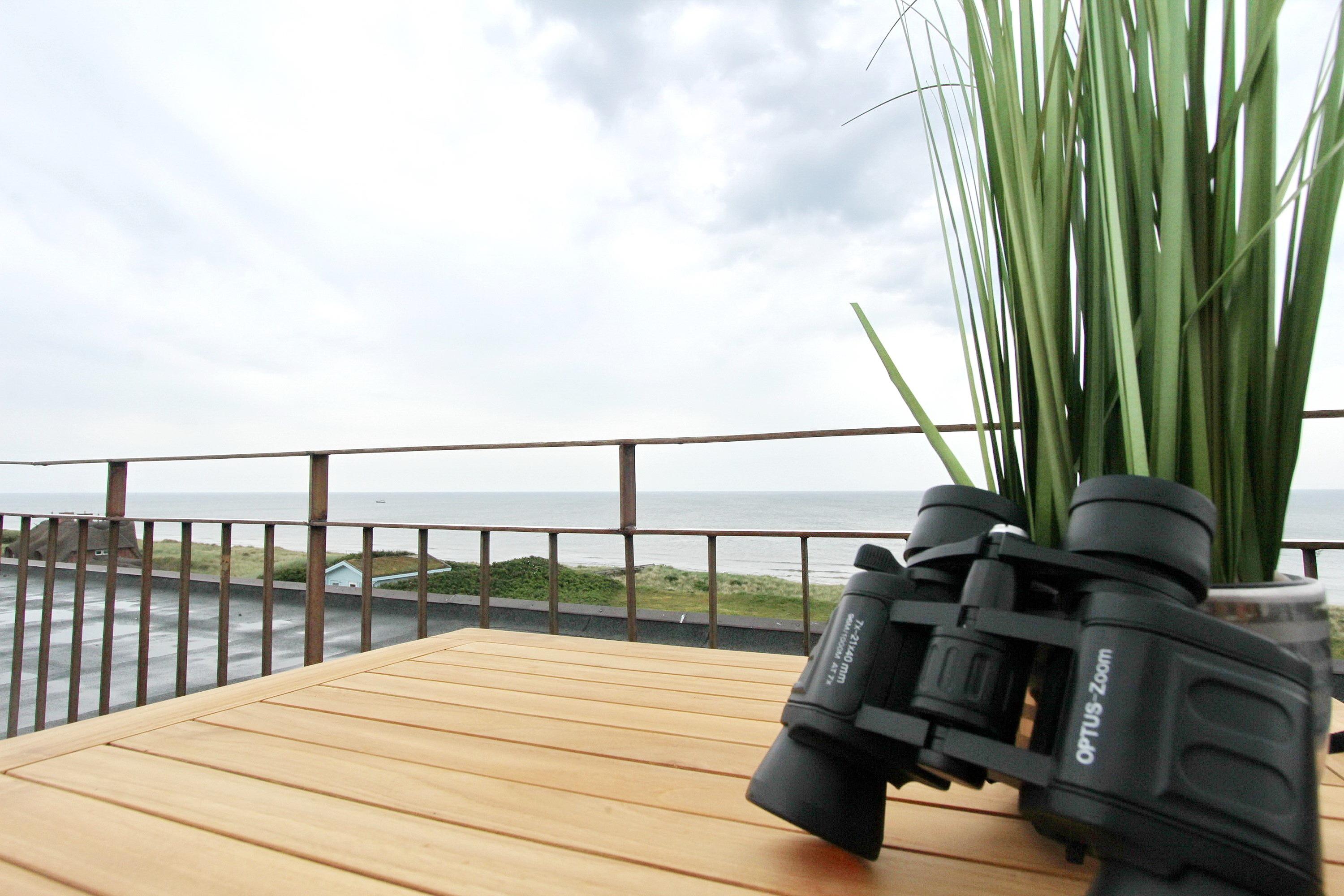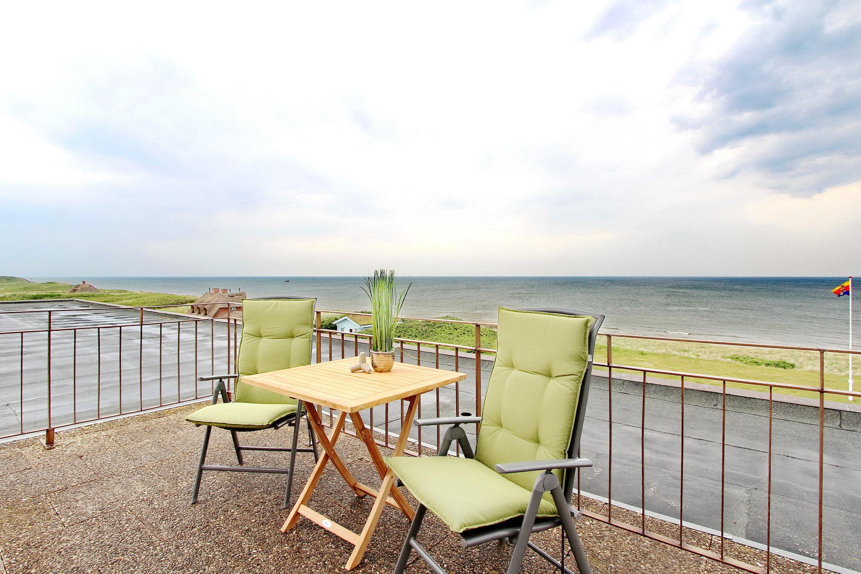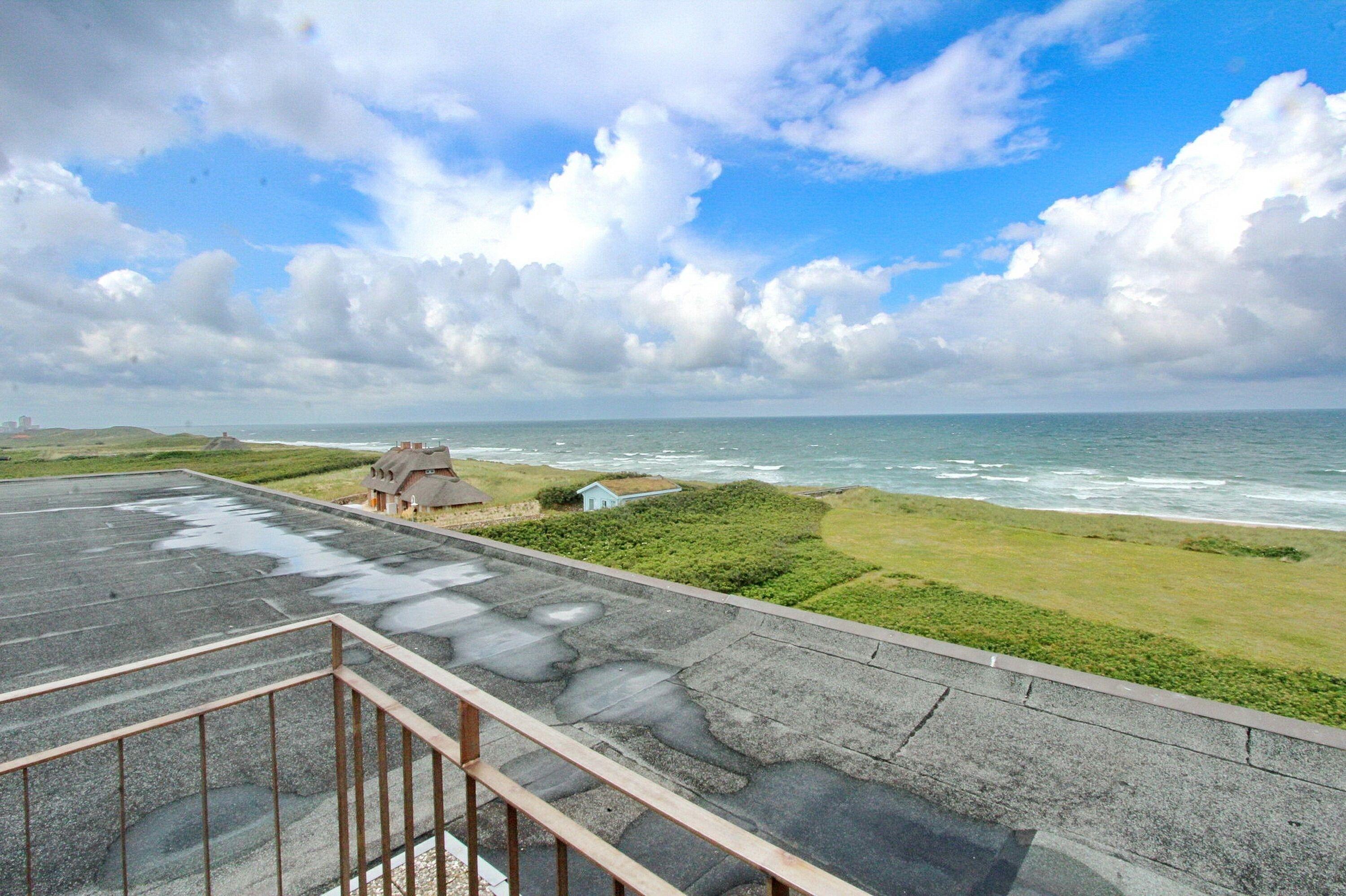 Diese mit viel Liebe zum Detail eingerichtete Nichtraucher-Penthouse-Wohnung in der 3. Etage des Dünenhof zum Kronprinzen hat einen wunderbaren Blick aufs Meer und einen seitlichen Blick bis nach Westerland. Der lichtdurchflutete Wohnraum mit vorgelagerter, umlaufender Dachterrasse mit Balkonmöbeln, hat eine gemütliche Couch mit Schlaffunktion, 2 bequeme Fernsehsessel direkt am Fenster und einen Essplatz mit 4 Stühlen. Im Flur gibt es einen separates Gäste-WC und in den Einbauschränken gibt es viel Stauraum für persönliche Dinge, Koffer und z.B. Strandutensilien. Das Schlafzimmer ist zur Landseite gelegen und somit können sie jeden Morgen von der Sonne (wenn sie denn scheint) geweckt werden. Es verfügt über ein Doppelbett und hat einen direkten Zugang zum Badezimmer mit Badewanne, WC und Handtuchheizkörper. Die Küche mit kleinem Fenster befindet sich im Flur zwischen dem Schlaf- und dem Wohnzimmer. Sie verfügt über einen Geschirrspüler, ein Ceranfeld und eine Mikrowellen mit Grillfunktion. Ein moderner Flachbildfernseher mit Bluray-Player sowie ein Radio mit CD-Player steht ihnen zur Verfügung. Da der Aufzug im Haus nur bis zur 2. Etage fährt ist das Penthouse nur über eine Treppe erreichbar. Ein freier WLAN Hotspot (Duenenhof zum Kronprinzen – Passwort im Appartemet - ohne Gewähr) steht ihnen kostenfrei zur Verfügung. Kostenfrei steht ihnen ebenfalls der Parkplatz Nr. 114 zur Verfügung. Wohnungsgröße: ca. 50 m².