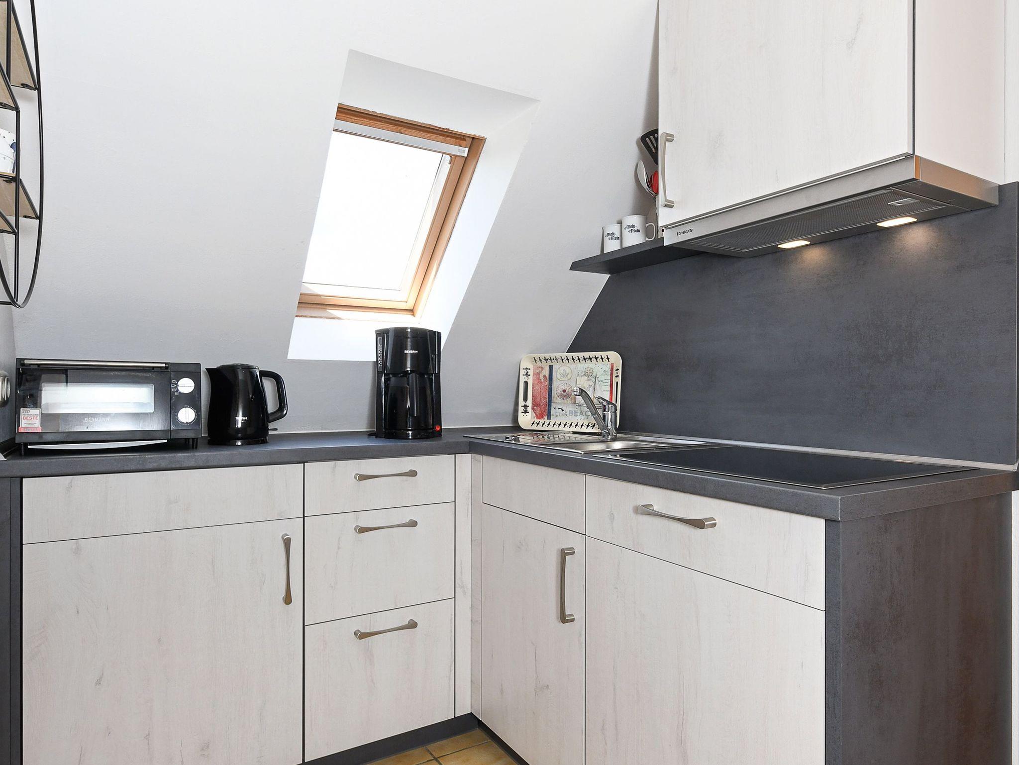 Größe ca. 55 Quadratmeter, Wohnzimmer, Küche, Schlafzimmer, zweites separates Schlafzimmer/Kinderzimmer, Badezimmer mit Dusche, Waschtisch und WC, Obergeschoss, Terrasse (teilweise überdacht), ausschließlich für Nichtraucher, optimal für 2 bis 4 Personen.