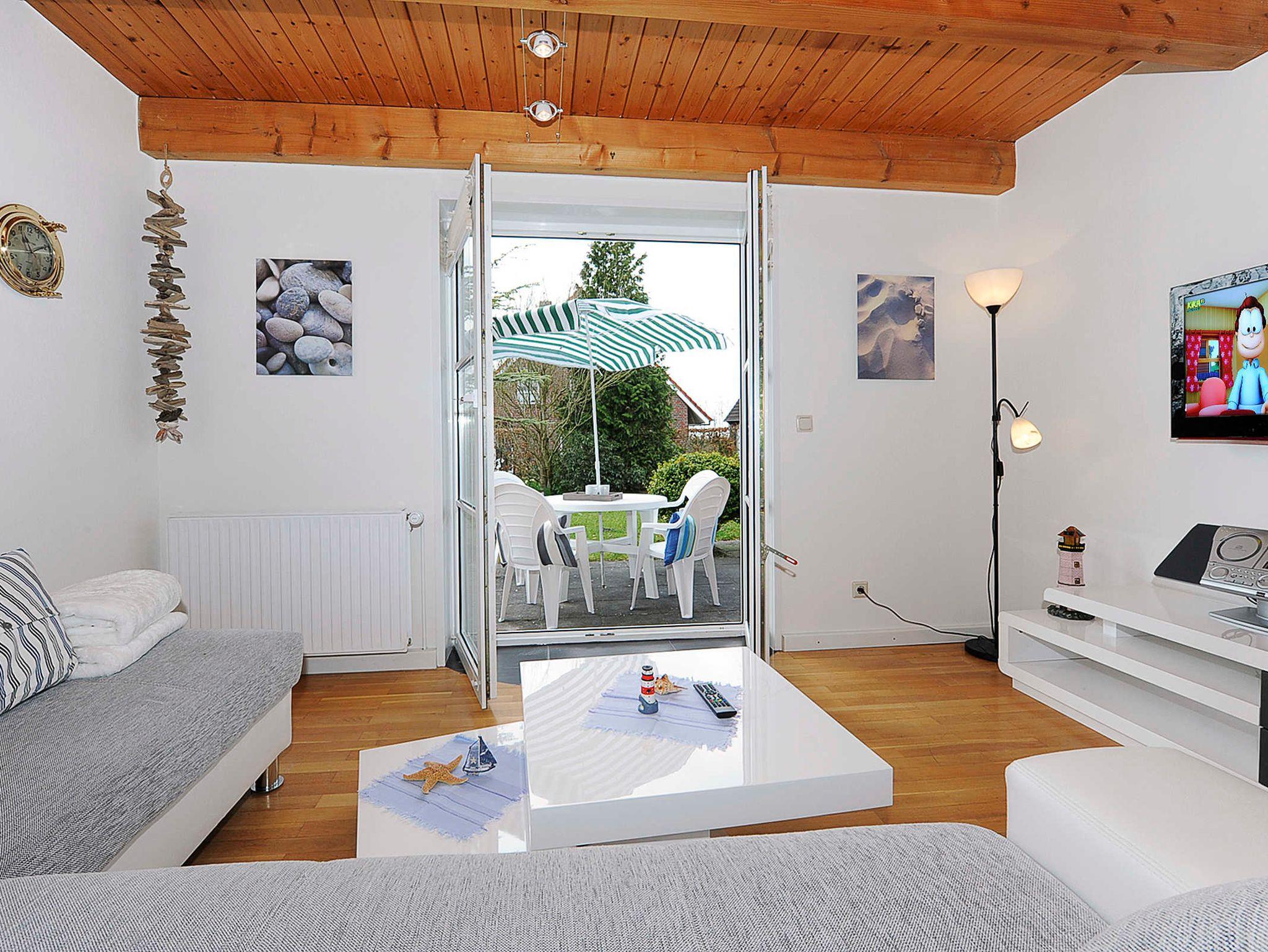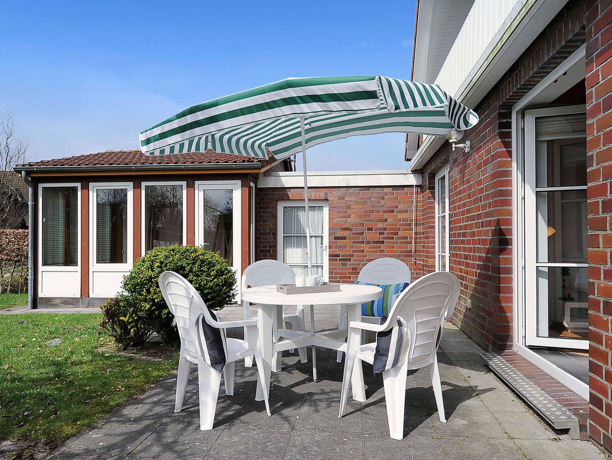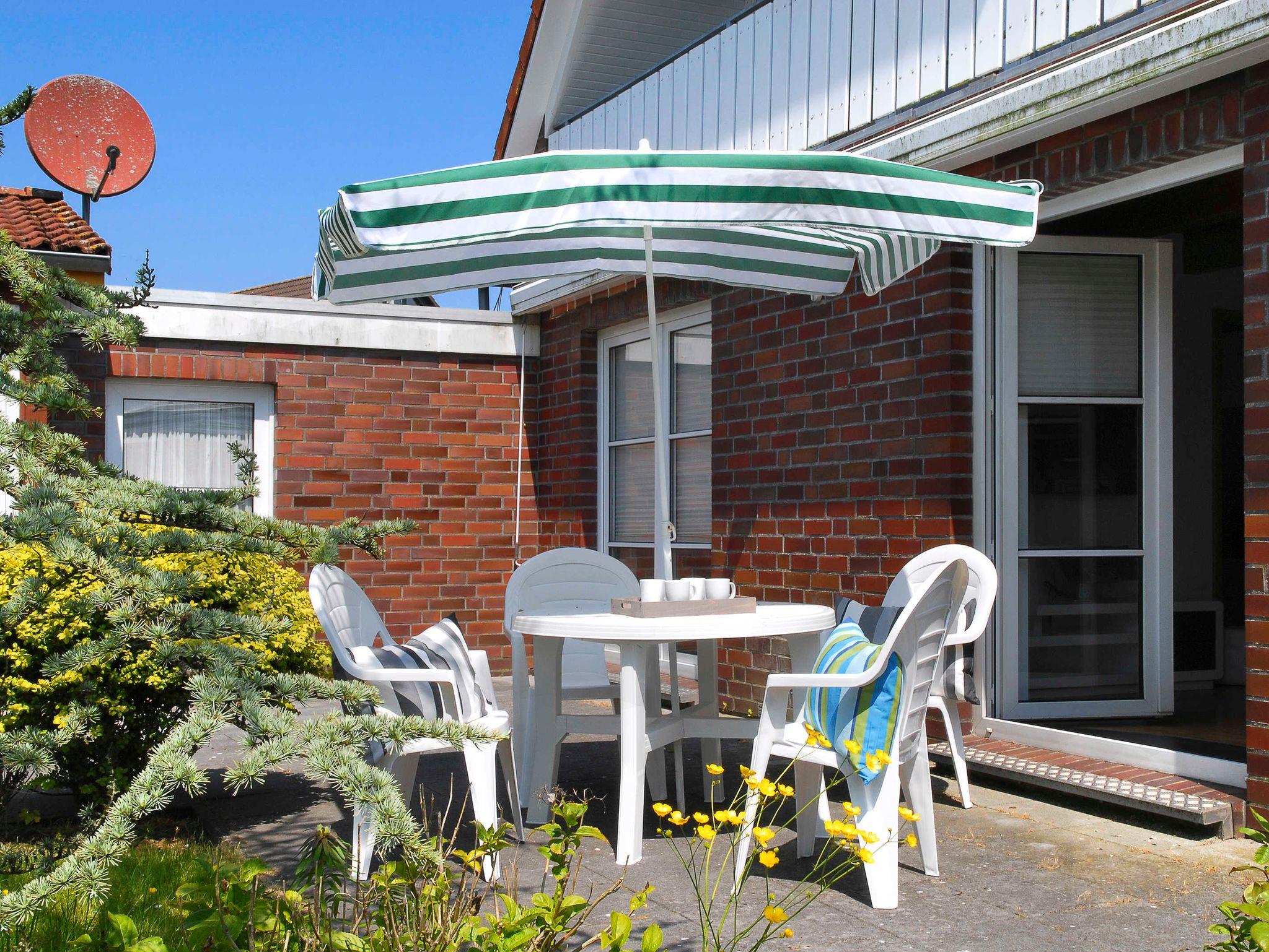 Komfortable Ferienwohnung in Werdum mit Terrasse, Kachelofen und kostenlosem WLAN für erholsamen Nordseeurlaub.
