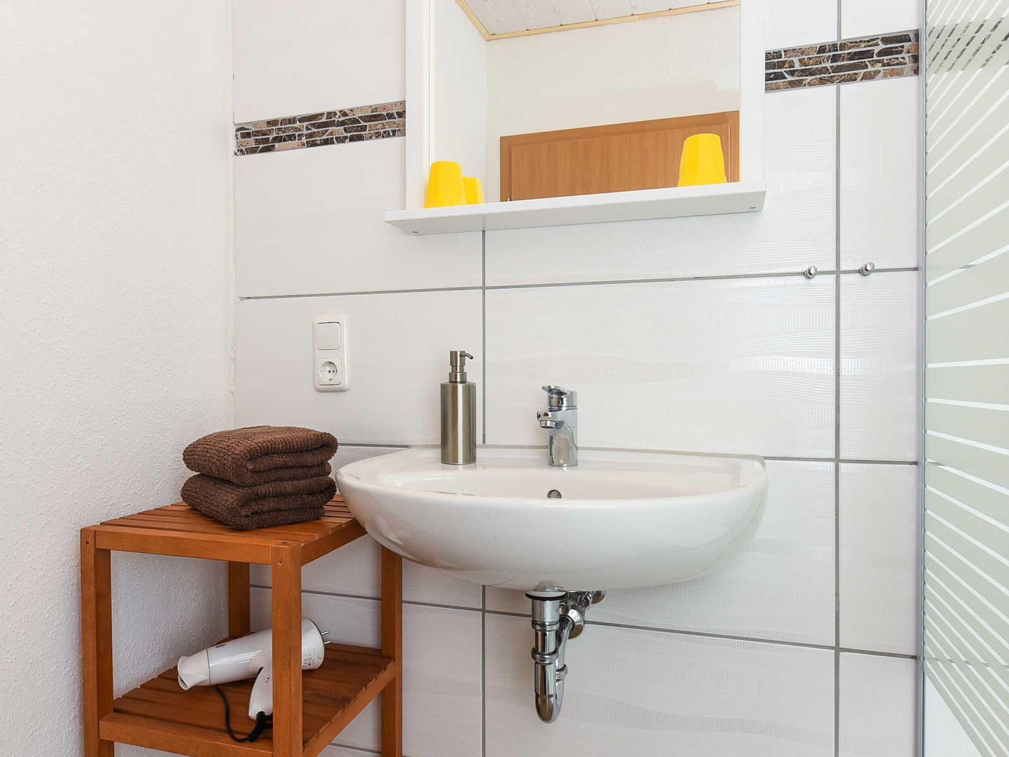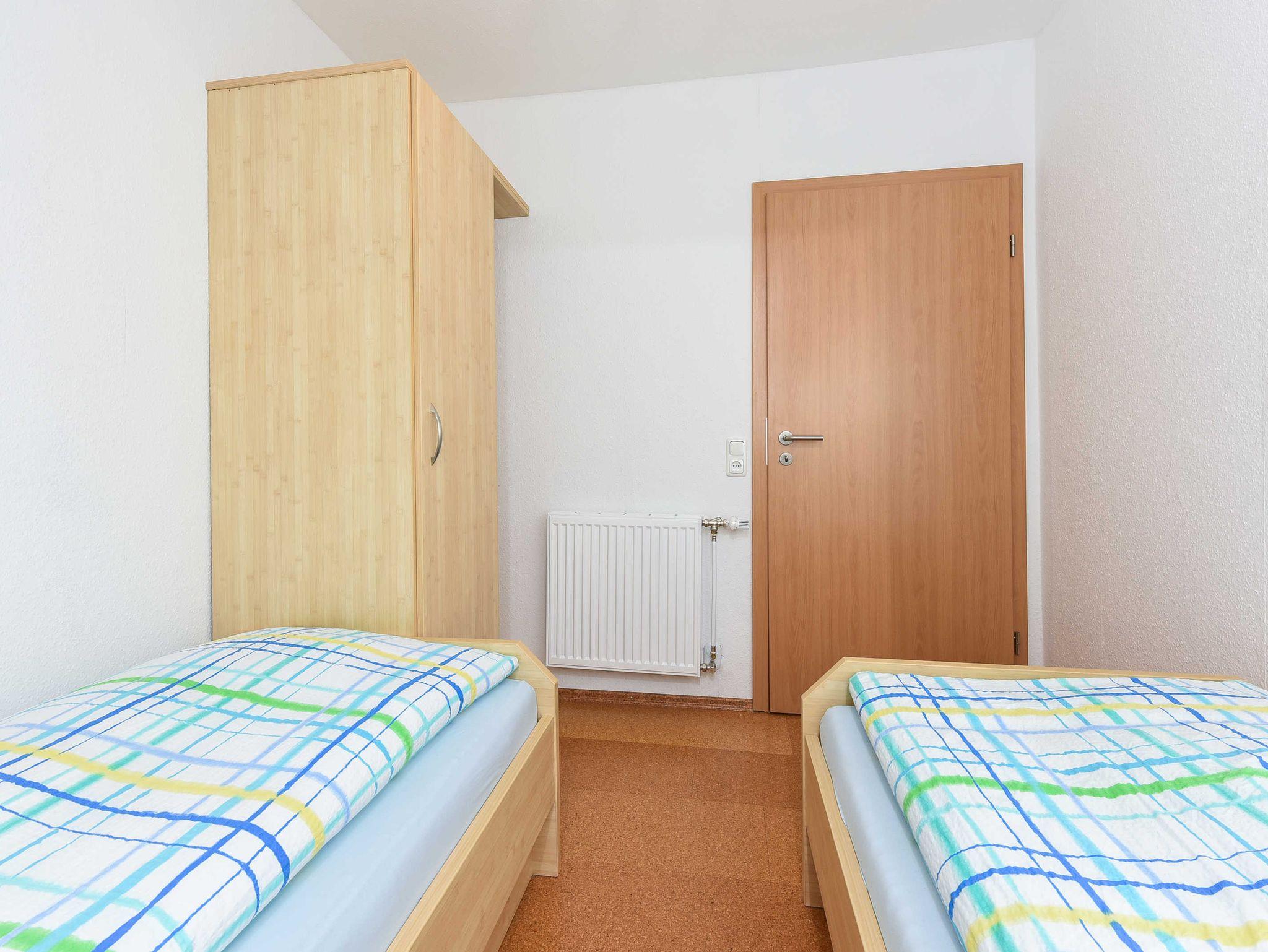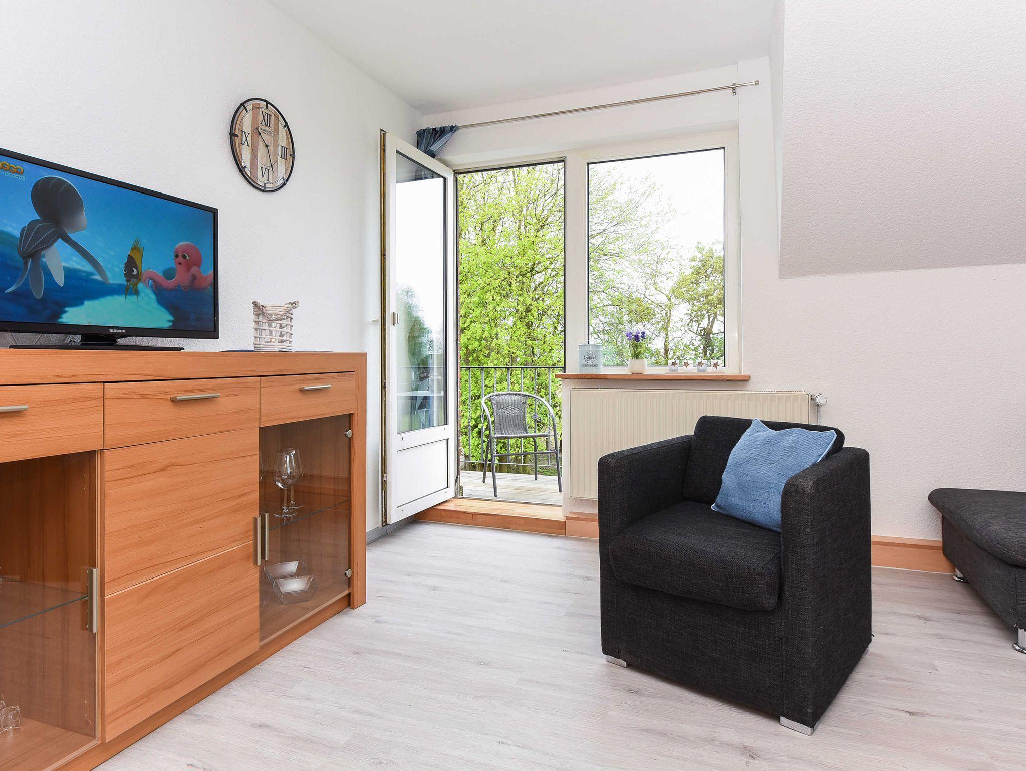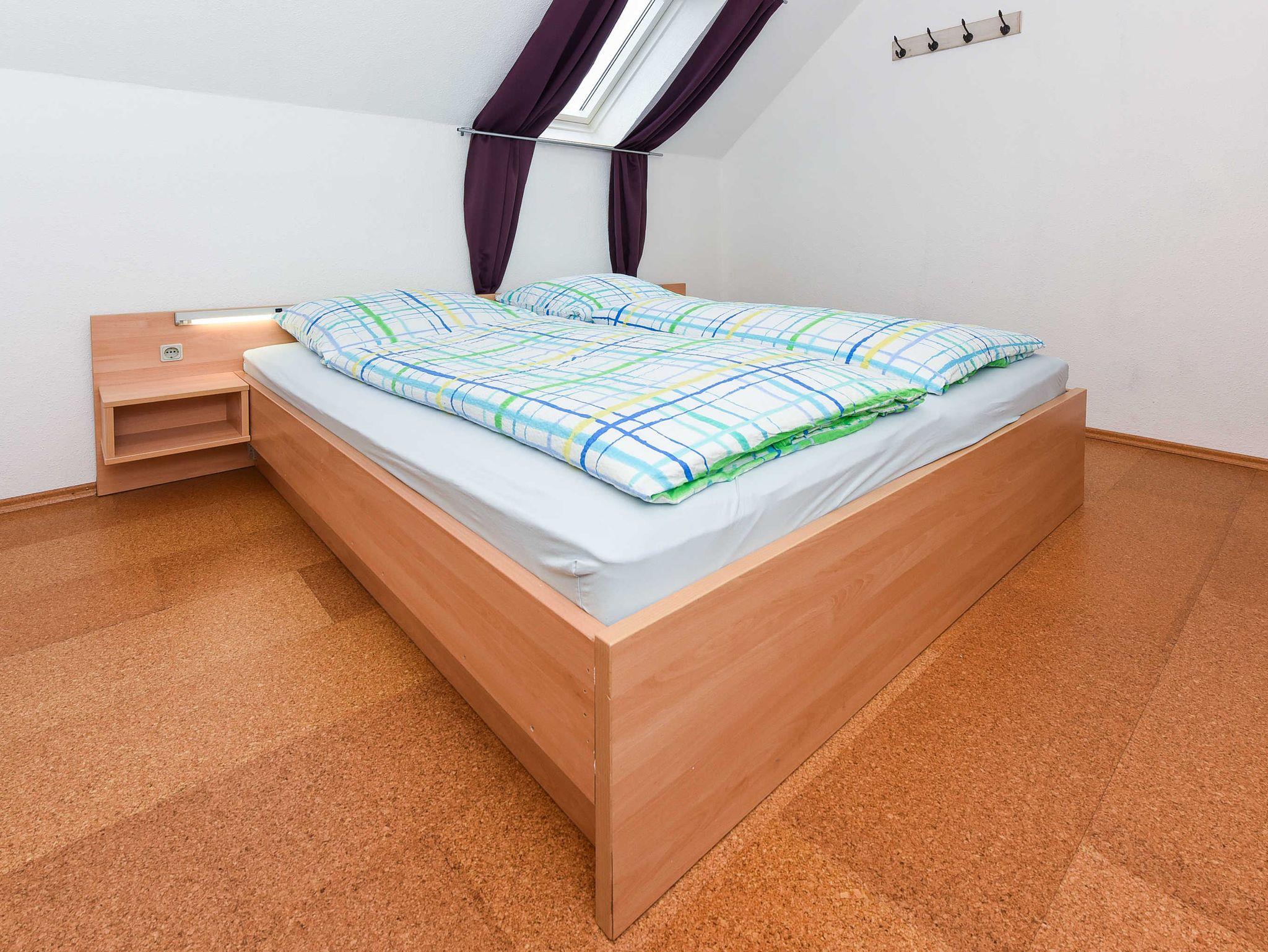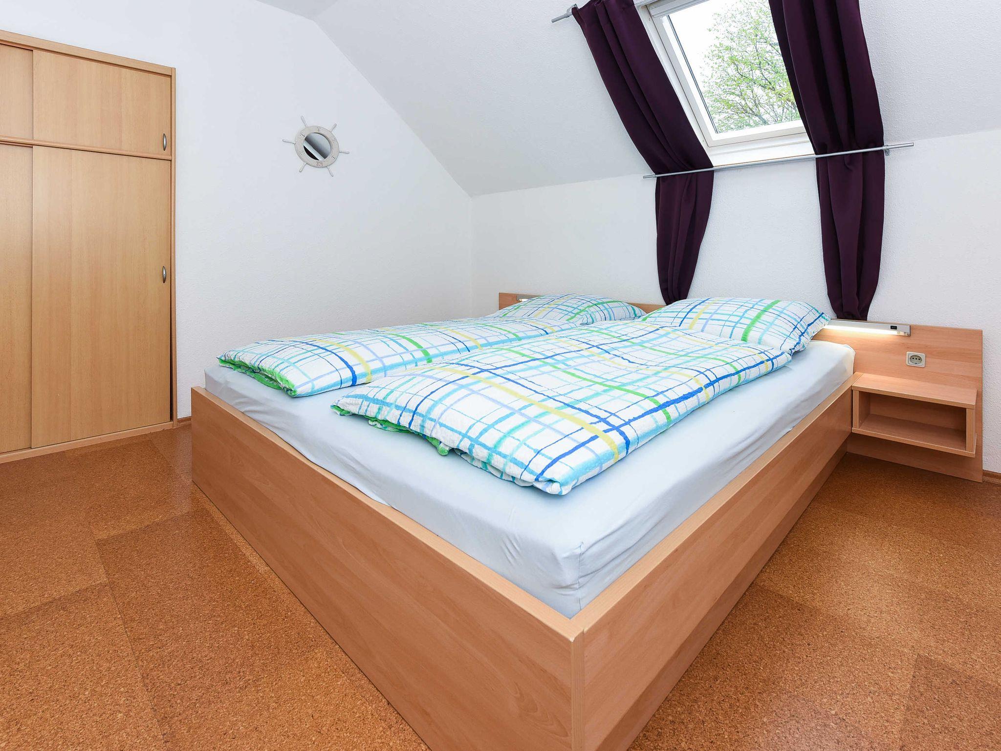 Größe ca. 60 Quadratmeter, Wohnraum mit integrierter Küche, Schlafzimmer, zweites separates Schlafzimmer/Kinderzimmer, Badezimmer mit Dusche, Waschtisch und WC, Obergeschoss, Terrasse im Garten, Balkon, optimal für 2 bis 4 Personen und zusätzlich ein Kleinkind.