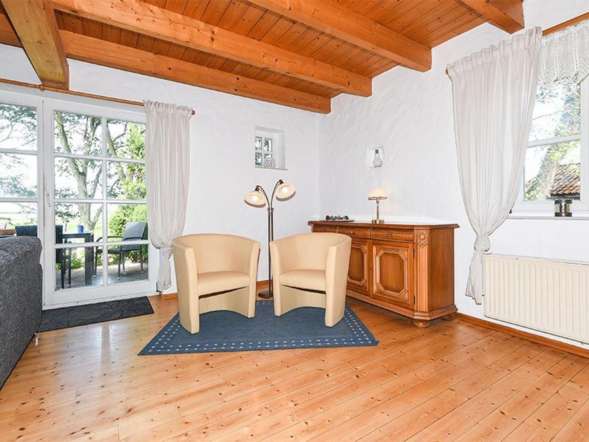 Im und am Ferienhaus gibt es ein sehr großes Wohnzimmer mit Kamin und Ausgang zur großen West-Terrasse nebst hervorragend ausgestatteter Küche sowie ein schönes Badezimmer mit Dusche, Waschtisch und WC. Außerdem gibt es drei Schlafräume im Obergeschoss. Rund um das Haus gibt es neben der West-Terrasse weitere Sitzgelegenheiten, zum Beispiel für ein schönes Frühstück im Freien.
