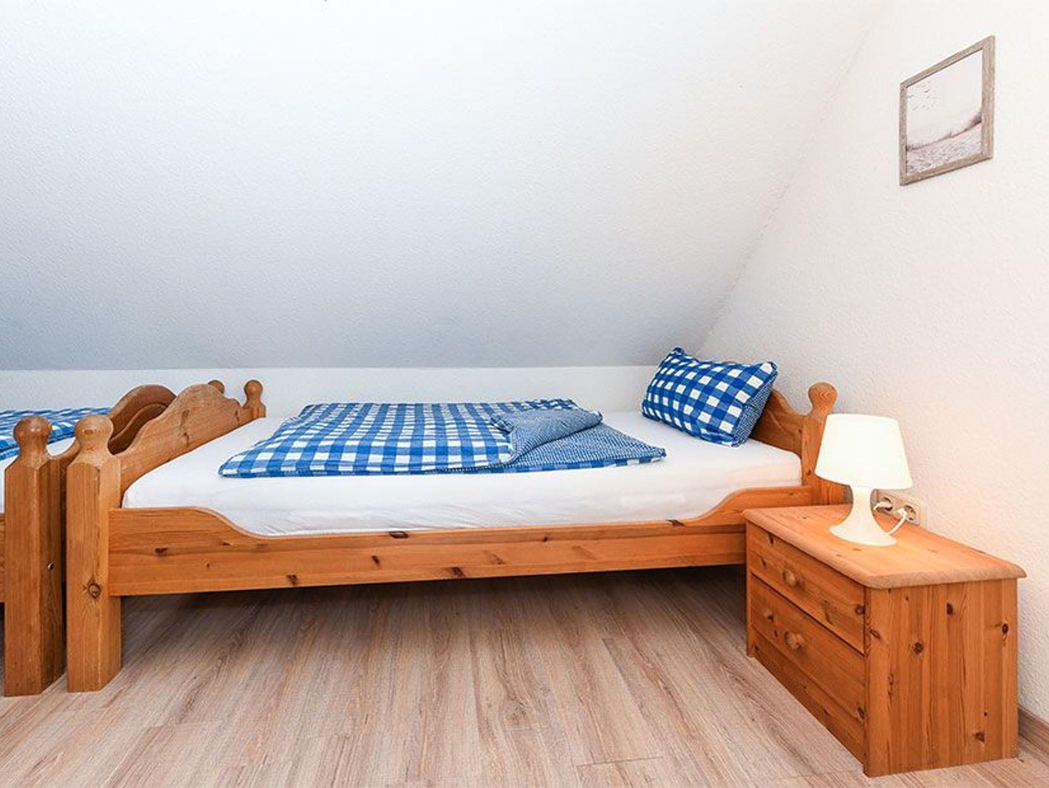 Die Ferienwohnung „Taubenschlag“ ist mit 70 Quadratmetern Wohnfläche auch sehr großzügig und für zwei bis fünf Personen leicht groß genug. Hier gibt es ein Wohnzimmer mit räumlich abgeteilter Küche und Ausgang zur West-Terrasse sowie ein schönes Badezimmer mit Dusche, Waschtisch und WC und zwei Schlafräume.