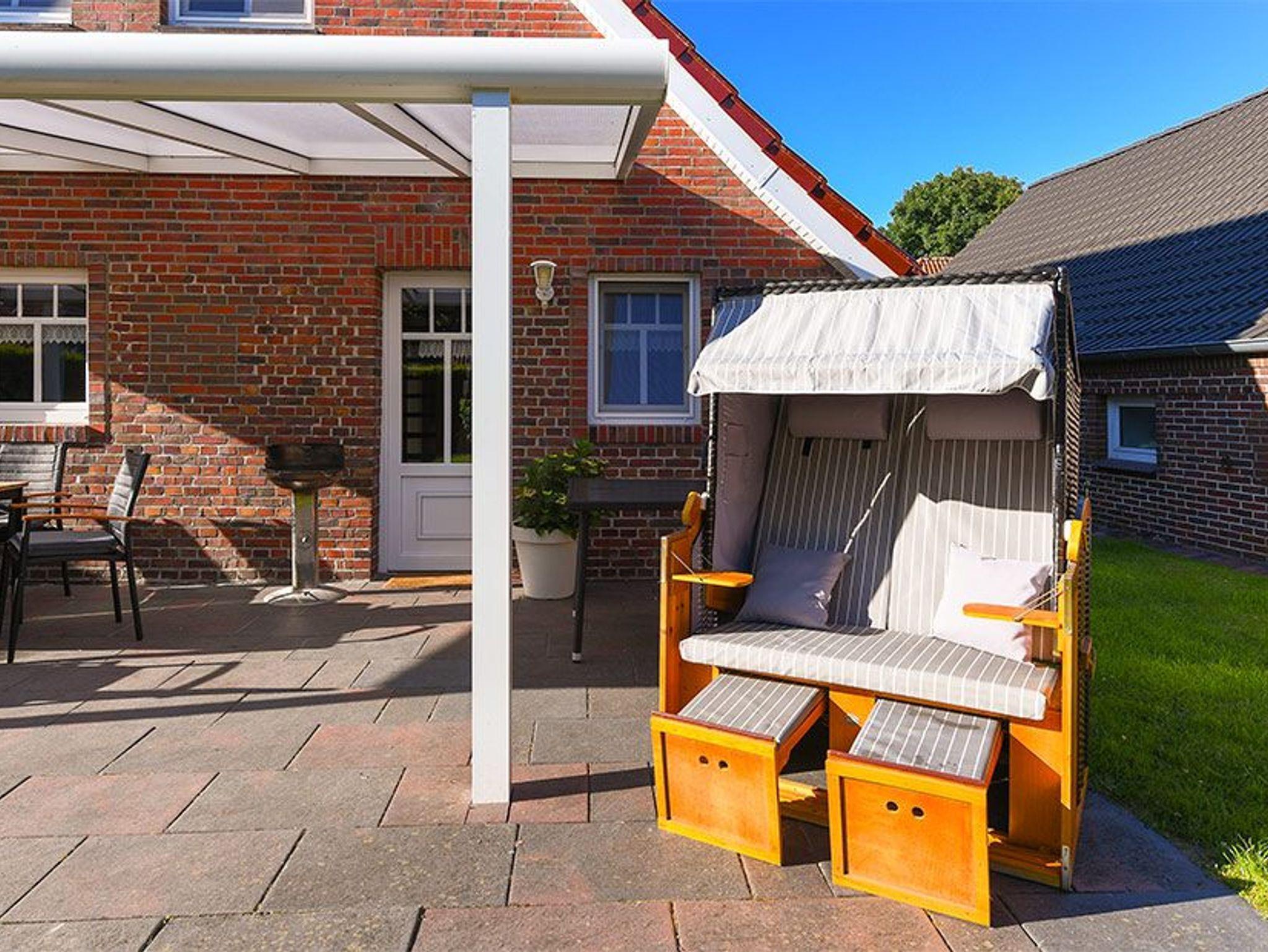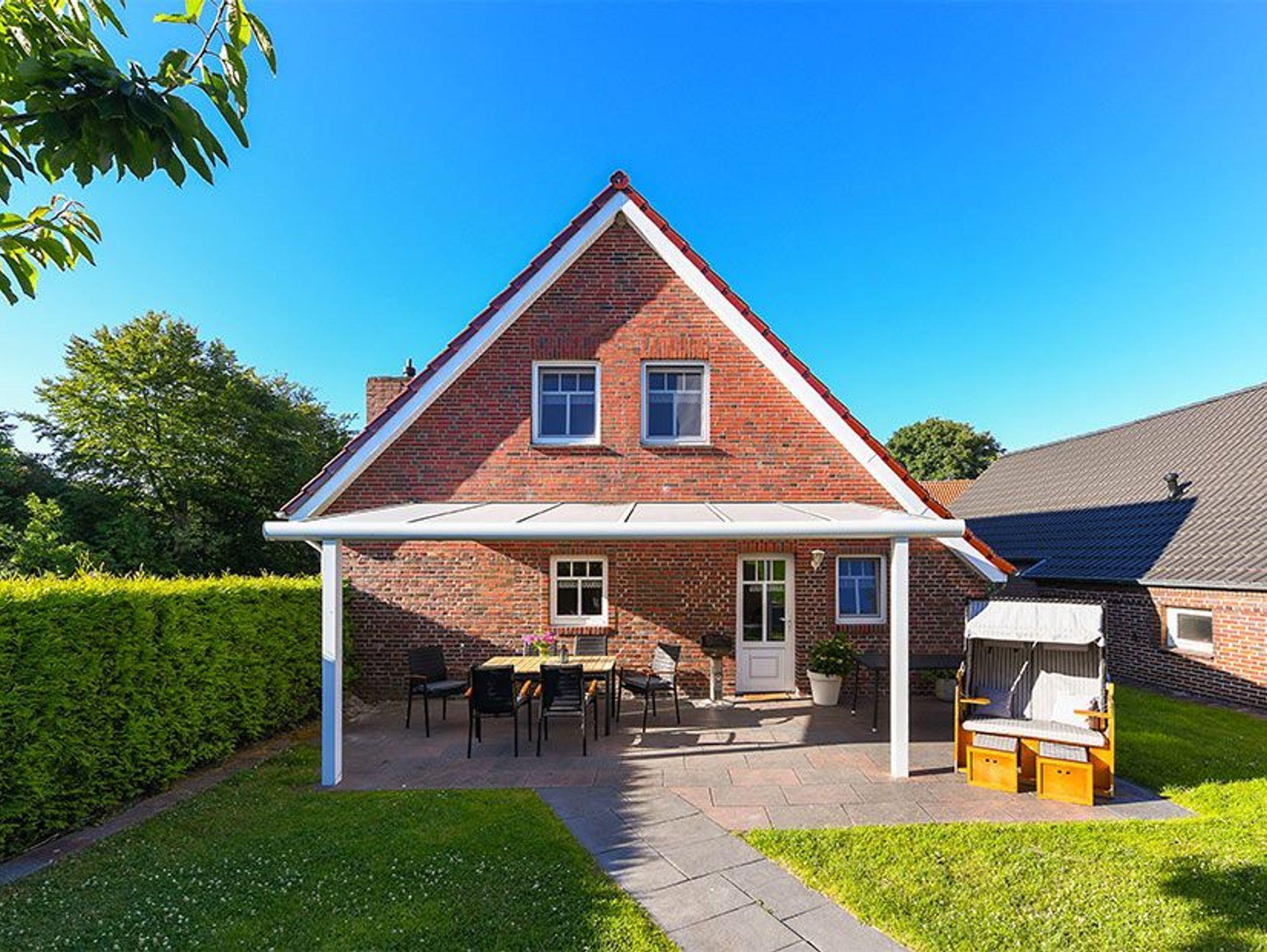 Modernes Ferienhaus Wetterleuchten in Werdum bietet Komfort, Terrasse und Nähe zum UNESCO-Weltnaturerbe Wattenmeer.
