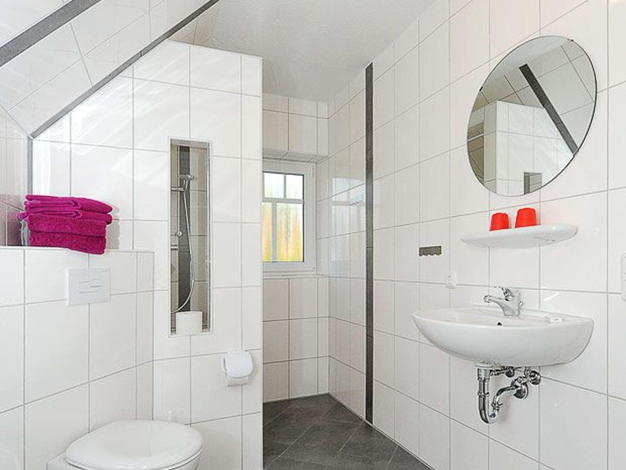 zweites Badezimmer mit Dusche, Waschtisch und WC