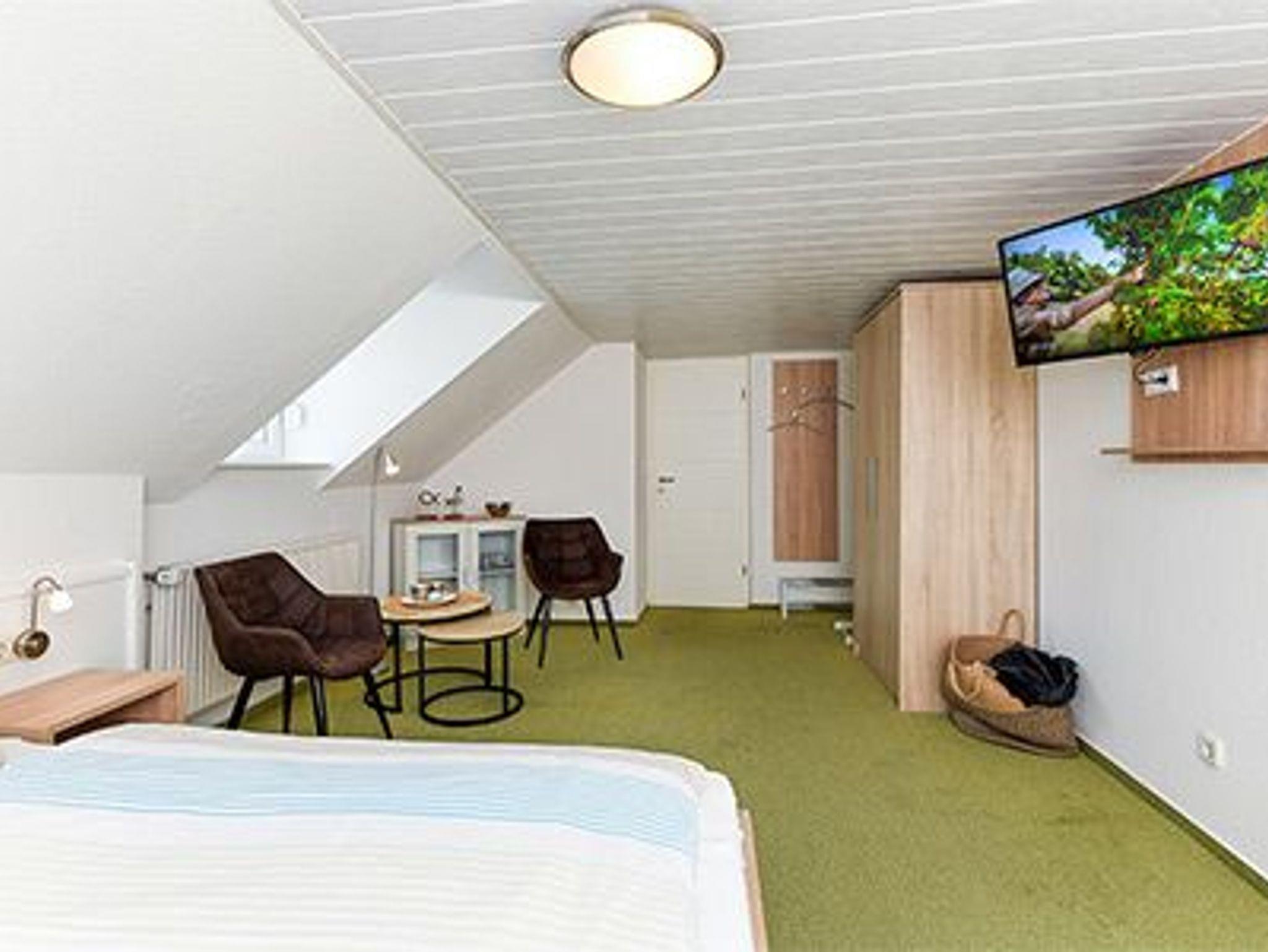 Gemütliches Zimmer in der Burg-Gaststätte Werdum, ideal für entspannte Tage im historischen Warfendorf.