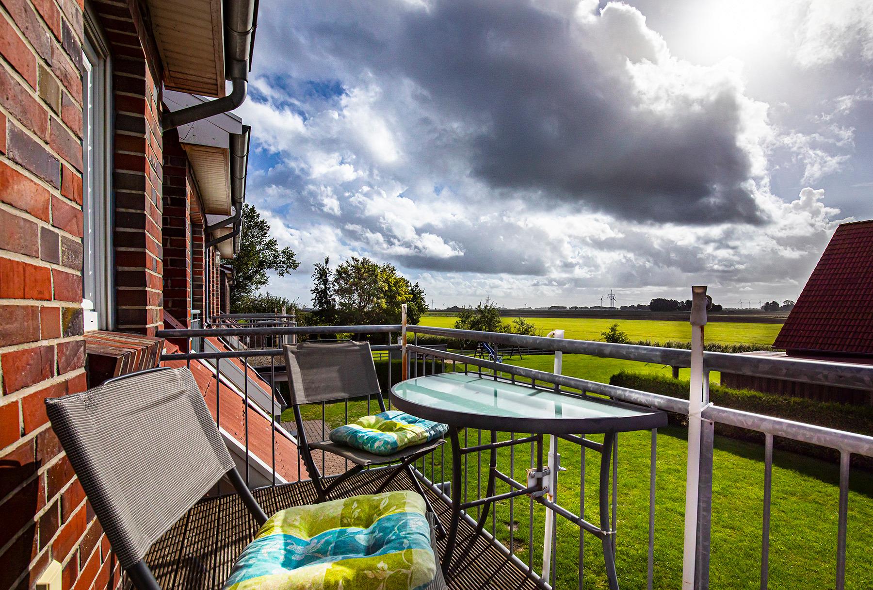 Moderne Ferienwohnung in Werdum mit 3 Schlafzimmern, Panoramablick und großem Balkon für erholsame Urlaubstage.