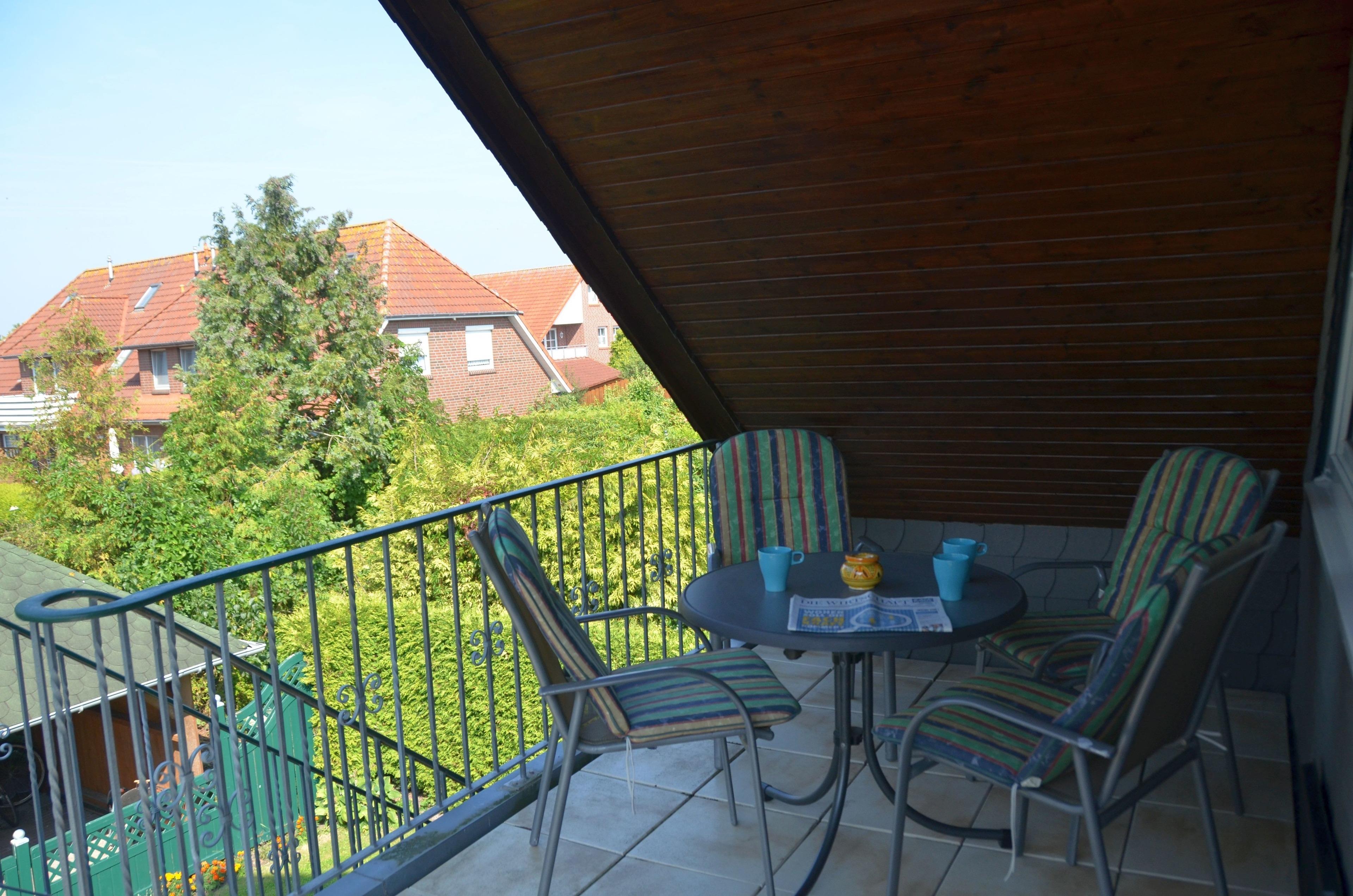 Gemütliche Dachgeschoss-Ferienwohnung Steuermann mit großem Balkon im Luftkurort Werdum für erholsame Urlaubstage.