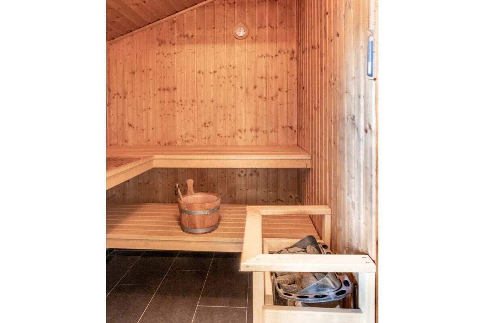 Parterre: (Küche(Herd, Kochplatte, Backofen, Spülmaschine, Kühlschrank), Wohn/Esszimmer(Schlafcouch 1 Pers., Etagenbett, TV, Esstisch), Schlafzimmer(Doppelbett), Badezimmer(Dusche, Toilette)) , Ruheraum(Sauna), Veranda(Gartenmöbel), Internet, Terrasse(, , , , Kochnische, Toilette, Bibliothek, Sauna, Strand, TV, Kaminofen, DVD-Spieler, Radio, Stereoanlage, Waschbecken, Waschmaschine, Gartenmöbel, Liegen, Hochstuhl, Föhn), Trockenschrank