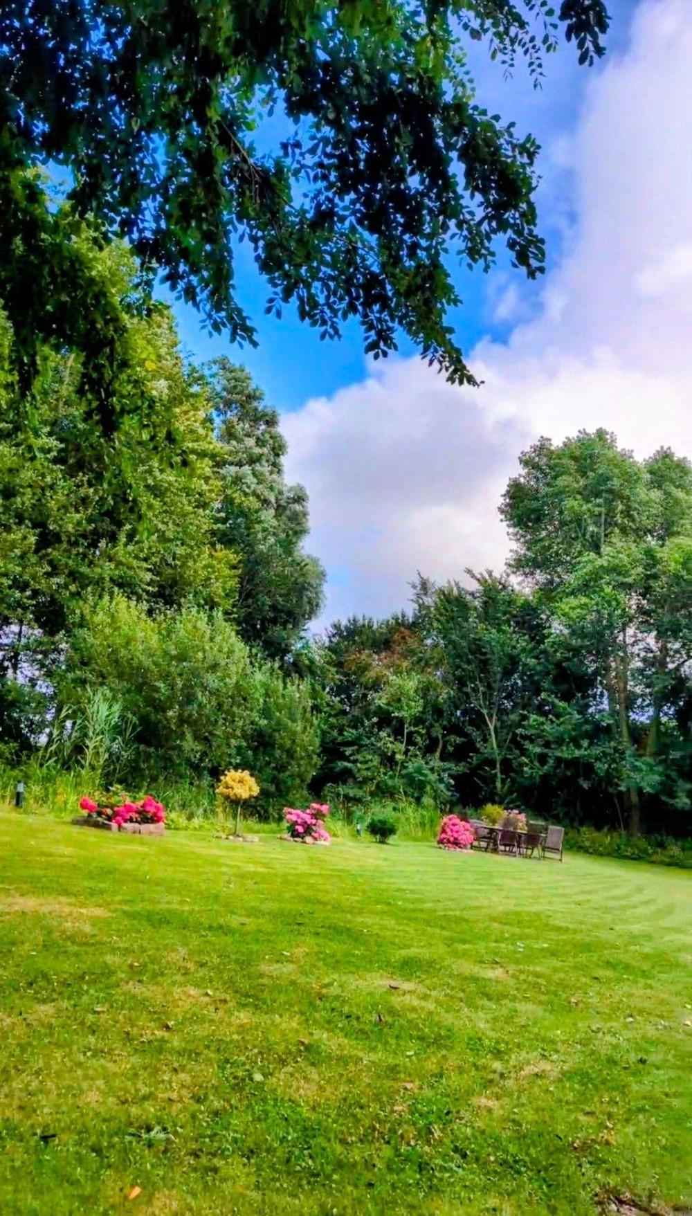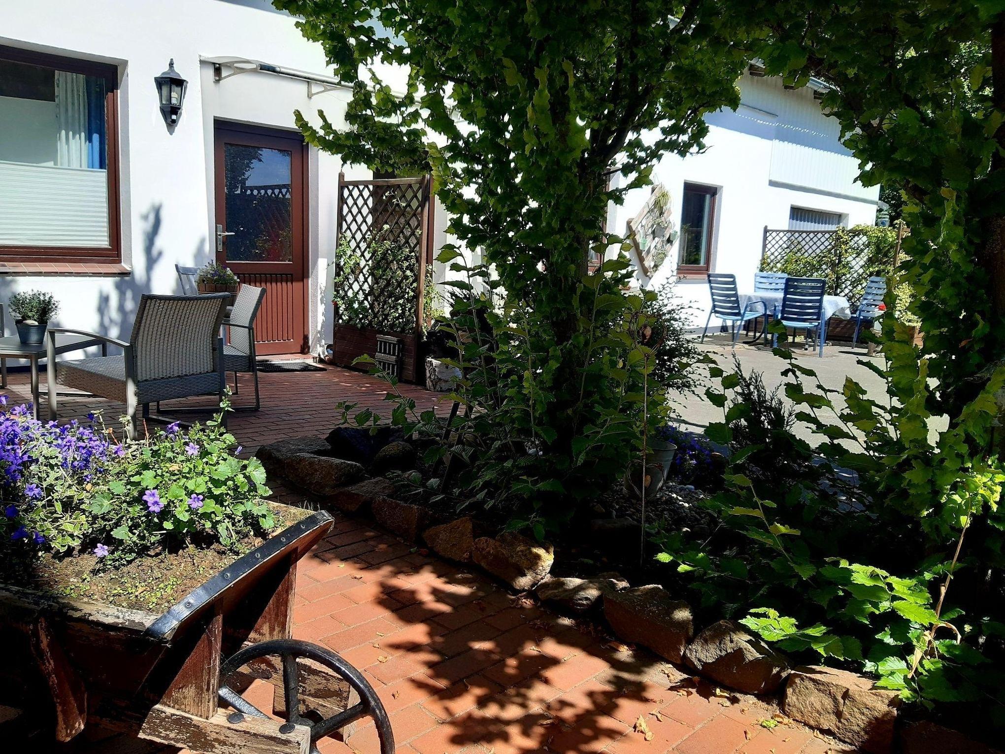 Die Ferienwohnung befindet sich auf einem 4000 qm großen Grundstück,neben dem Haupthaus. Durch die Scheune gelangen Sie in den großen Garten mit Naturteich, einer Feuerstelle für gemütliche Abende mit Lagerfeuer oder Grillen. Ein kleiner Spielplatz befindet sich ebenfalls im Garten. In der Scheune haben wir für unsere kleinen Gäste ein Trampolin und verschiedene Fahrzeuge bereit gestellt. Unteranderem befindet sich dort ein Gesellschaftsraum mit kleiner Teeküche und die Waschküche mit Waschmaschine und Trockner (gegen eine Gebühr von 2,50 Euro pro Gang)