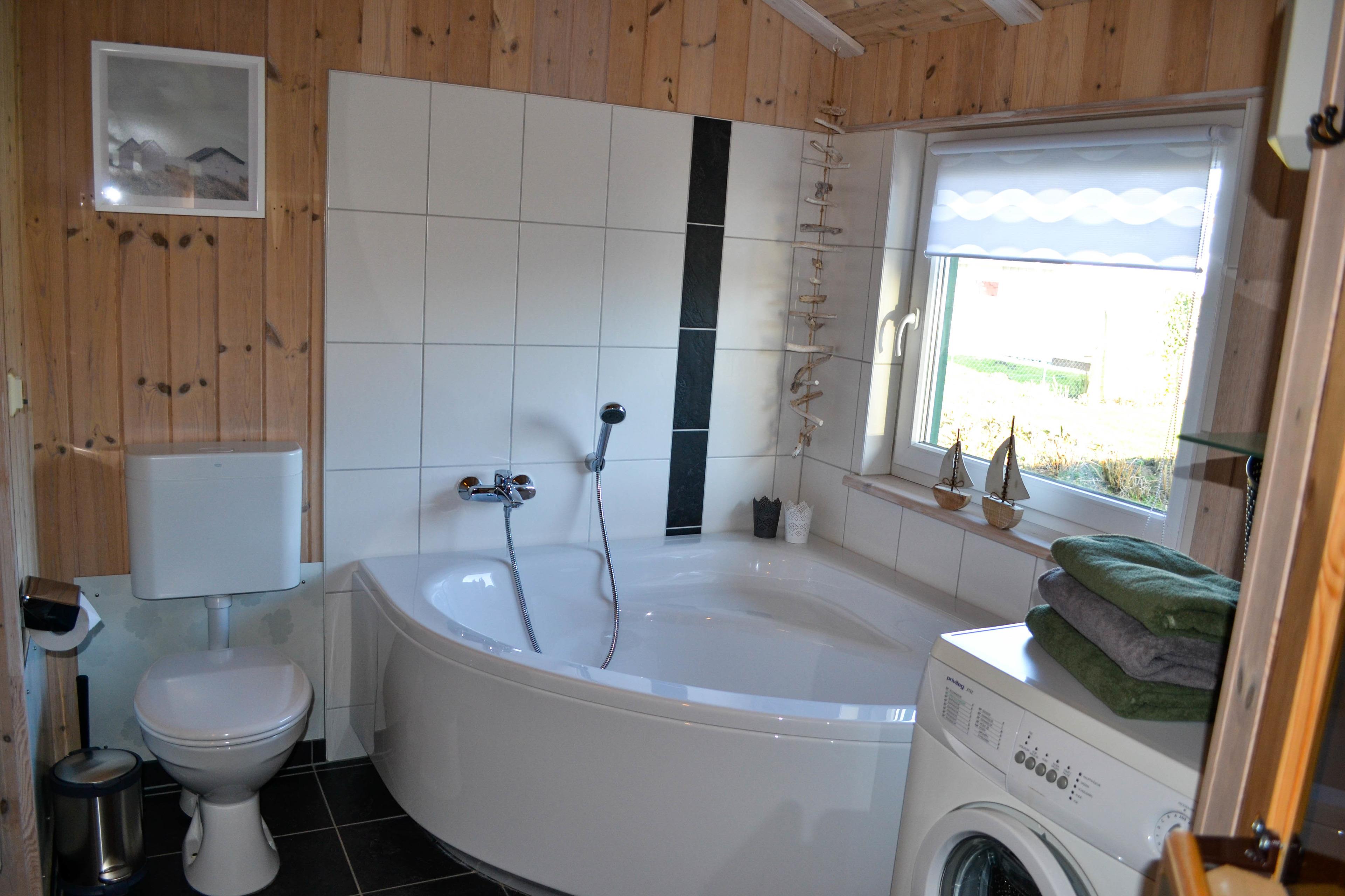 Das Ferienhaus bietet bis zu 6 Personen in drei Schlafzimmern Platz. Zwei Schlafzimmer sind mit hochwertigen Doppelbetten ausgestattet. Im dritten Schlafzimmer befinden sich zwei bequeme Einzelbetten in den Maßen 80x200cm. Eine urige Schlafnische ist von einer kleinen Treppe aus erreichbar und bietet ebenfalls Platz für bis zu 2 Personen (siehe Bilder). Ein Kinderreisebett, sowie ein Hochstuhl steht für die kleinsten Gäste kostenfrei zur Verfügung. Im gemütlichen Badezimmer erwartet Sie neben einer Dusche auch eine großzügige Eckbadewanne. Eine Sauna steht Ihnen ebenfalls zur Verfügung. Die bereitgestellte Wachmaschine und ein abschließbarer Abstellraum für Ihre Fahrräder o.ä. runden Ihren Urlaubskomfort ab.