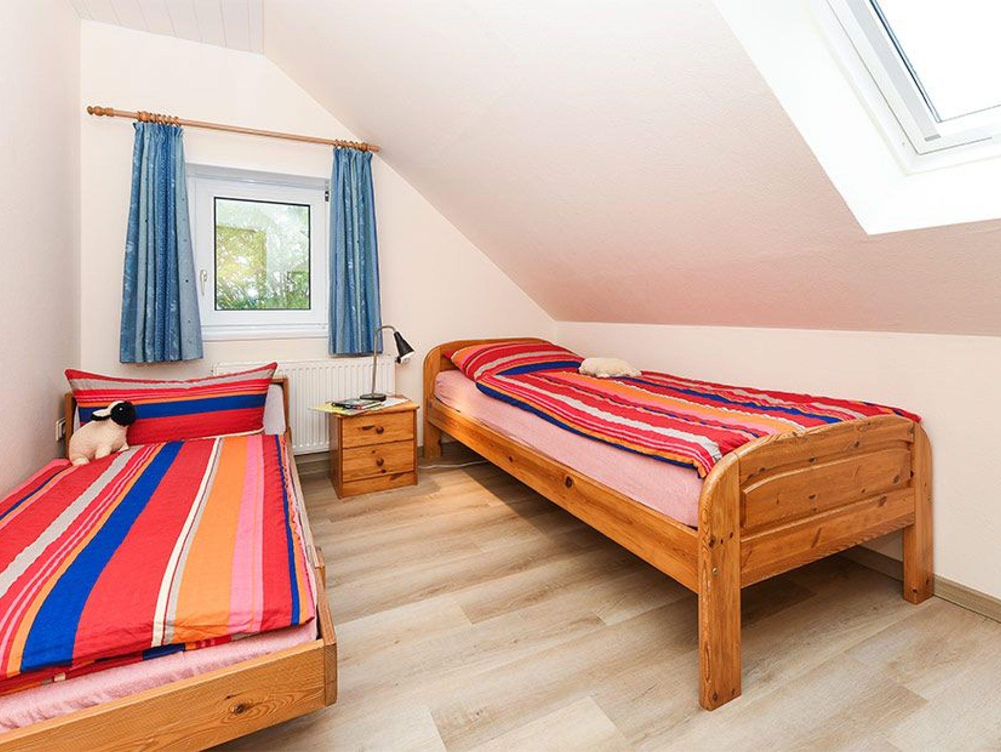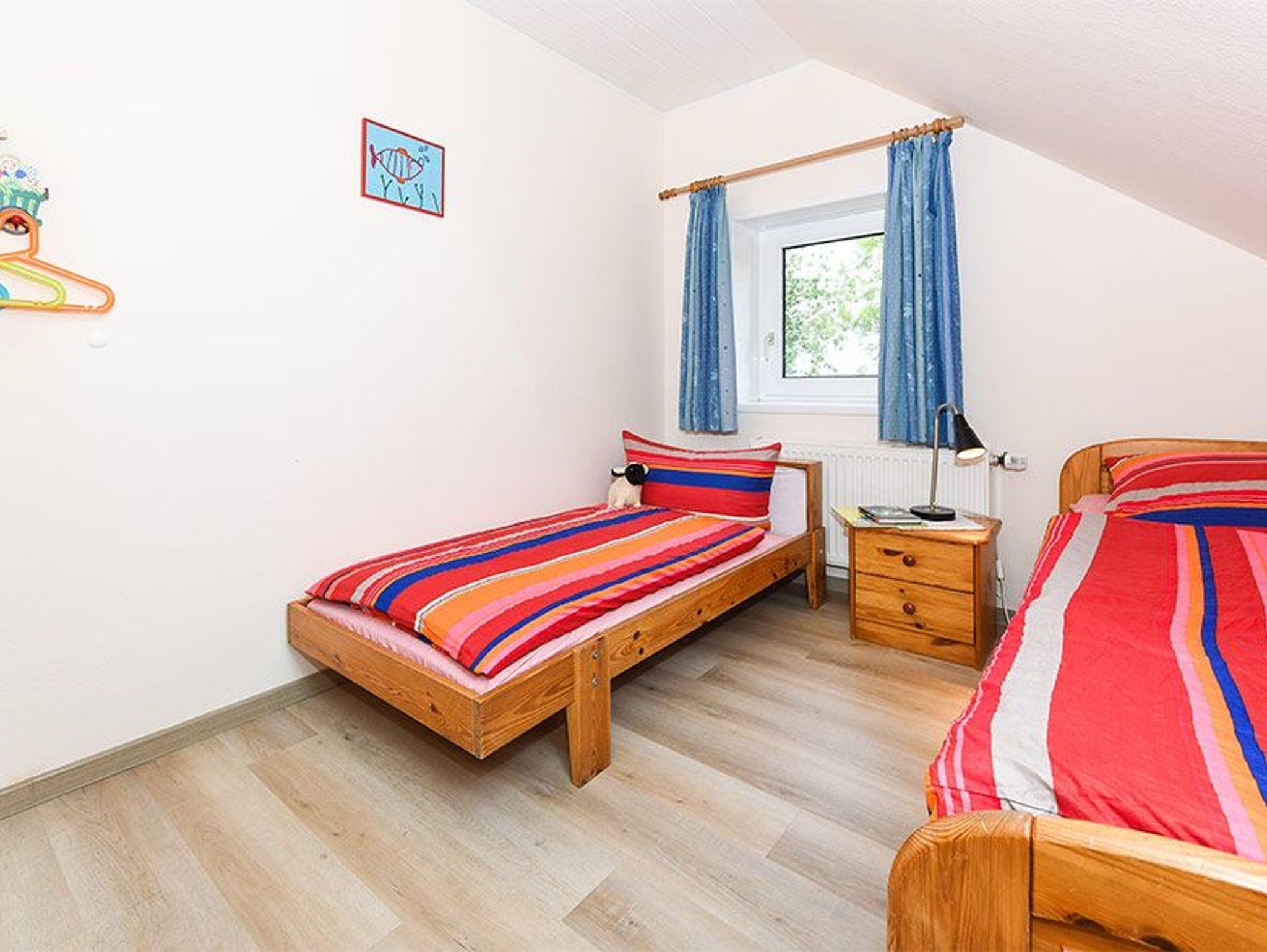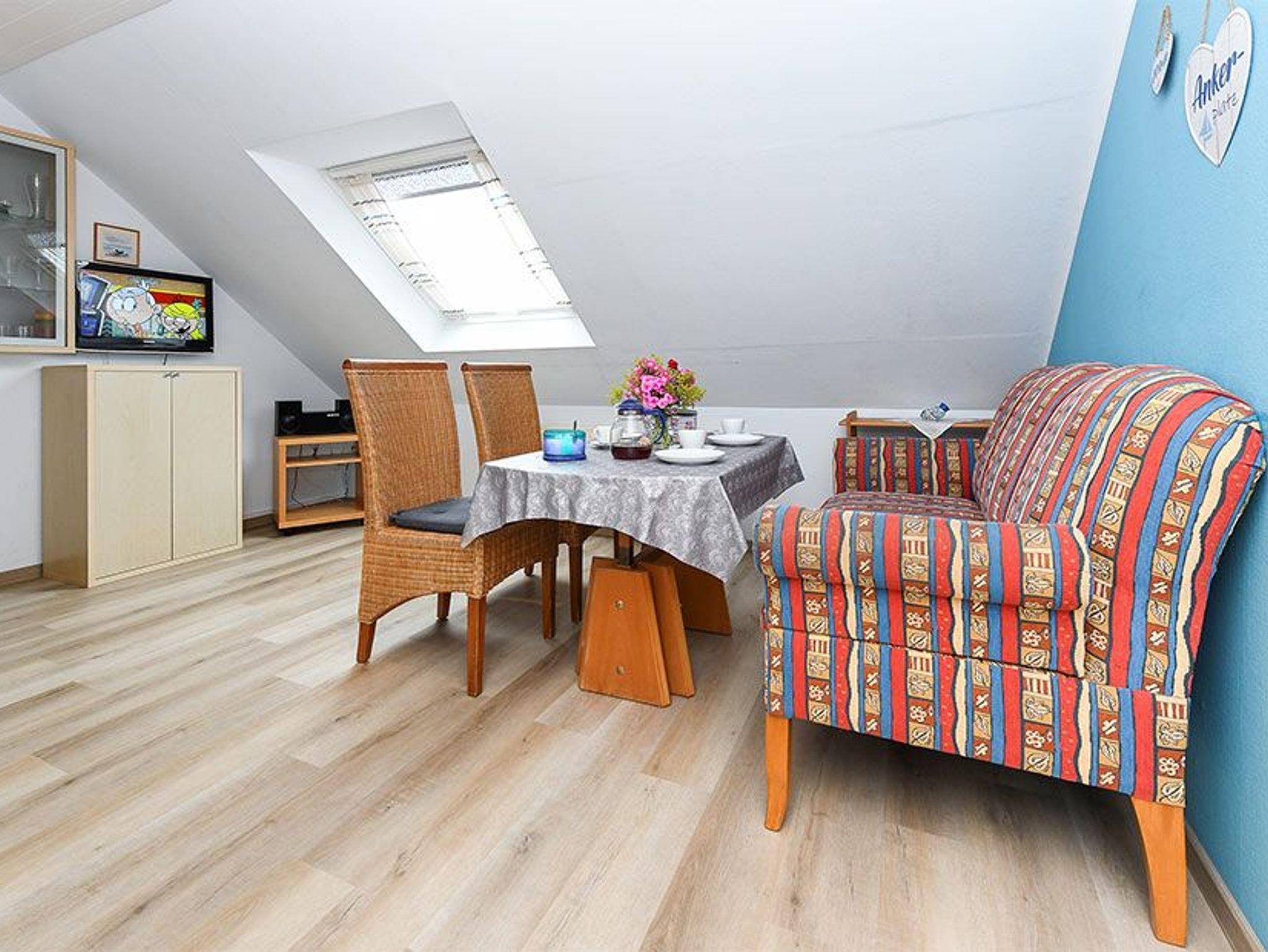 Größe ca. 50 Quadratmeter, Wohnraum mit integrierter Küche, Schlafzimmer, zweites separates Schlafzimmer/Kinderzimmer, Badezimmer mit Dusche, Waschtisch und WC, Obergeschoss, optimal für 2 bis 3 Personen und zusätzlich ein Kleinkind.