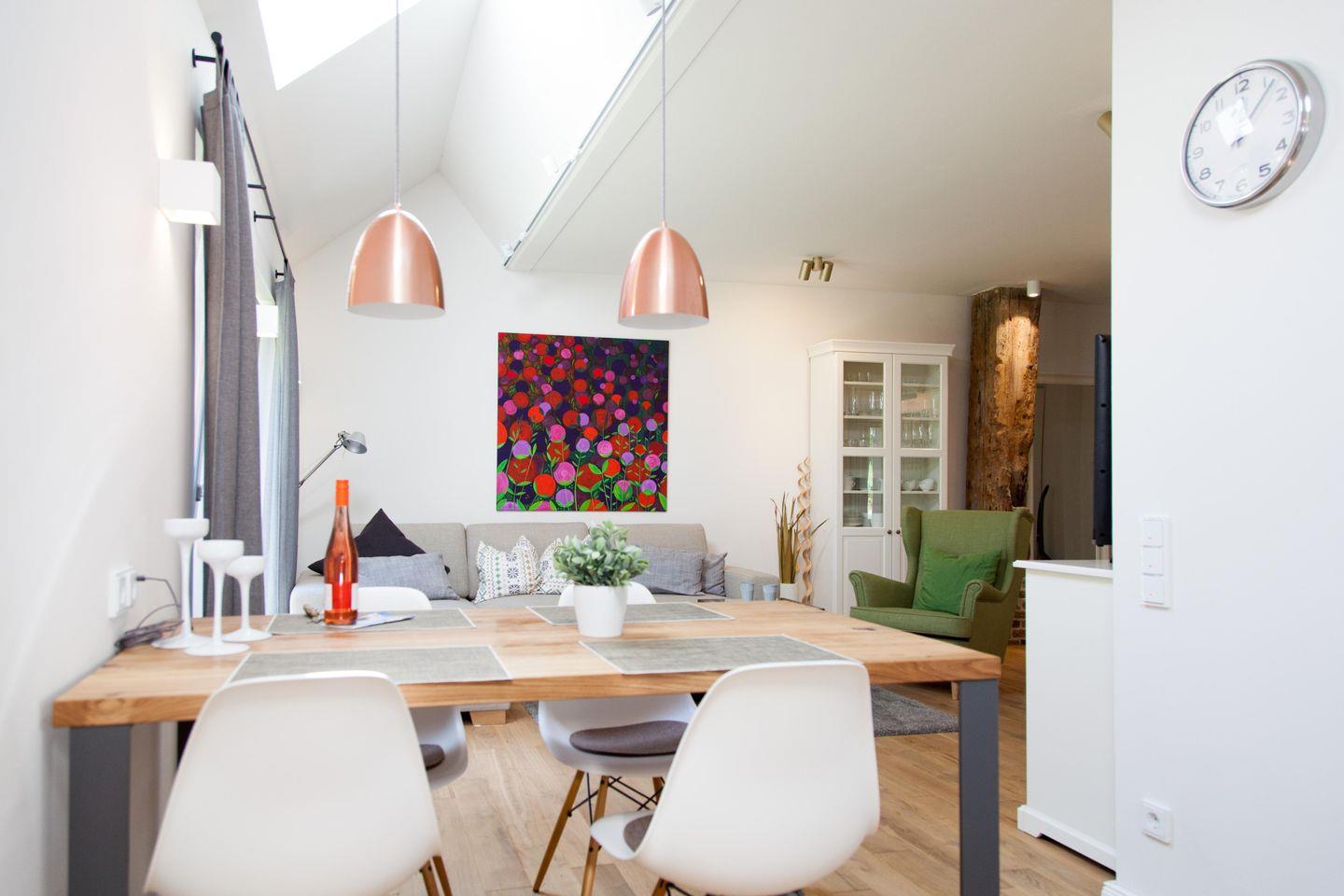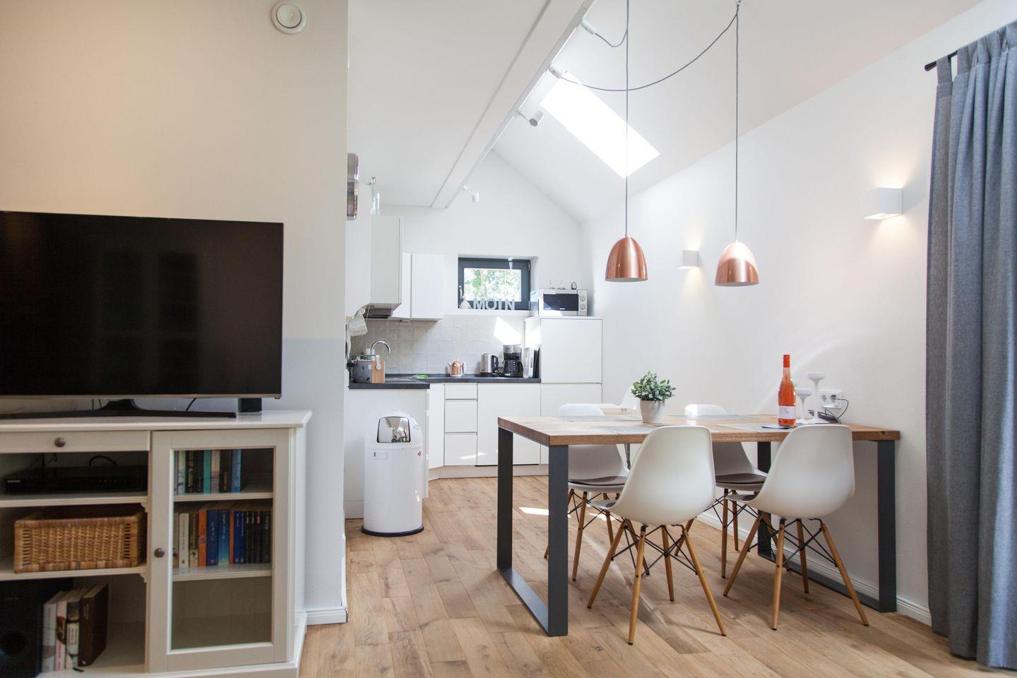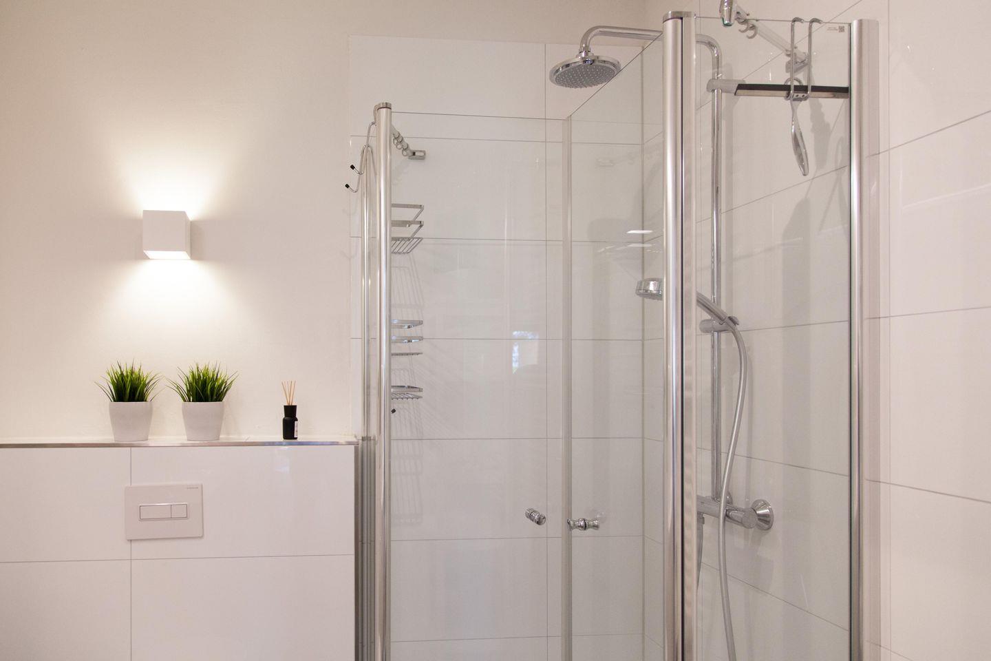 Die offene Küche ist vollständig ausgestattet und lässt keine Wünsche offen, vom Cerankochfeld über die Spülmaschine bis hin zu einer Kaffeemaschine – alles ist vorhanden. Hier können Sie frische Zutaten aus den umliegenden Märkten zubereiten und im schönen Essbereich genießen. Das Badezimmer ist modern gestaltet und bietet Ihnen eine bodengleiche Dusche, die für maximalen Komfort sorgt.