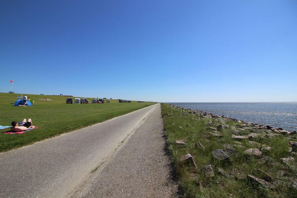 Moderne Ferienwohnung in Westerdeichstrich mit Balkon und Strandkorb inklusive in den Sommermonaten.