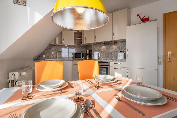 In der 1. Etage: (offene Küche(Kochplatte(4 Kochplatten, Ceranfeld), Wasserkocher, Toaster, Dunstabzugshaube, Kaffeemaschine, Backofen, Mikrowelle, Spülmaschine, Kühlschrank(+ Gefrierfach)), Wohn/Esszimmer(TV(Flatscreen, Satellit), Esstisch, Sitzecke), Schlafzimmer(Doppelbett), Schlafzimmer(Einzelbett, Einzelbett), Badezimmer(Dusche, Waschbecken, Toilette, Waschmaschine)) Balkon, Heizung, Gartenmöbel, Parkplatz, Handtücher/Bettwäsche (inklusive)