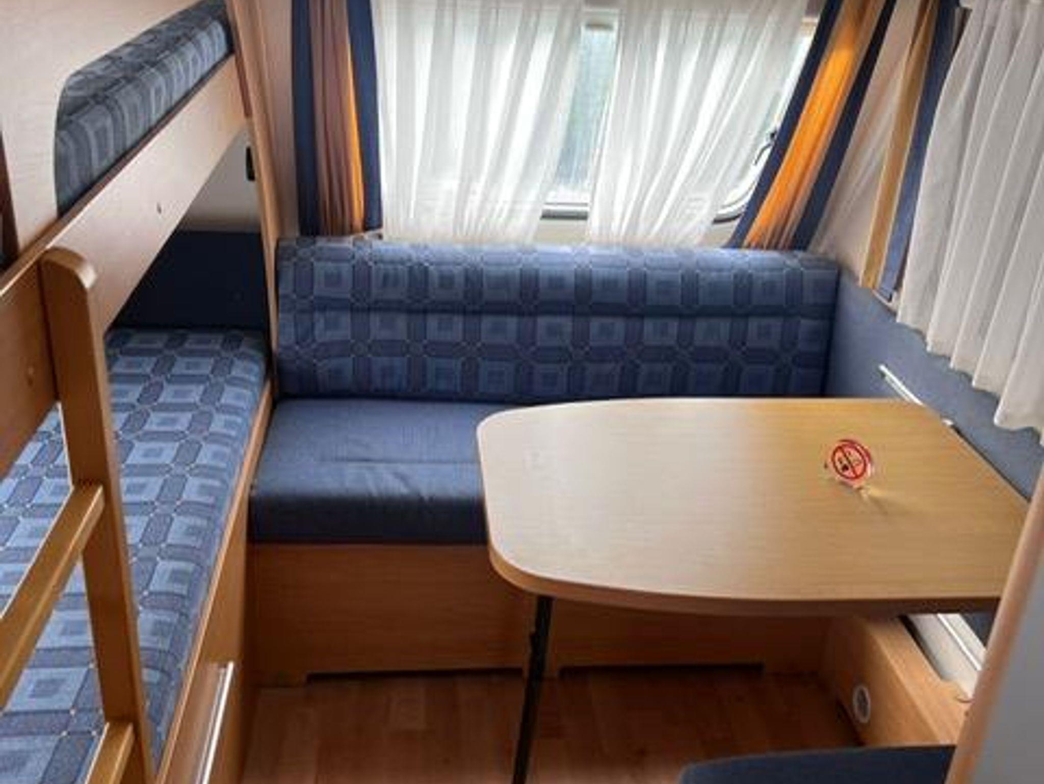Miet-Wohnwagen Florian: Urlaub in unserem Mietwohnwagen mit festem Vorzelt: Im Wohnwagen befindet sich ein Festbett (2m x 1,4m) das Platz für zwei Personen bietet und ein Doppelstockbett für zwei weitere Personen/Kinder. Viele kleine Fächer und ein Kleiderschrank bieten genug Platz für Ihre Sachen. Im Vorzelt befindet sich die Küche mit Herdplatten und Kühlschrank, einer Ess-Ecke und einem Sofa. Die Ausstattung bietet Geschirr und Besteck für max. vier Personen. Strom und ein Bettlaken für die Matratze sind im Preis enthalten. Bettdecken, Kopfkissen und/oder Schlafsäcke, Bettwäsche und Handtücher sind bitte selbst mitzubringen. Vor dem Wohnwagen befindet sich eine eigene kleine Terrasse mit Tisch und Stühlen für gemütliche Frühstücke und Grillabende. Haustiere sind auf Anfrage erlaubt.