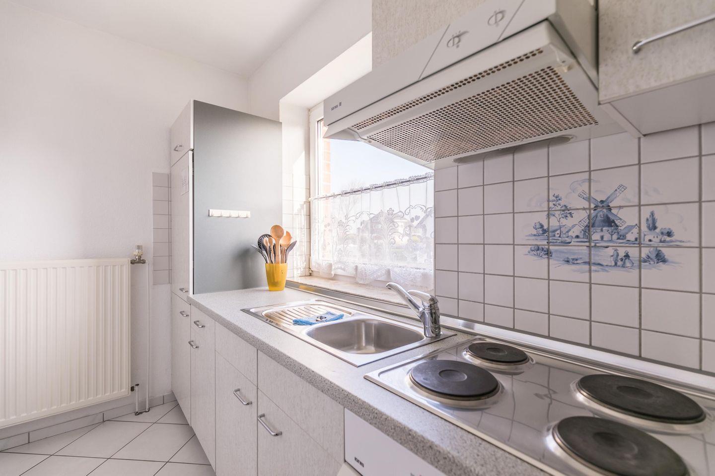 Hell und freundlich! Die Ferienwohnung Nr. 1 im Haus Butendörp ist die ideale Unterkunft für 2 Personen in einem kleinen 4-Parteien-Haus. Das Badezimmer ist geräumig, hat ein Fenster und viel Stauraum. Das Wohnzimmer lädt zum gemütlichen Sitzen ein. Die Küche ist komfortabel und bietet genügend Arbeitsfläche und Stauraum.
