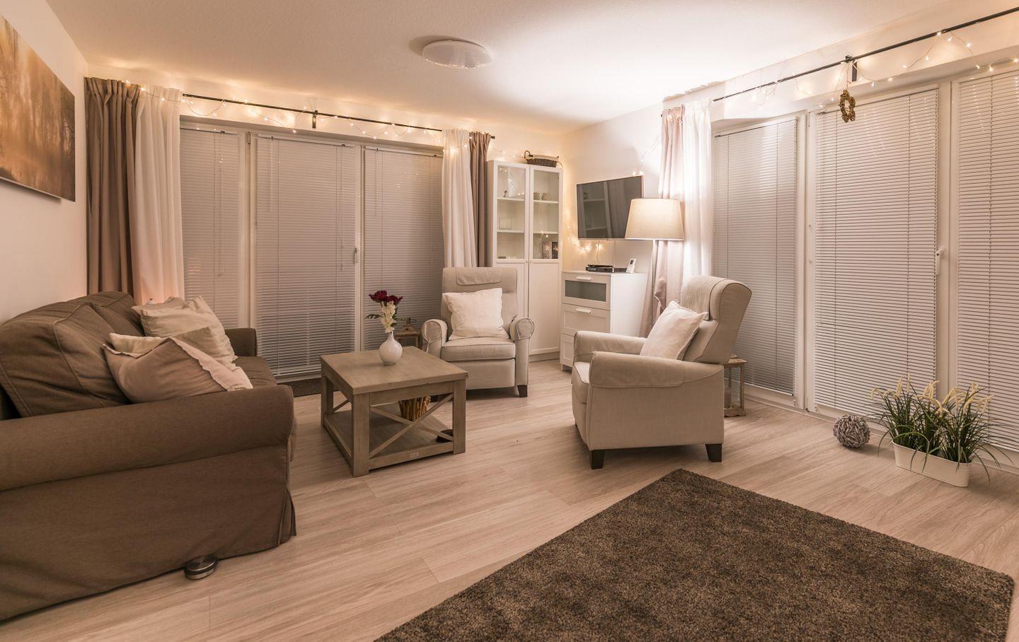 In der Ferienwohnung Schöne Aussicht können Sie den herrlichen Blick über die Felder Richtung Büsum genießen und bewohnen eine gemütliche Wohnung in sanften Farben.