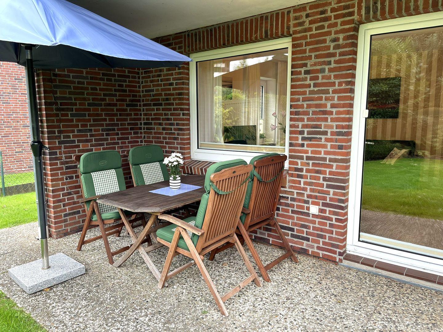 Auf der teils überdachte Sonnenterrasse können Sie die frische Nordseeluft genießen. Auch ein Grill ist hier vorhanden.