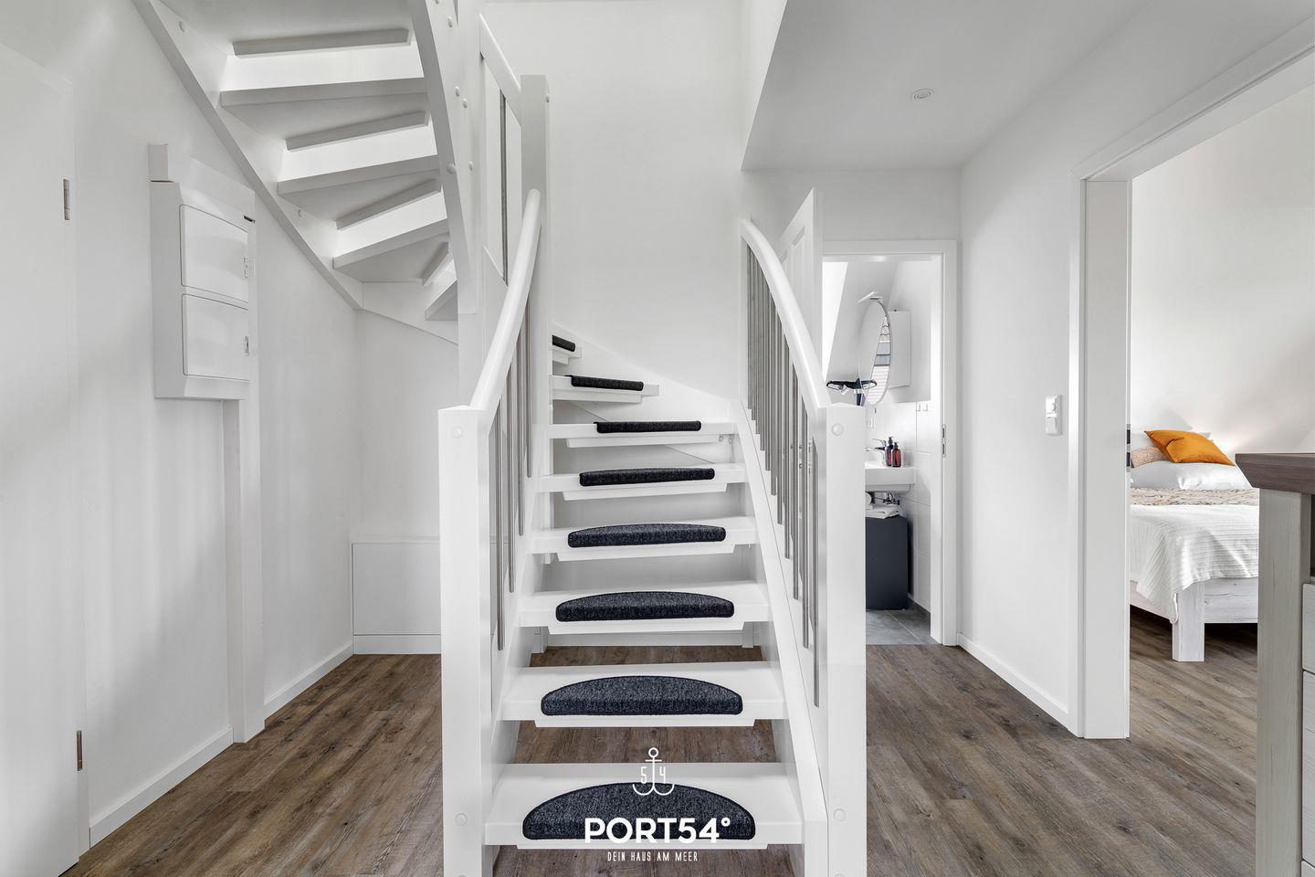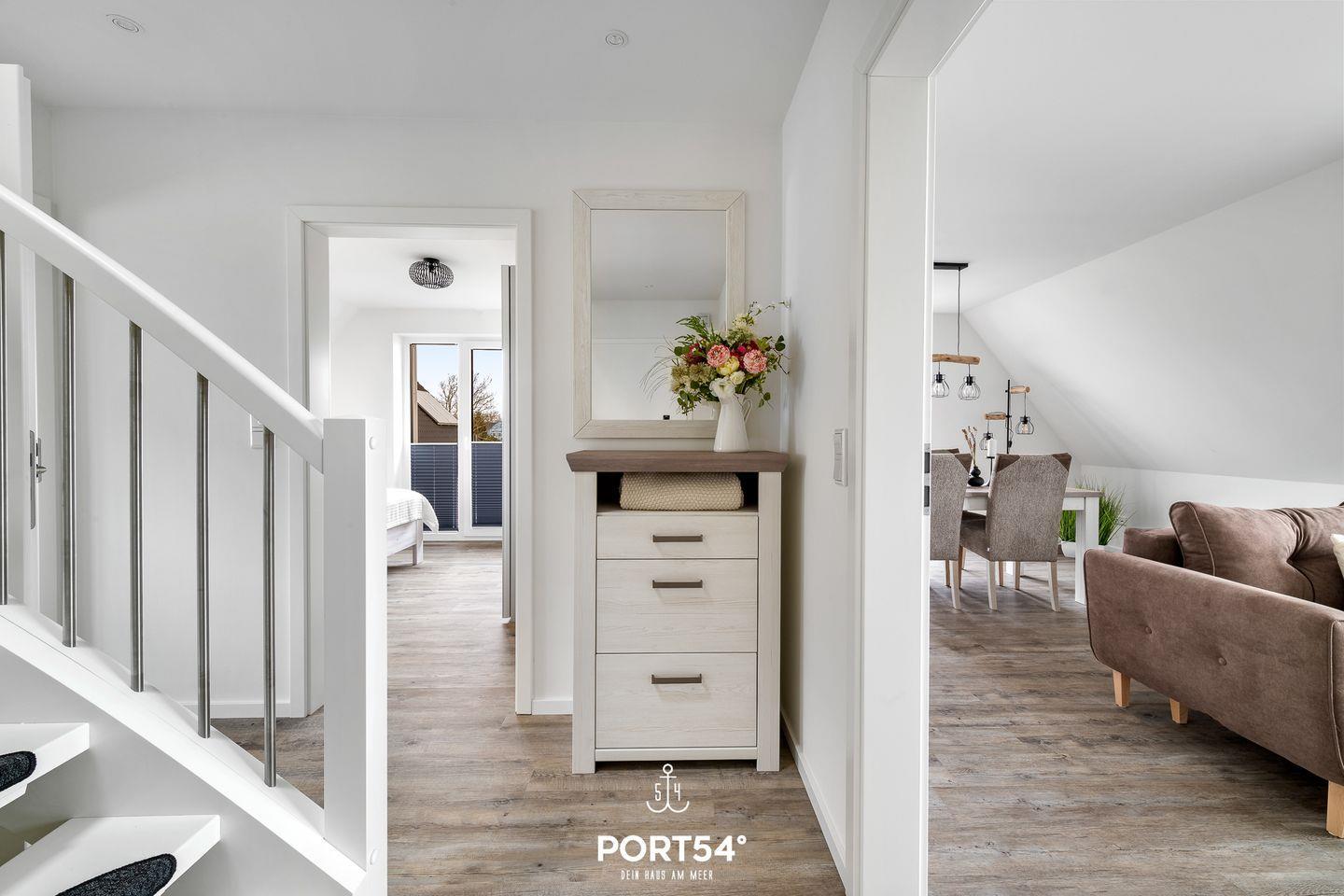 Die im OG gelegene Ferienwohnung "Küste 3" ist für 6 Personen geeignet. Der Wohnbereich ist mit einem Schlafsofa und einem TV ausgestattet. Die Küche ist offen gestaltet und voll ausgestattet. Bodentiefe Fenster ermöglichen den Ausblick in die Natur und den Zutritt zum Balkon. Die beiden Schlafzimmer erwarten Sie mit je einem großes Doppelbett (180x200cm), sowie Verdunkelungsmöglichkeiten. Das Badezimmer ist mit einer ebenerdigen Dusche ausgestattet. Ein Gäste-WC ist vorhanden.