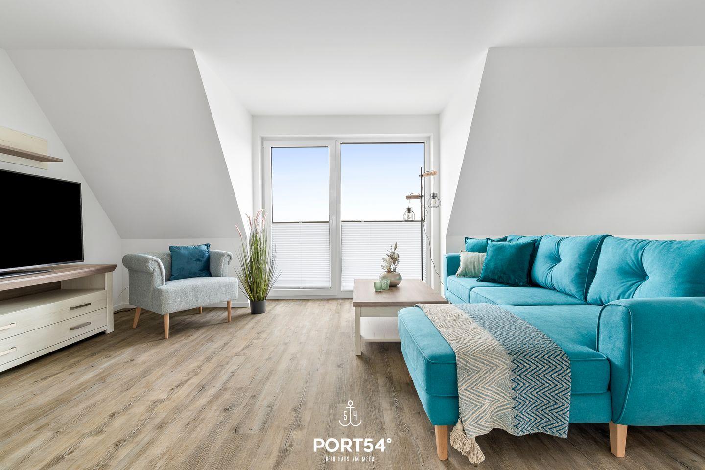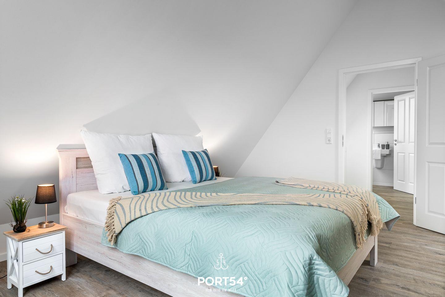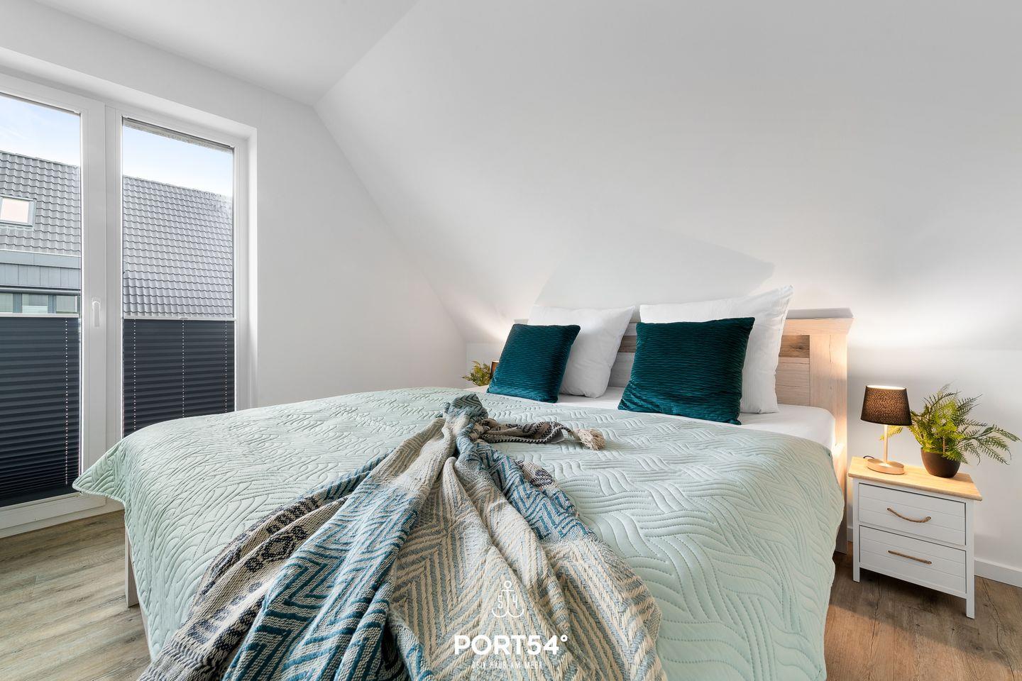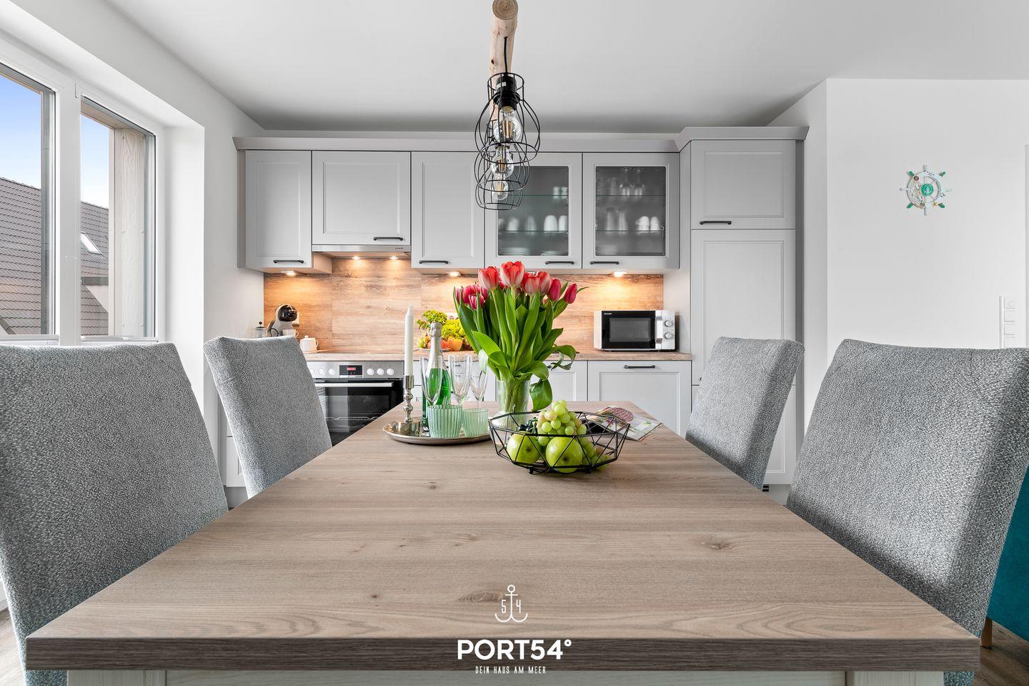 In gehobener und exklusiver Holzständerwerk-Bauweise erwartet Sie die im Dachgeschoss und Spitzboden gelegene Ferienwohnung "Küste 4" auf etwa 85m². Der lichtdurchflutete Wohnbereich ist mit einer gemütlichen Wohnlandschaft inklusive Schlaffunktion (240x135cm) und einem Flachbild-TV ausgestattet. Die angrenzende Küche ist offen gestaltet und bietet alle Annehmlichkeiten, die für einen geselligen Kochabend benötigt werden. Am Esstisch mit gemütlichen Stühlen können Sie bequem gemeinsam essen oder einen Spieleabend verbringen. Bodentiefe Fenster ermöglichen den Ausblick in die Natur. Von hier aus gelangen Sie zum vollmöblierten Balkon. In einem der beiden Schlafzimmer erwartet Sie ein großes Doppelbett (180x200cm), sowie verdunkelbare Fenster. Das andere Schlafzimmer befindet sich im ausgebauten Spitzboden und bietet ein Doppelbett (160x200cm) und einen weiteren Flachbild-TV fürs nächtliche Entertainment und Verdunkelungsmöglichkeiten für erholsame Nächte. Das Badezimmer ist mit einer ebenerdigen Dusche, einem WC sowie einem Waschbecken ausgestattet. Im Spitzboden ist ein weiteres Bad mit einem WC sowie einem Waschbecken untergebracht.