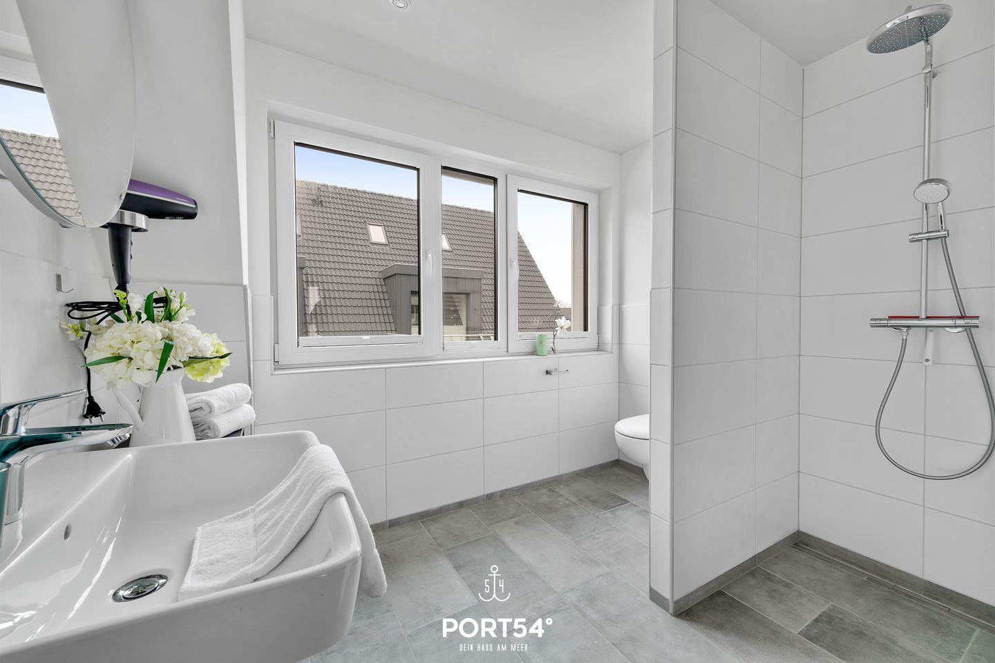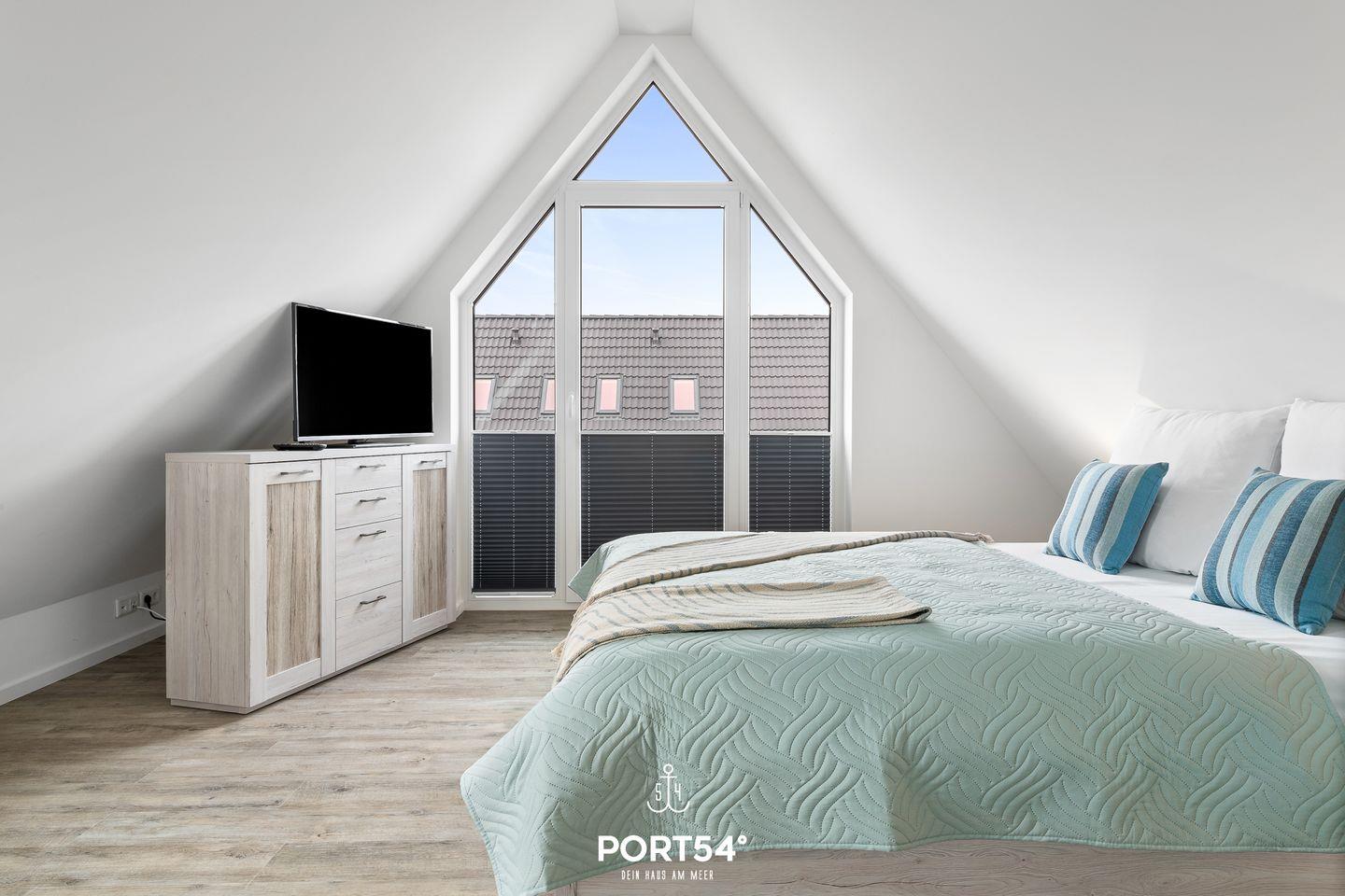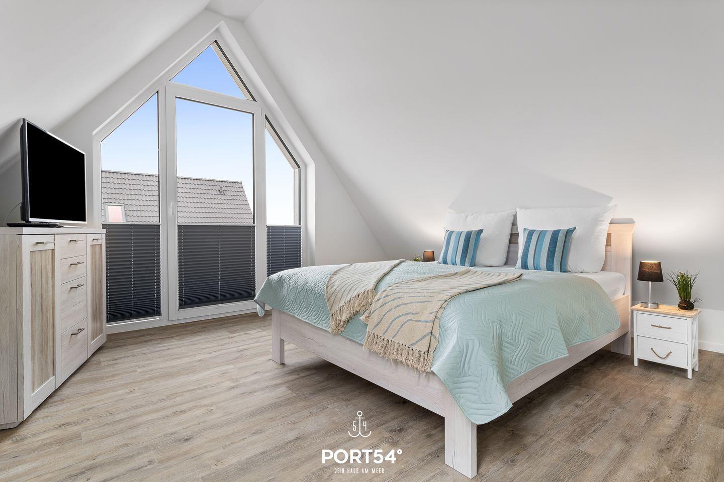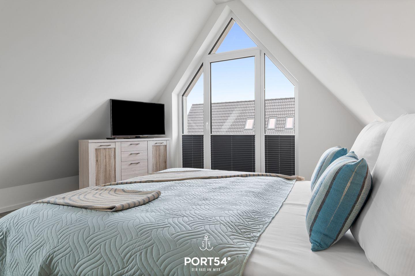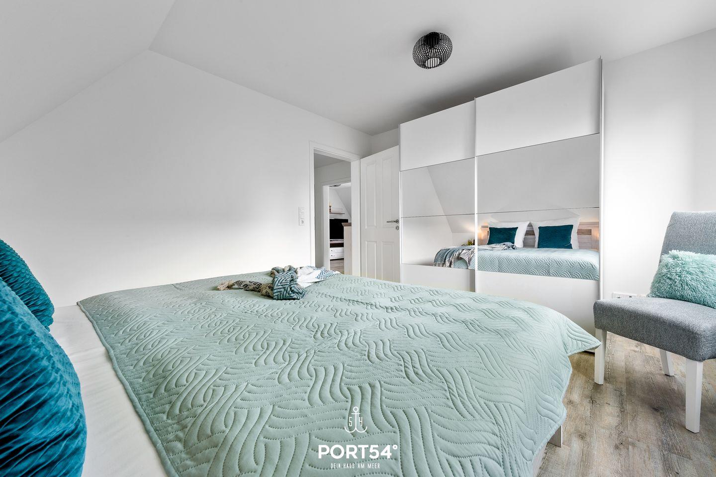 In gehobener und exklusiver Holzständerwerk-Bauweise erwartet Sie die im Dachgeschoss und Spitzboden gelegene Ferienwohnung "Küste 4" auf etwa 85m². Der lichtdurchflutete Wohnbereich ist mit einer gemütlichen Wohnlandschaft inklusive Schlaffunktion (240x135cm) und einem Flachbild-TV ausgestattet. Die angrenzende Küche ist offen gestaltet und bietet alle Annehmlichkeiten, die für einen geselligen Kochabend benötigt werden. Am Esstisch mit gemütlichen Stühlen können Sie bequem gemeinsam essen oder einen Spieleabend verbringen. Bodentiefe Fenster ermöglichen den Ausblick in die Natur. Von hier aus gelangen Sie zum vollmöblierten Balkon. In einem der beiden Schlafzimmer erwartet Sie ein großes Doppelbett (180x200cm), sowie verdunkelbare Fenster. Das andere Schlafzimmer befindet sich im ausgebauten Spitzboden und bietet ein Doppelbett (160x200cm) und einen weiteren Flachbild-TV fürs nächtliche Entertainment und Verdunkelungsmöglichkeiten für erholsame Nächte. Das Badezimmer ist mit einer ebenerdigen Dusche, einem WC sowie einem Waschbecken ausgestattet. Im Spitzboden ist ein weiteres Bad mit einem WC sowie einem Waschbecken untergebracht.