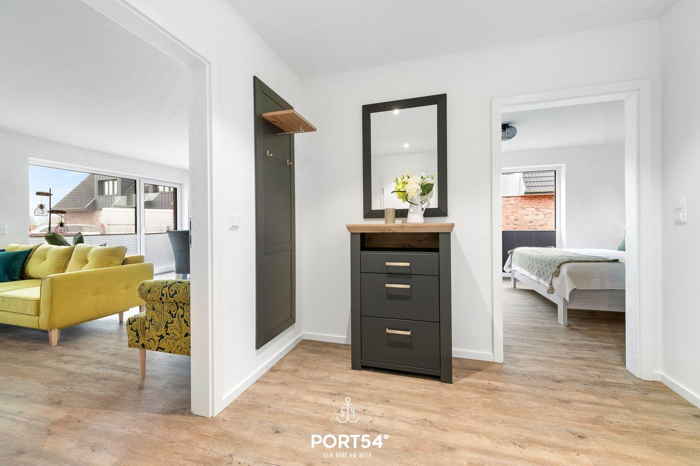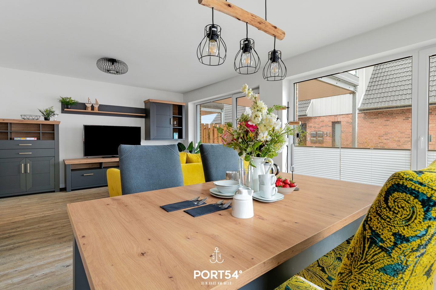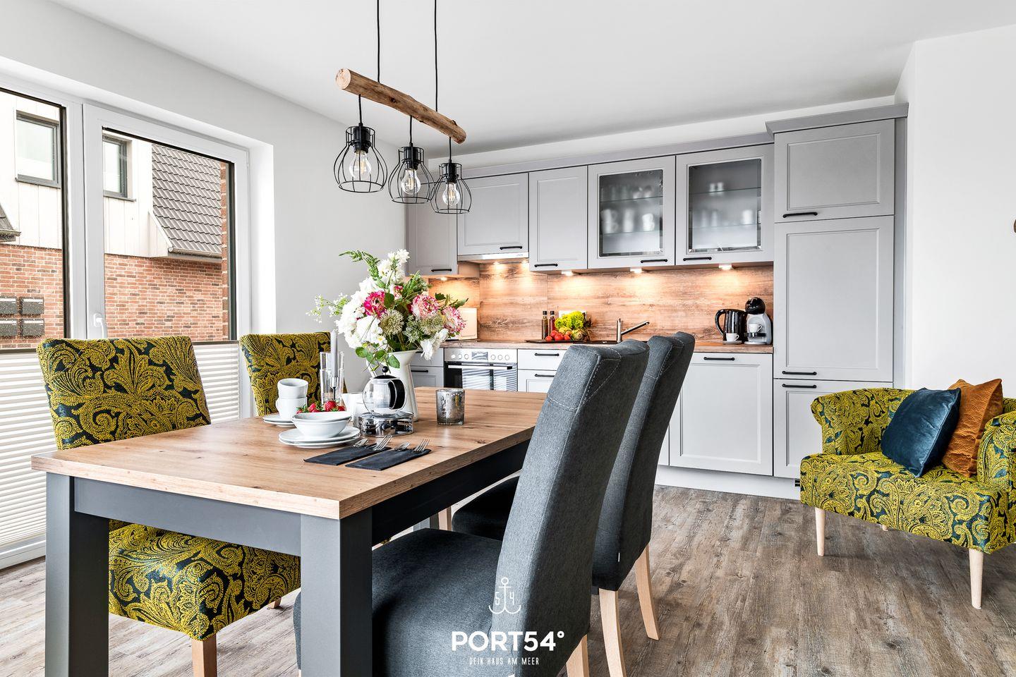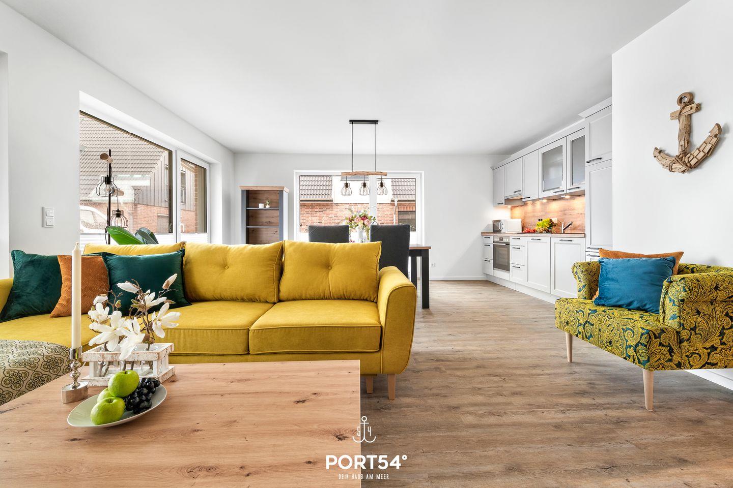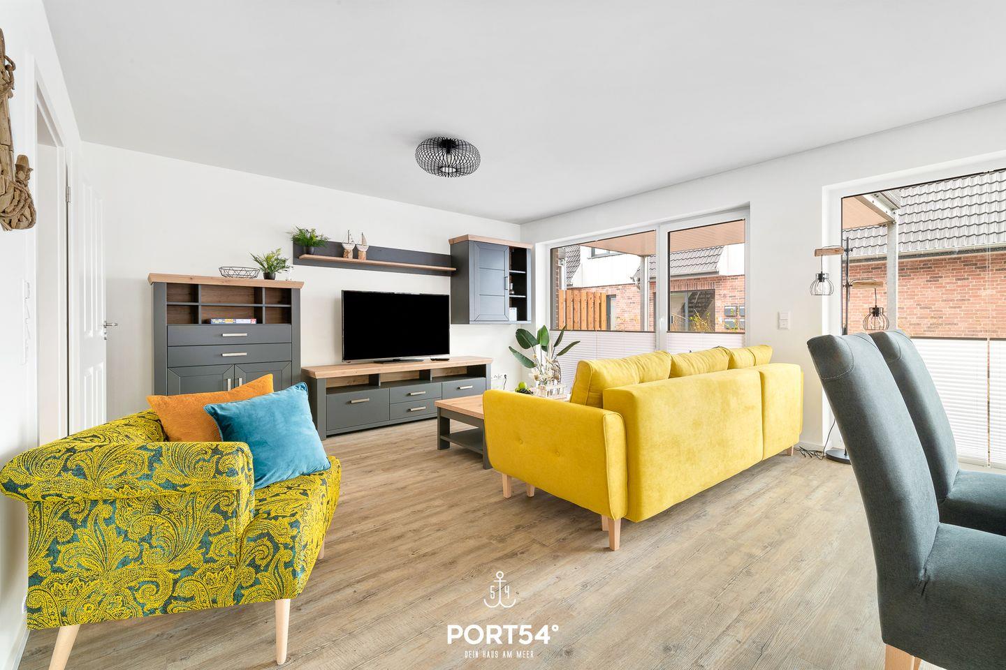 Die im EG gelegene Ferienwohnung "Küste 5" ist für 4 Personen geeignet. Der Wohnbereich verfügt über ein Schlafsofa und ein Smart-TV. Die Küche ist offen gestaltet und voll ausgestattet. Bodentiefe Fenster lassen viel Licht herein und ermöglichen den Zutritt zur vollmöblierten Terrasse. Im Schlafzimmer erwarten Sie ein großes Doppelbett (180x200cm), ein TV sowie verdunkelbare Fenster. Das Badezimmer ist mit einer ebenerdigen Dusche ausgestattet.