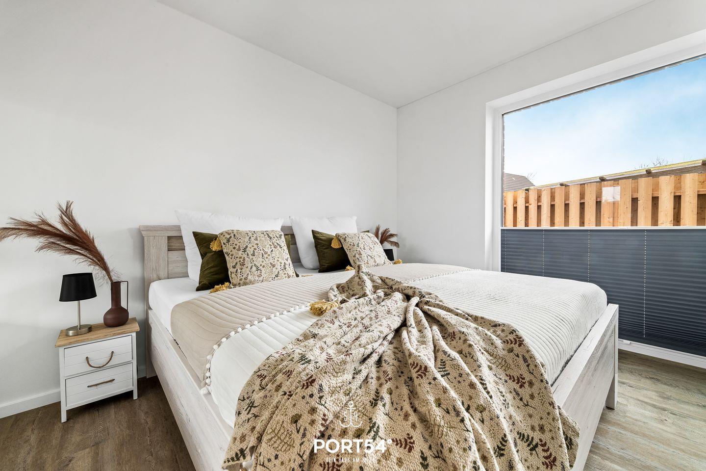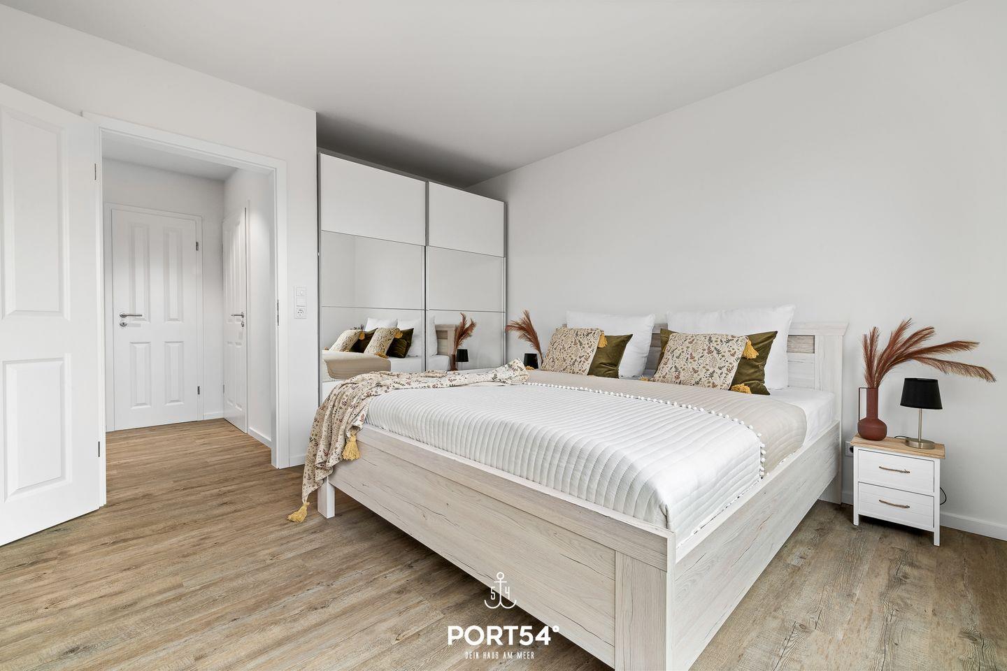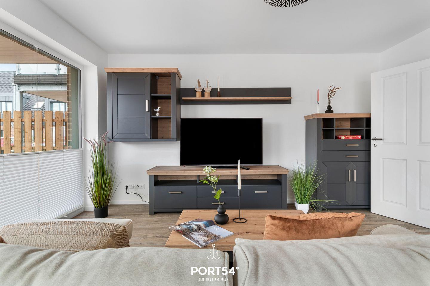 In gehobener und exklusiver Holzständerwerk-Bauweise erwartet Sie die im Erdgeschoss gelegene Ferienwohnung "Küste 6" auf etwa 64m². Der lichtdurchflutete Wohnbereich ist mit einer gemütlichen Wohnlandschaft inklusive Schlaffunktion (250x160cm) und einem Flachbild-TV ausgestattet. Die angrenzende Küche ist offen gestaltet und bietet alle Annehmlichkeiten, die für einen geselligen Kochabend benötigt werden. Am Esstisch mit gemütlichen Stühlen können Sie bequem gemeinsam essen oder einen Spieleabend verbringen. Bodentiefe Fenster lassen viel Licht herein und ermöglichen den Zutritt zur vollmöblierten Terrasse. Im Schlafzimmer erwarten Sie ein großes Doppelbett (180x200cm), sowie Verdunklungsmöglichkeiten für die Fenster. Das Badezimmer ist mit einer ebenerdigen Dusche, einem WC sowie einem Waschbecken ausgestattet. Zudem steht ein Fahrradschuppen für die Gäste zur Verfügung.