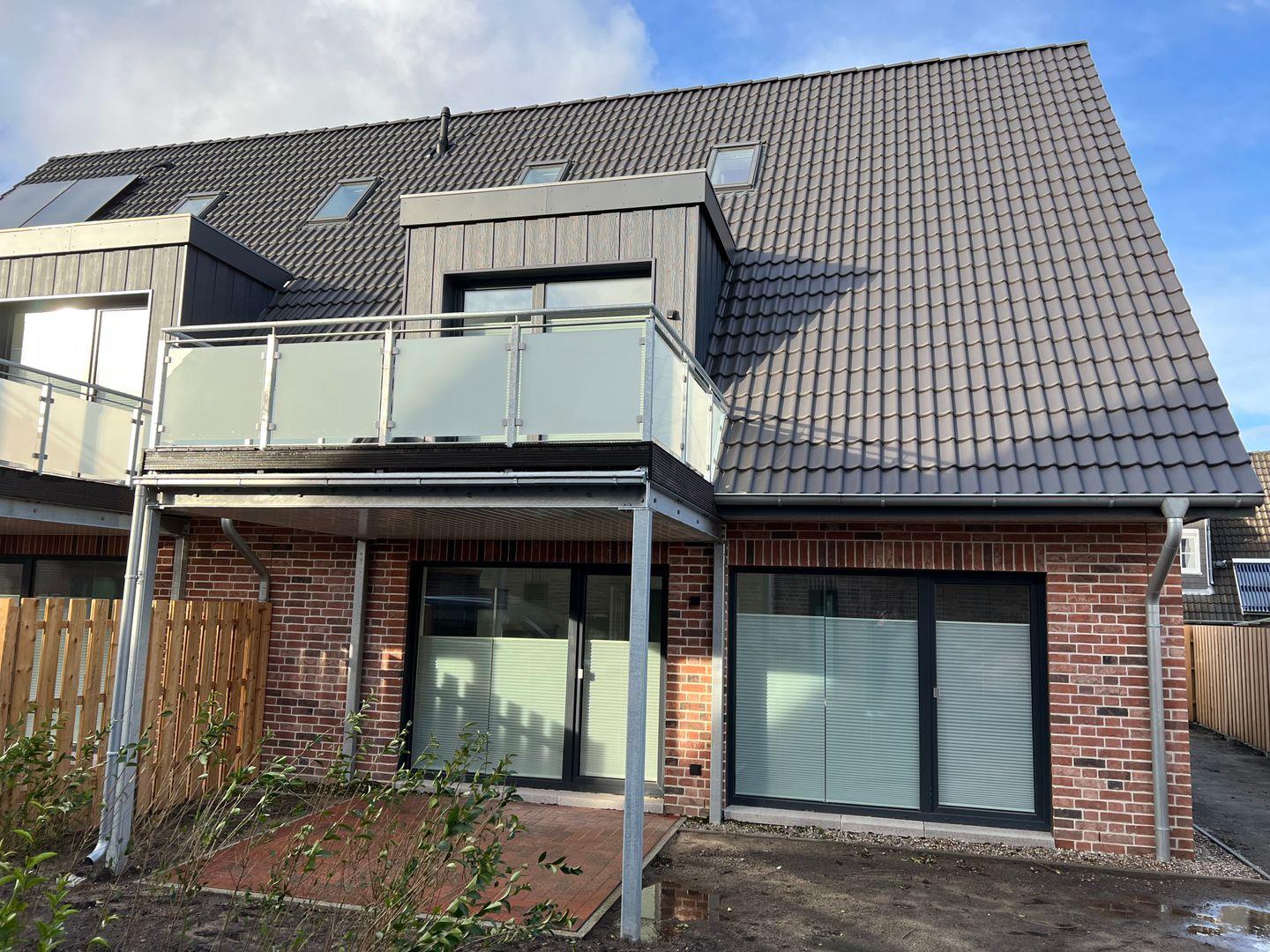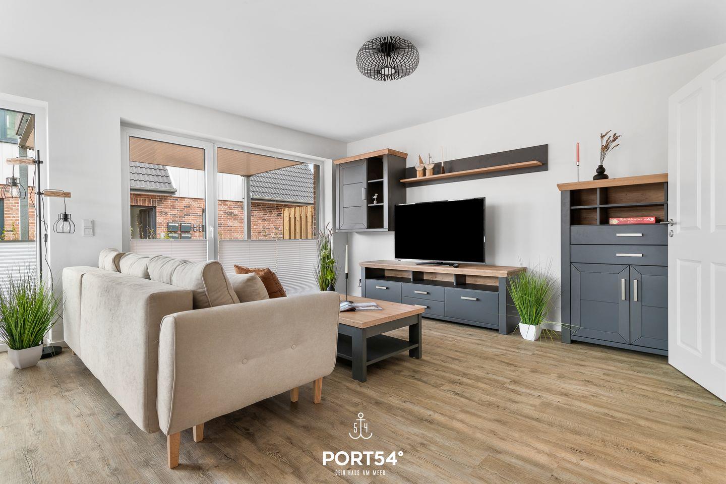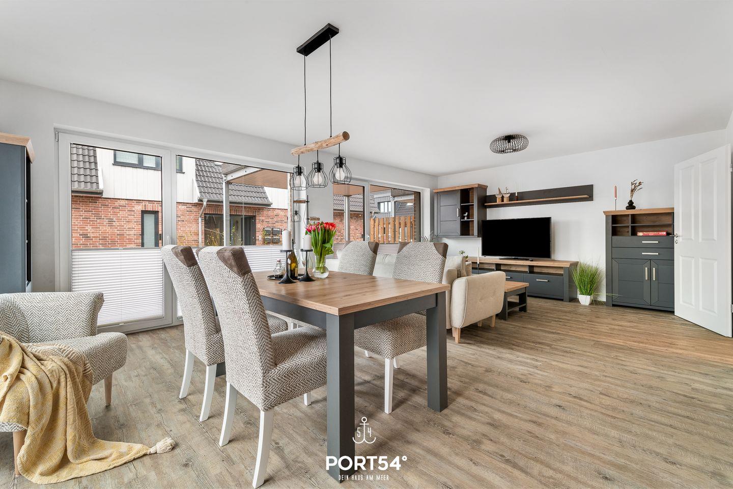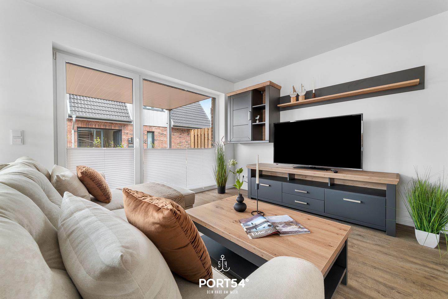 Stilvolle Ferienwohnung Küste 6 mit Terrasse, moderner Ausstattung und ebenerdiger Dusche nahe der Nordseeküste.