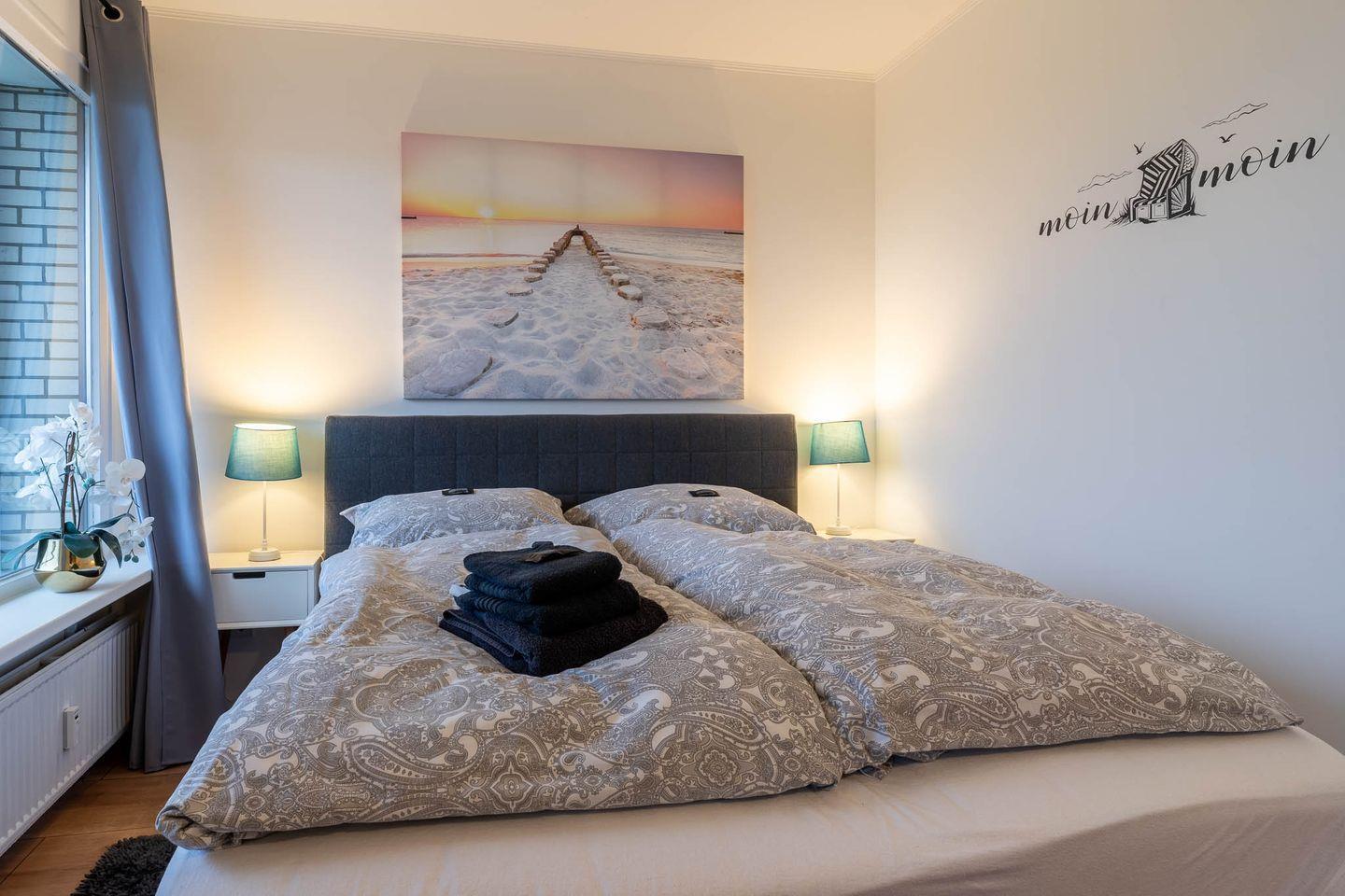Die helle Nichtraucher-Wohnung "Nordseeglück" bietet Platz für 2-4 Personen. Mit einem geräumigen Wohnzimmer, separatem Schlafzimmer, Balkon, vollausgestatteter Küche und modernem Bad. Kostenloses WLAN, Parkplatz inklusive. Ideal für Nordseeurlaub zu zweit oder mit der Familie.