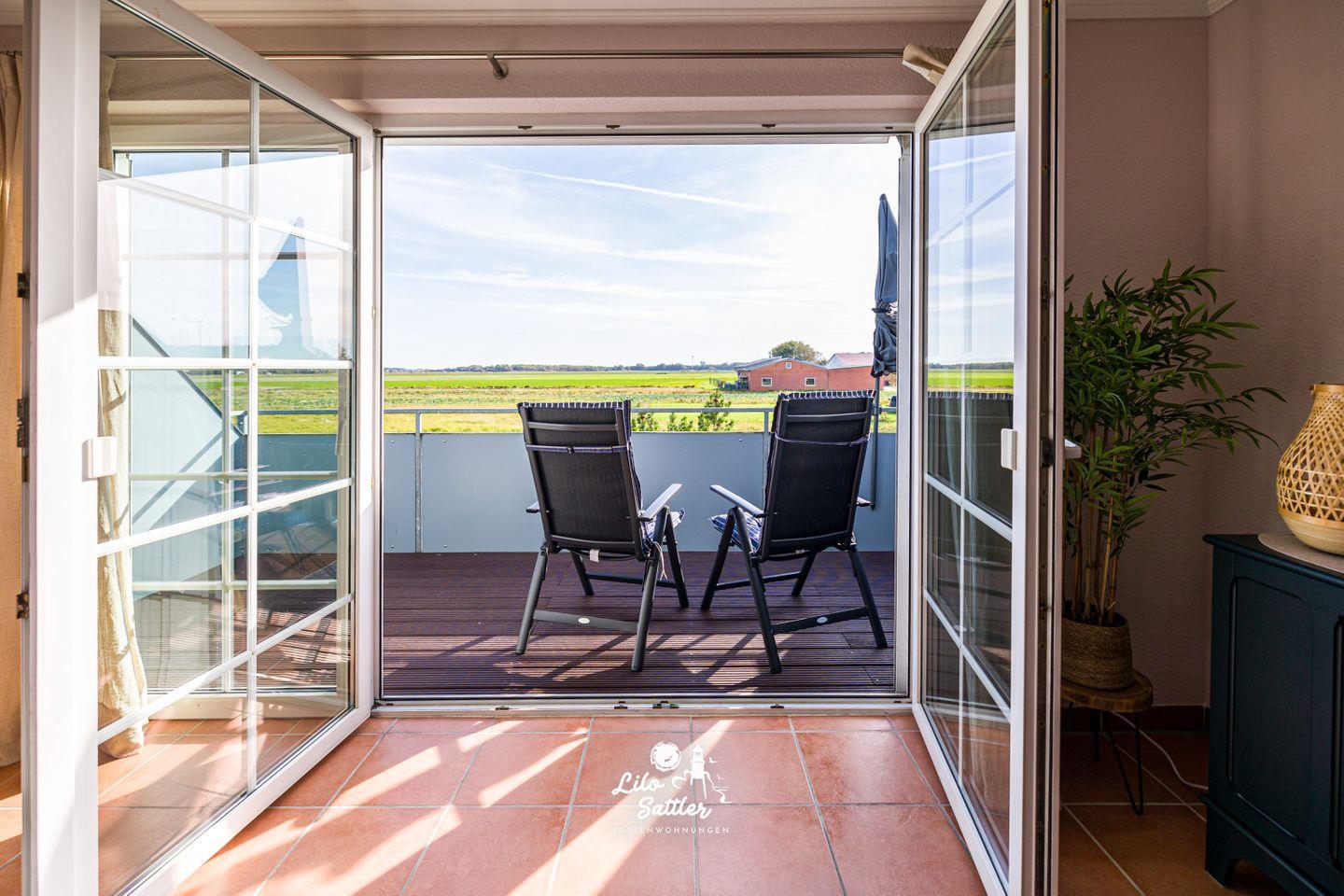 Ferienwohnung Mia in Westerdeichstrich bietet ländliche Ruhe, modernen Komfort und einen Balkon mit herrlichem Ausblick.