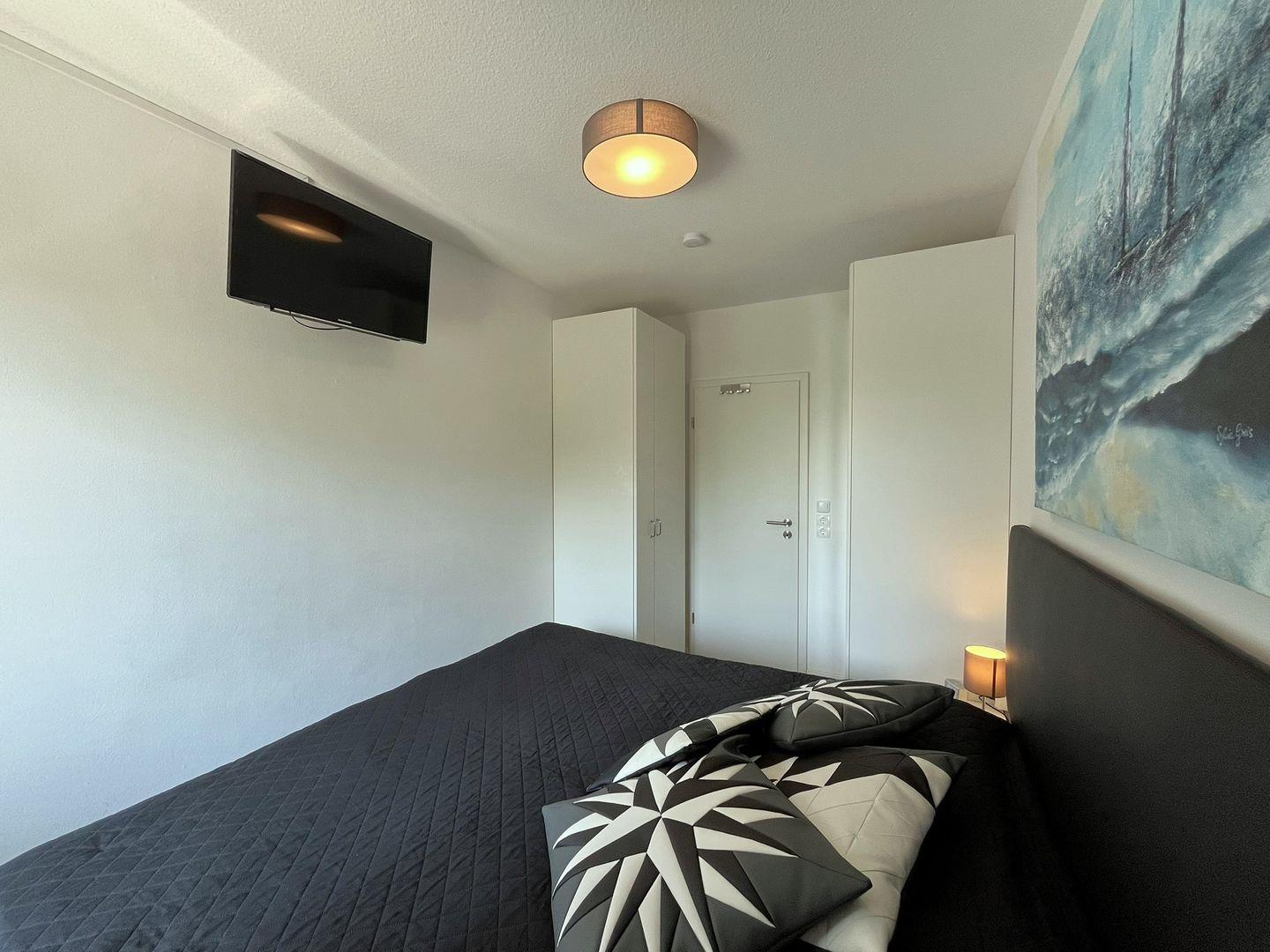 Im separaten Schlafzimmer befinden sich ein Doppelbett (1,80x 2m, 2 Einzelmatratzen), Kleiderschränke für Ihre Urlaubgarderobe und ein 2tes TV Gerät.