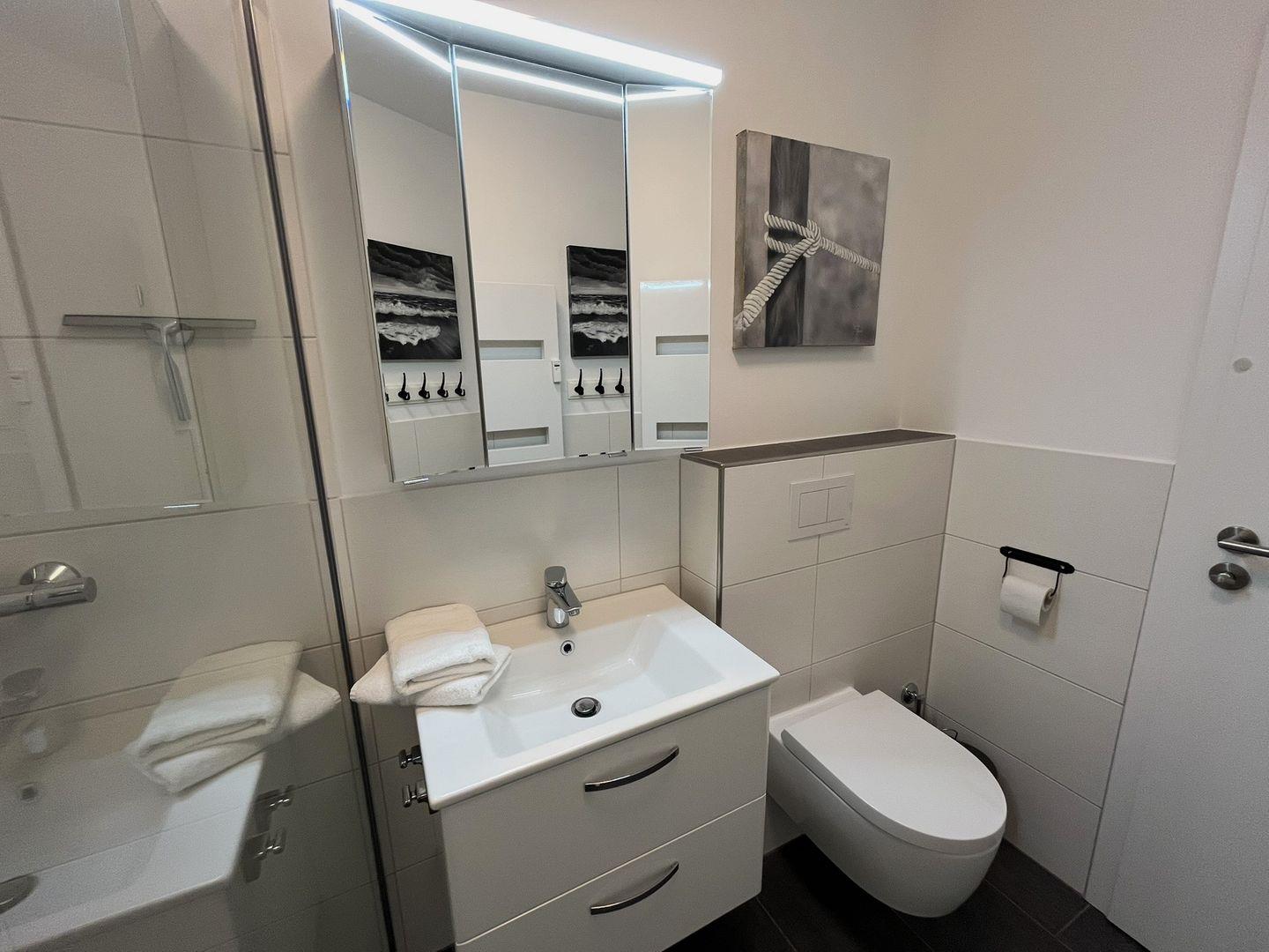 Das Badezimmer ist mit einer großzügigen ebenerdigen Dusche ausgestattet und natürlich ebenfalls komplett renoviert.