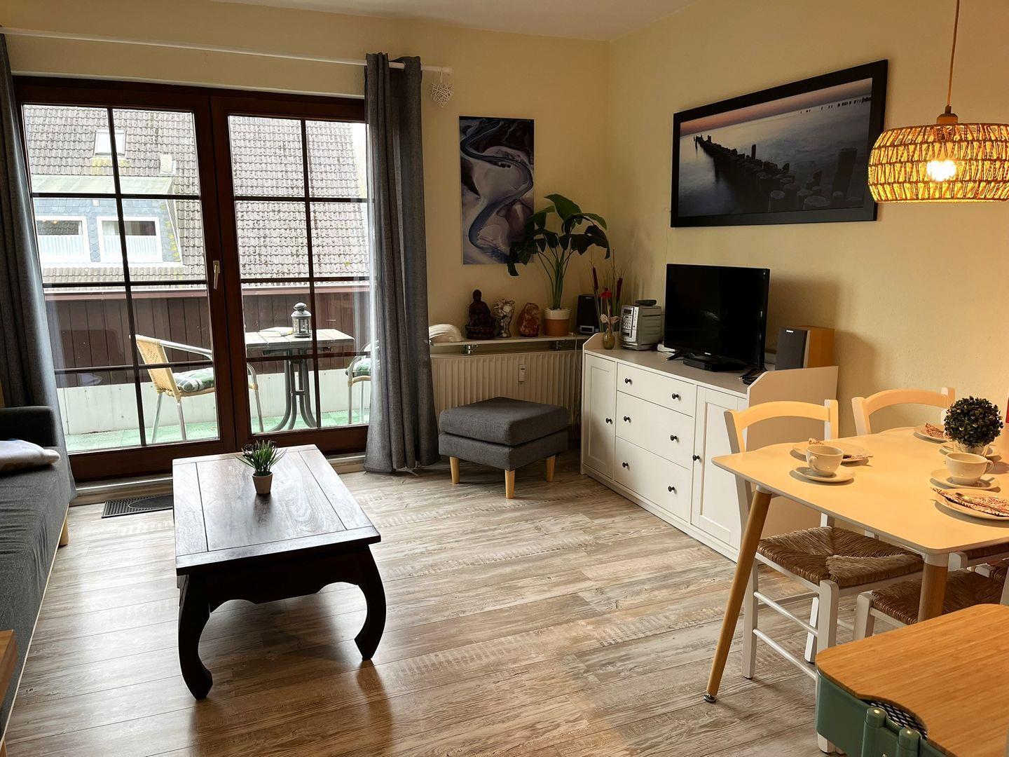 In dem hellen Wohn- Essbereich und in der Küche findet man alles was man braucht, damit sich Leib und Seele wohlfühlen.