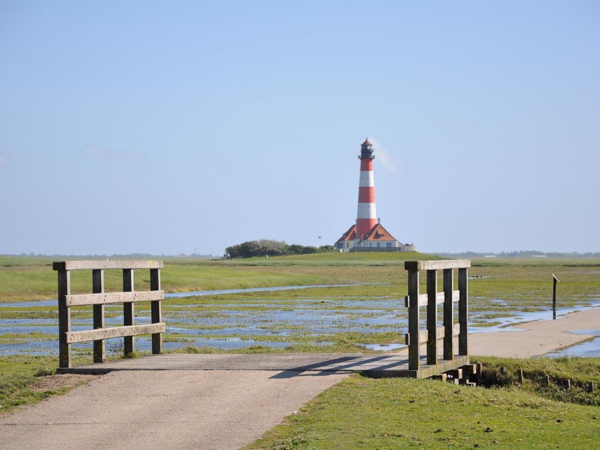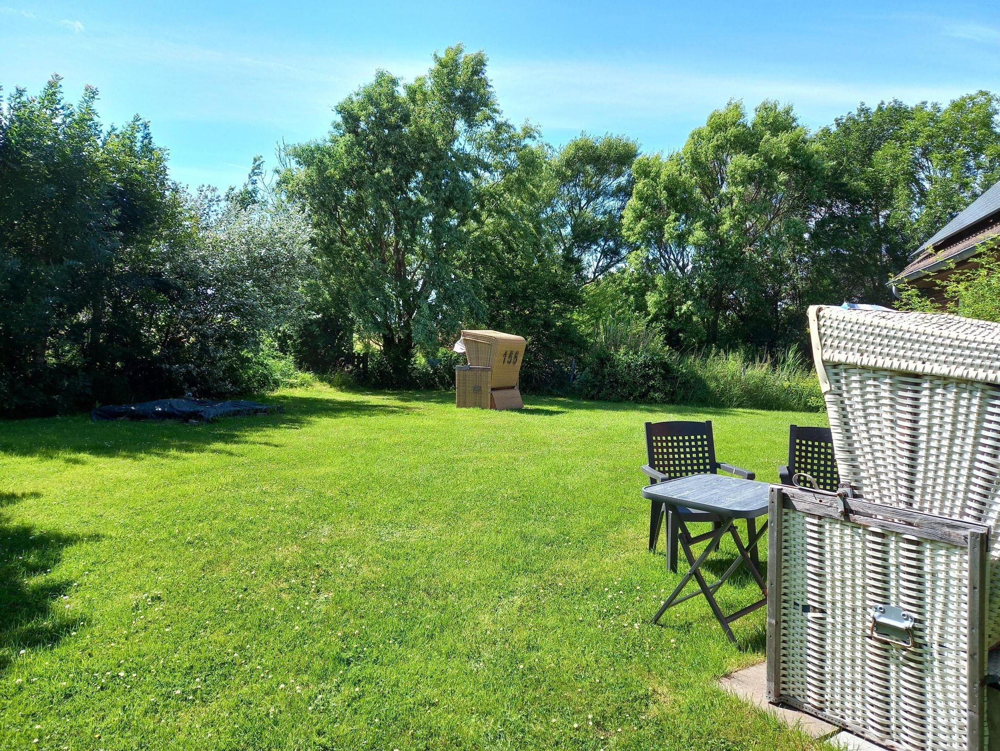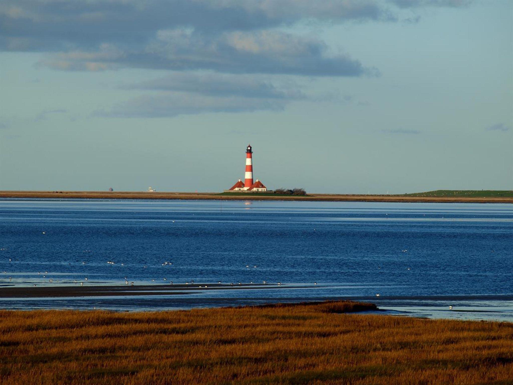 Schönen Urlaub - ganz nah am Meer! Das bietet unser Haus in Westerhever an Schleswig-Holsteins schöner Westküste, mit Blick zum Leuchtturm Westerheversand und großem Naturgarten. Verbringen Sie die kostbarste Zeit des Jahres an einem besonderen Ort, auf Eiderstedt, in unmittelbarer Nähe zur Nordsee, der Seedeich nur 1 km Luftlinie entfernt. Spätestens, wenn Sie zum ersten Mal vom Wohnzimmer aus den Leuchtturm Westerheversand erblicken, beginnt für Sie ein besonderer Urlaub! Das naturnahe über 1.000 qm große Gartengrundstück grenzt direkt am Vogelschutzgebiet an. Mit Blickachse zum Leuchtturm und mit Bäumen und Büschen eingerahmt, vor den Blicken der Nachbarn gut geschützt, können Sie hier eine schöne Auszeit nehmen. Dafür stehen auf der Rasenfläche zwei Strandkörbe, Sonnenliegen, eine Gartenbank und für jede Wohneinheit auch eine Sitzgruppe bereit. Tisch und Gartenstühle können Sie frei im Garten plazieren, ob in der Sonne oder im Schatten und windgeschützt unter den Bäumen, je nach Wetterlage. Dazu ideale Spielmöglichkeiten für Kinder: Schaukelanlage, Sandkasten, Fußballtor und Trampolin stehen bereit, der Langeweile keine Chance!