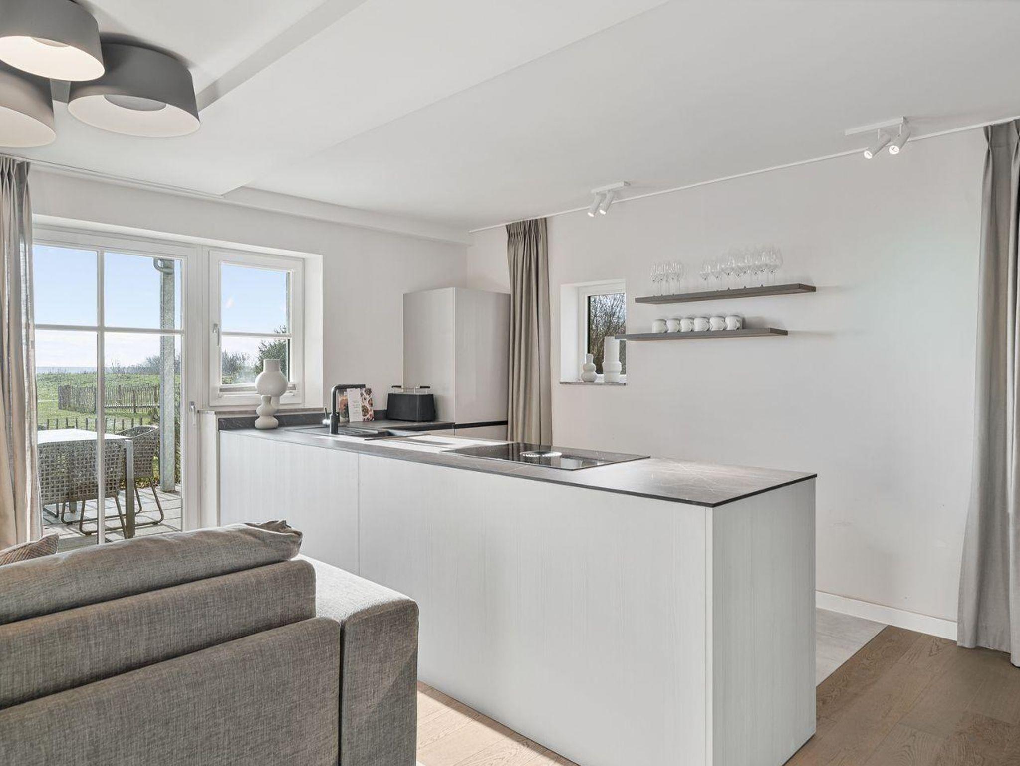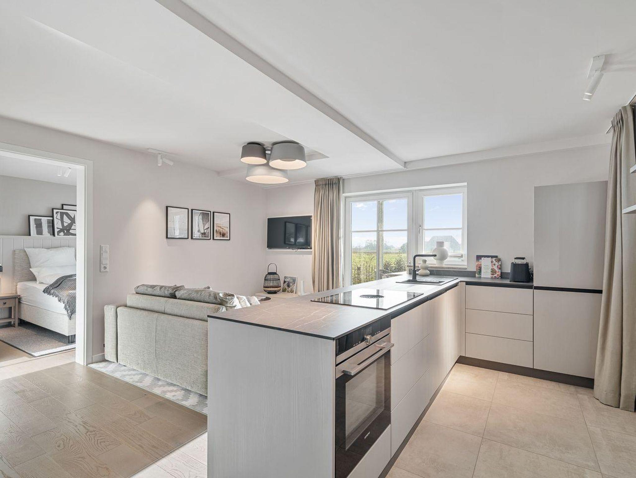 Die offene und exklusive Küche ist komplett ausgestattet und ideal für alle, die gerne selbst kochen. Hier finden Sie alle notwendigen Küchenutensilien sowie Hochwertige E-Geräte wie einen Induktionsherd, einen Backofen, eine Spülmaschine, eine Kaffeemaschine um Ihren Morgen mit einer Tasse frisch gebrühten Kaffee zu beginnen. Der eingerichtet Wohnbereich ist hell und exklusiv gestaltet und verbindet sich harmonisch mit der Küche. Gemütliche Abende können Sie beim Fernsehen verbringen; die Ferienwohnung ist mit zwei TV-Geräten ausgestattet, sodass Sie Ihre Lieblingssendungen in beiden Bereichen genießen können.