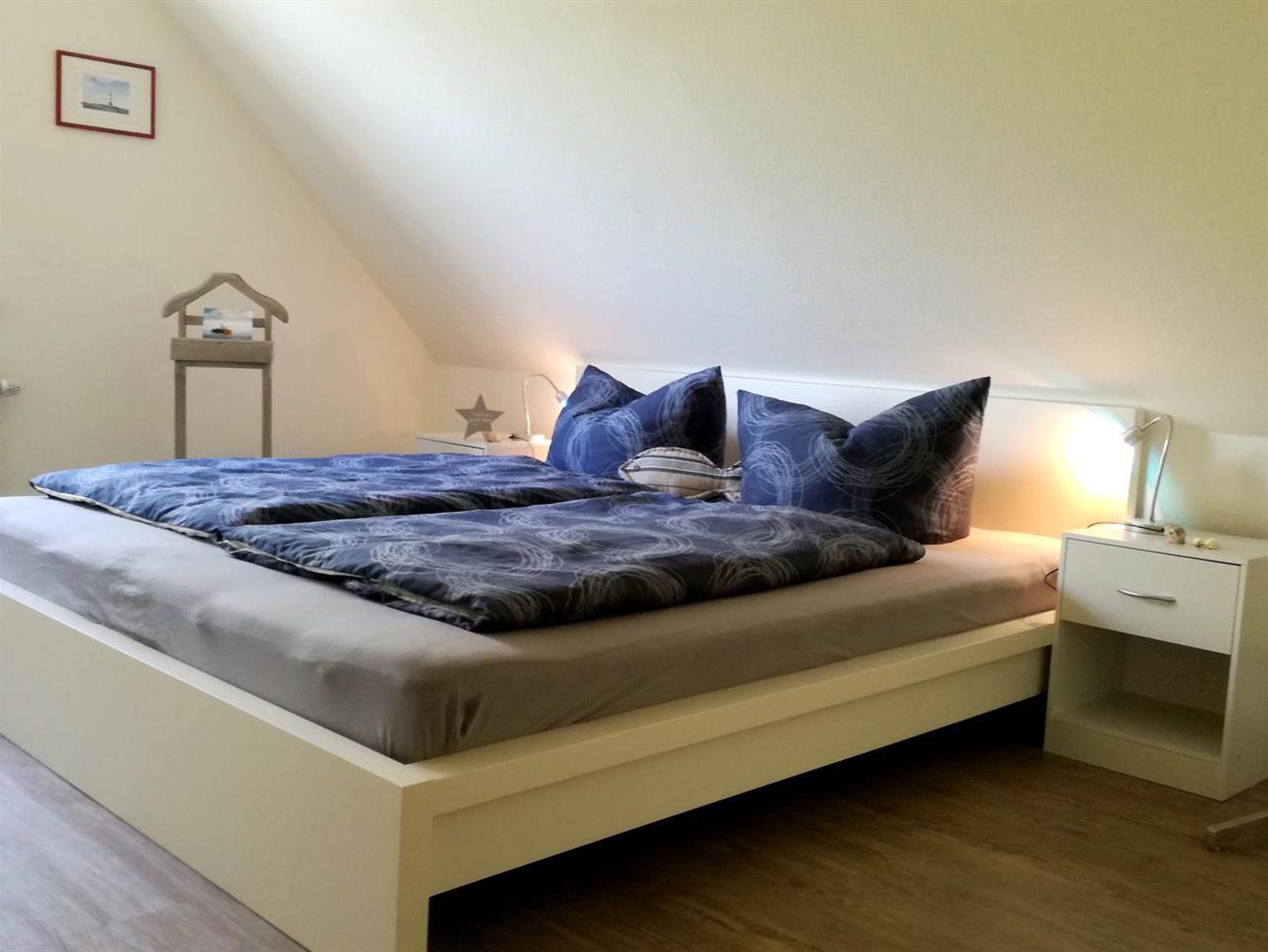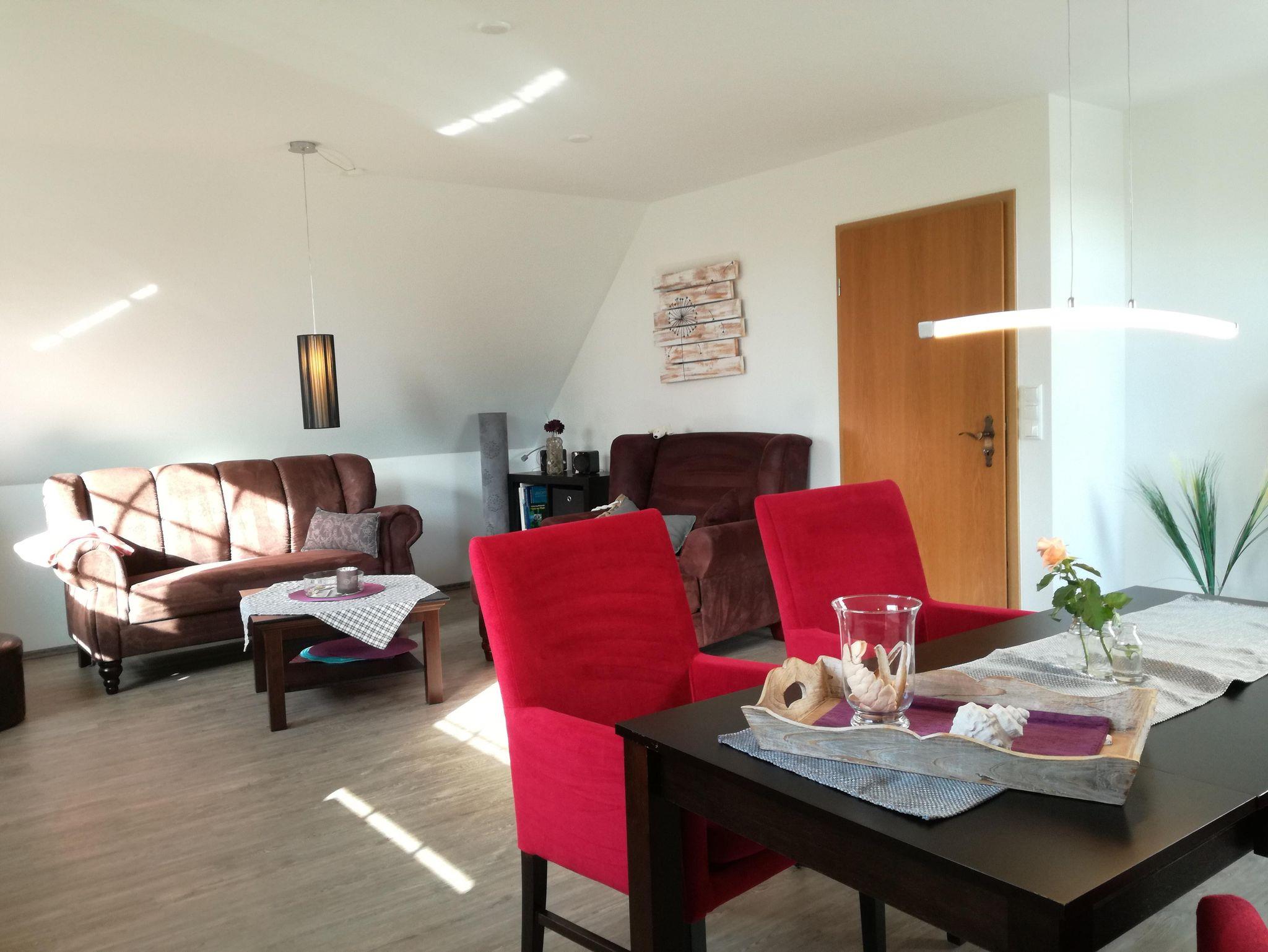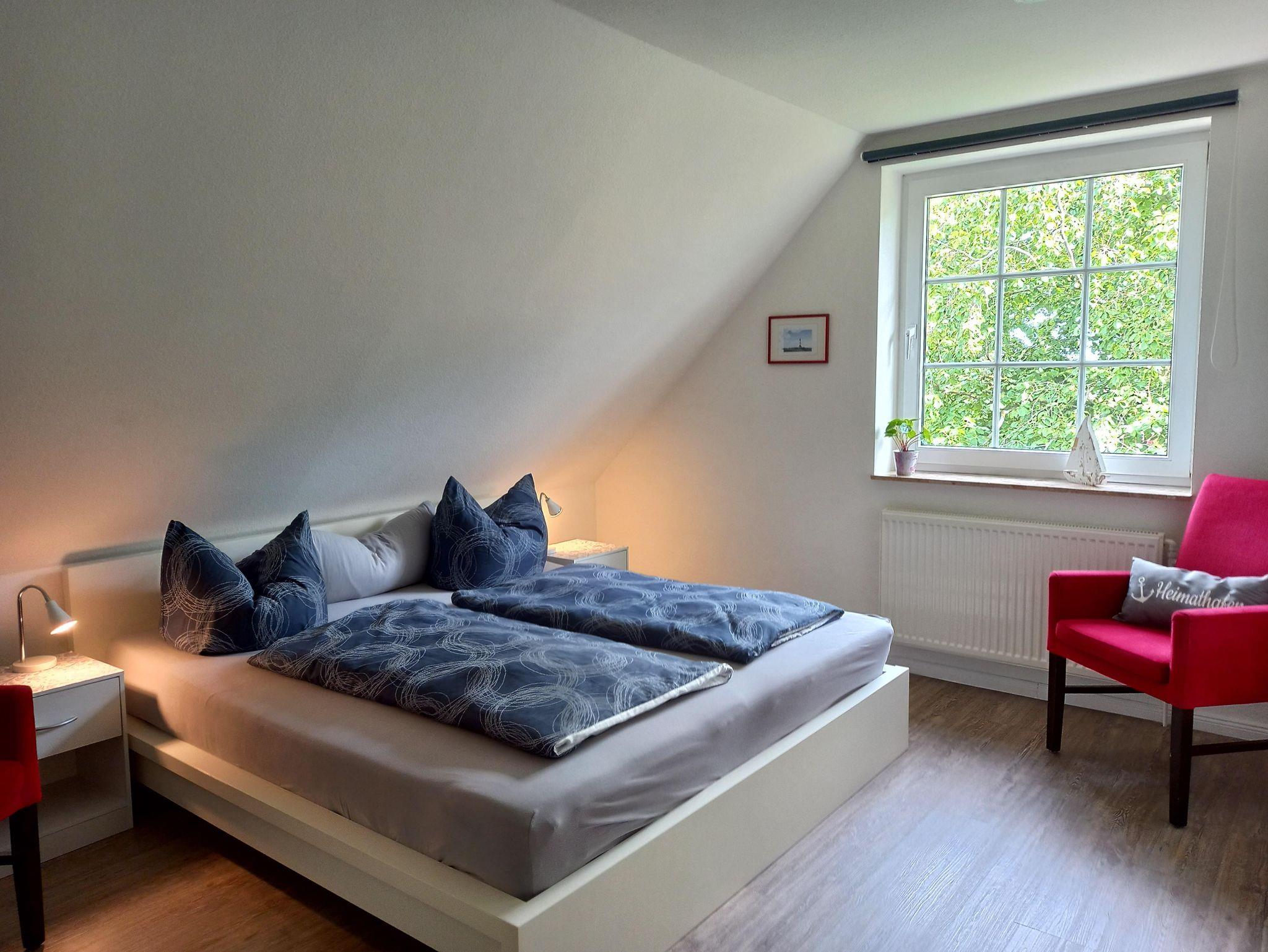 Herzlich Willkommen in Westerhever. Unsere Ferienwohnung Meer befindet sich im Obergeschoss und bietet auf 60 qm Platz für bis zu 4 Personen. Der liebevoll eingerichtete Wohnraum mit Sesseln und einem sehr gemütlichem XXL-Sesse, sowie einem Essplatz lädt zum Entspannen ein. Durch die Dachflächenfenster haben sie einen wunderschönen Ausblick über die Landschaft von Westerhever. Ihre Urlaubsküche ist komplett mit Geschirrspüler, Cerankochfeld, Backofen und allem was man für den Urlaubshaushalt braucht ausgestattet. Die beiden hellen Schlafräume sind je mit einem Doppelbett eingerichtet. Ein freundliches Tageslichtduschbad begrüßt Sie am Morgen.