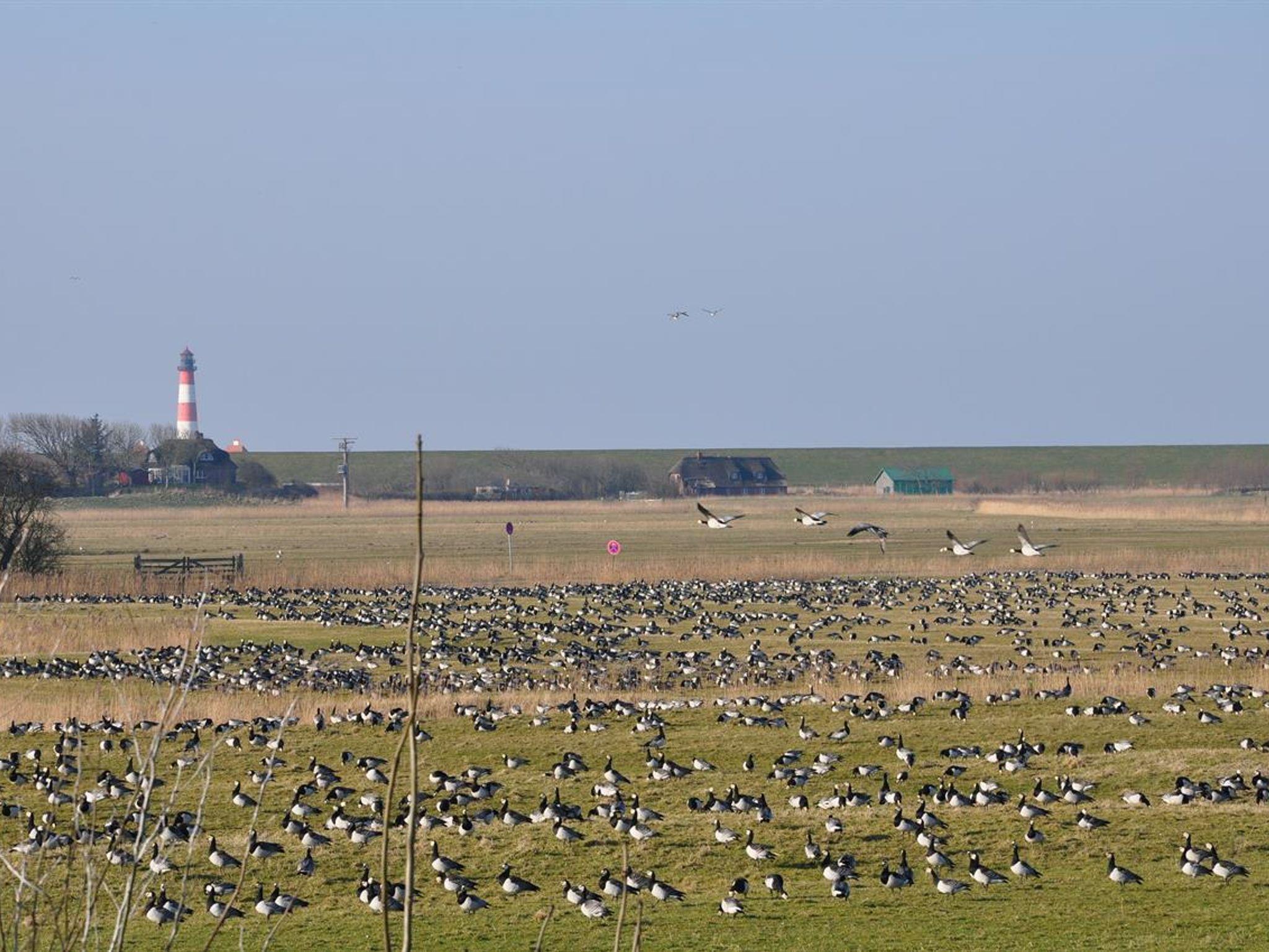 Genießen Sie einen erholsamen Urlaub in Westerhever mit Blick auf den Leuchtturm und großem Naturgarten nahe der Nordsee.