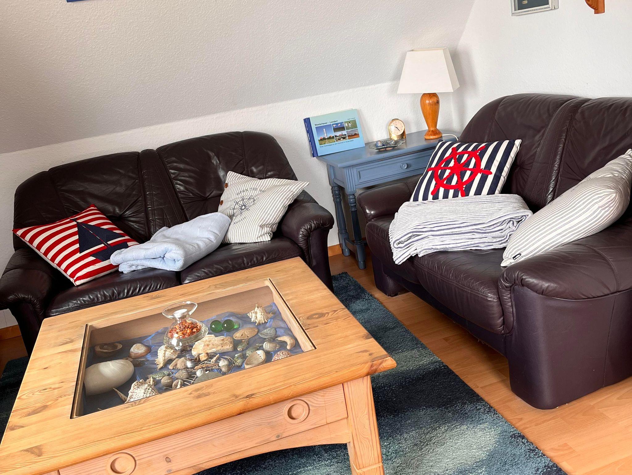 Wir bieten eine Wohnung für maximal 4 Personen. Die Wohnung beinhaltet auf einer Wohnfläche von 60 qm ein Wohnzimmer mit integrierter vollausgestatteter Küche, zwei Schlafzimmer, ein Duschbad und eine Lesegalerie.