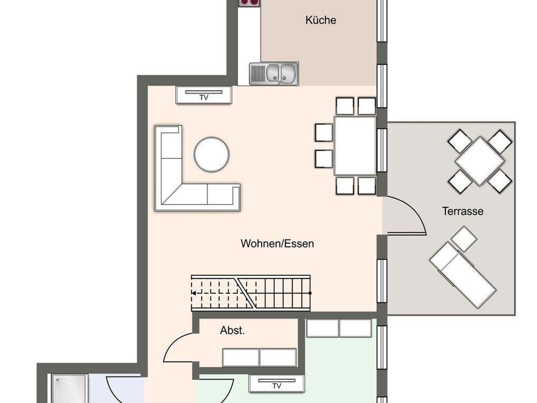 Die Ferienwohnung erstreckt sich über 2 Etagen und befindet sich im Erdgeschoss. Sie verfügt über ca. 135 m² Wohnfläche und ist wie folgt aufgeteilt: In der ersten Etage erwartet Sie ein geräumiger Wohnraum mit TV und einer wunderschönen Couchlandschaft, offener Küche mit Theke und gemütlichem Essbereich. Die Küche ist voll ausgestattet. Ein separates Duschbad bietet allen Komfort. Zudem befindet sich im Erdgeschoss ein Schlafraum mit einem Boxspringbett (1,8 x 2,0 m) und einem TV sowie eine Möglichkeit für Workcation mit einem historischen Schreibtisch.