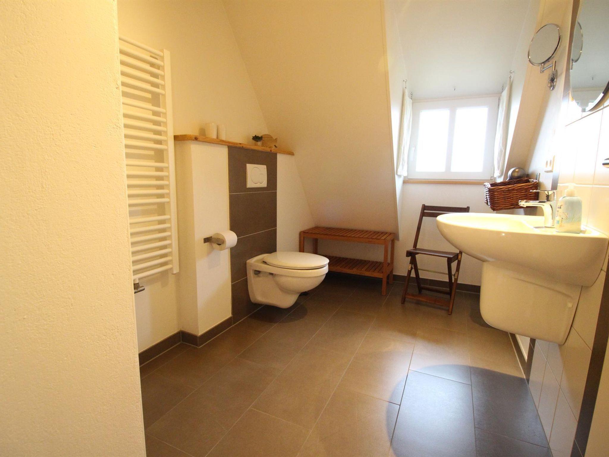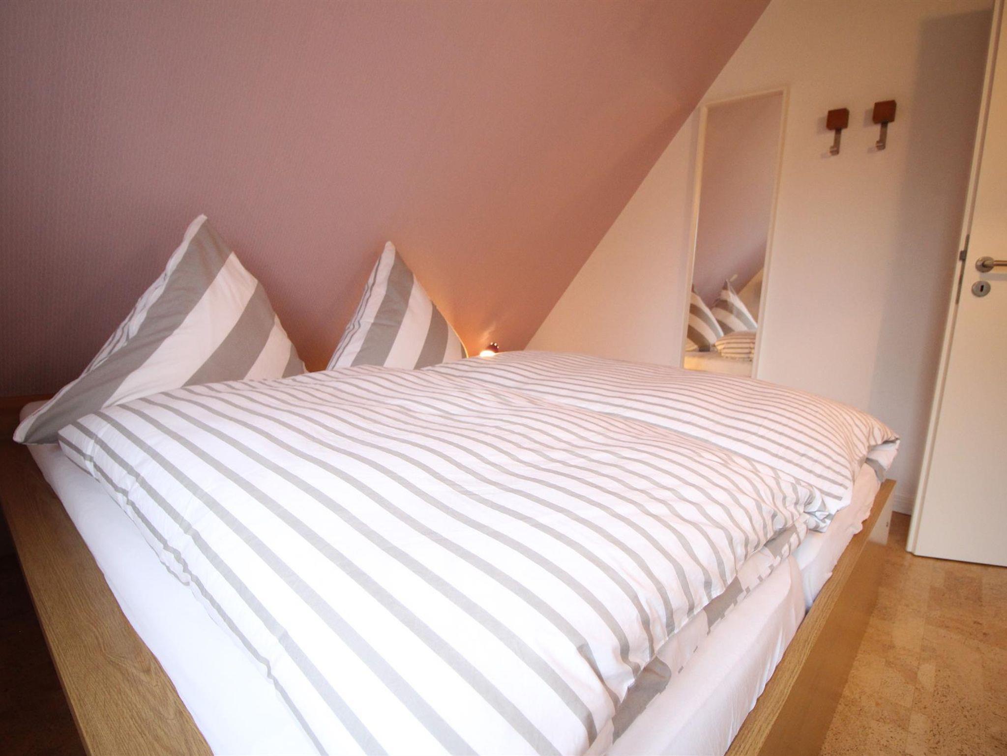 Der Wohn- und Essbereich ist hell und freundlich und hat einen direkten Zugang zu Ihrer Terrasse(Südlage), die mit einem Strandkorb, Holzgartenmöbeln und Sonnenschirm ausgestattet ist. SAT-TV und eine Stereoanlage sind vorhanden. Unter der Treppe finden Sie Platz für Ihre Koffer und Taschen. Der Küchenbereich ist mit Geschirrspüler, Backofen, Ceranfeld, Toaster, Cafissimo, Mixer, Kaffeemaschine, Wasserkocher ausgestattet und mit ausreichend Geschirr bestückt. Im ersten Stock befindet sich ein Bad mit Dusche und WC.(Haarfön,Handseife) Der Schlafraum ist mit einem Doppelbett (160 cm x200 cm) ausgestattet. Das Zimmer für Kleinkinder ist mit zwei Betten (70 cm x160 cm) eingerichtet und hat genügend Platz um Spielsachen und Bücher zu verstauen. Im zweiten Stockwerk befindet sich ein Schlafraum mit zwei Einzelbetten (90 cm x 200 cm) Paterre befindet sich ein Flur und ein extra WC.Im Sommer sind die Fenster mit Mückenschutz versehen.