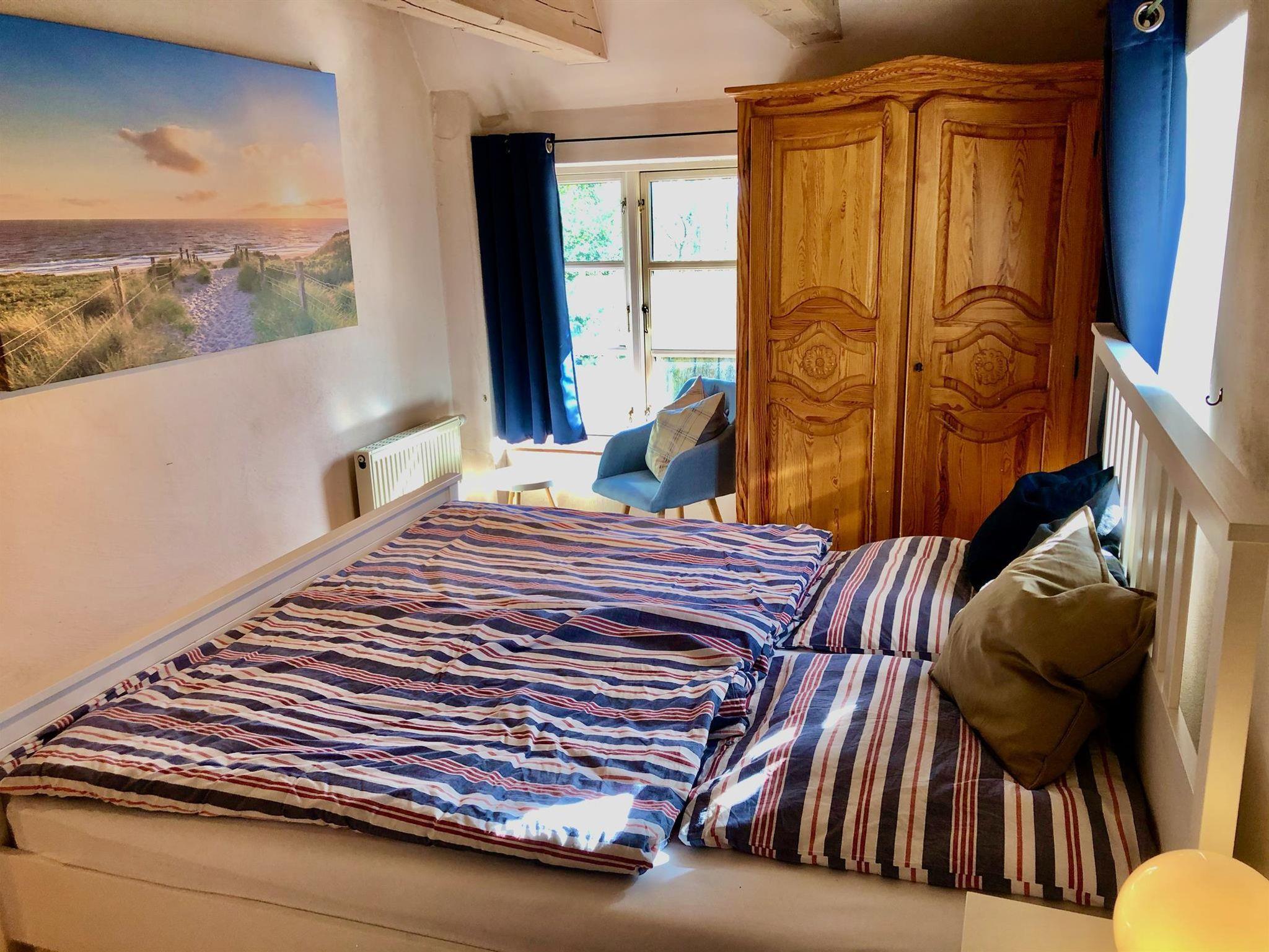 Der über 25 m² große Wohnbereich mit gemütlichem Kaminofen im Erdgeschoss ist großzügig, modern und behaglich mit einer perfekt ausgestatteten Wohnküche, einem schönen Essplatz für vier Personen und dem lichtdurchfluteten Wohnzimmer ausgestattet. Die beiden Schlafzimmer befinden sich ebenso im Erdgeschoss, sind mit hochwertigen Betten und Matratzen ausgestattet und verbreiten skandinavisch-maritime Ruhe. Das geräumige Bad bietet eine tolle Ausstattung mit viel Platz und ist mit einer bodengleichen, große Dusche ausgestattet.